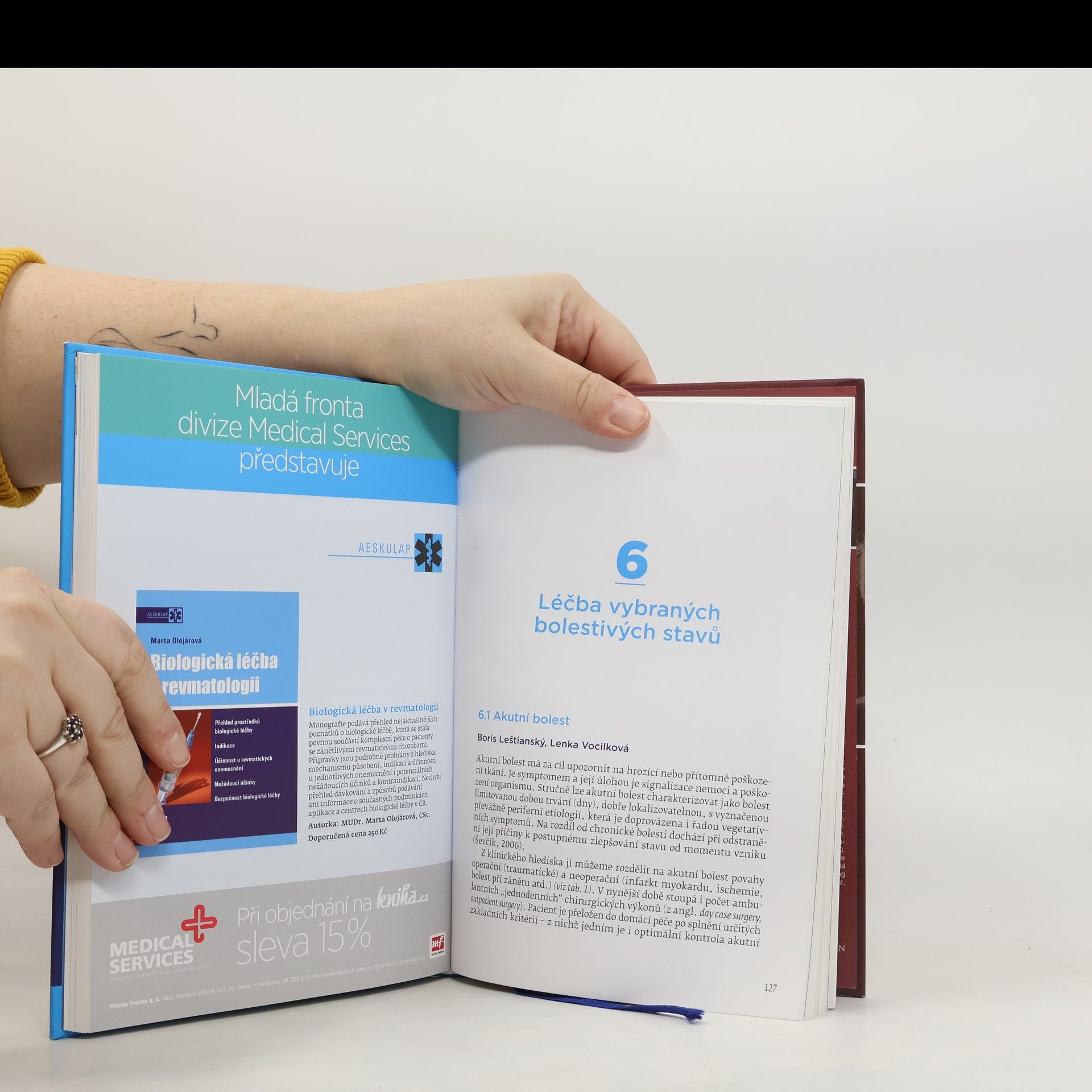 Monografie našich předních specialistů v oboru algeziologie si klade za cíl poskytnout čtenáři přehledné a aktuální informace o problematice především chronické bolesti včetně jejích dopadů na pacienta (fyzických, psychických a sociálních) a zároveň (vzhledem ke vzrůstajícímu počtu pacientů trpících chronickou bolestí) i dopadů na ekonomiku. Autoři mj. apelují na racionální volbu farmakoterapie s obezřetností při volbě volně prodejných přípravků a nepodceňování komunikace s pacientem. V úvodních kapitolách jsou stručně zmíněny patofyziologie bolesti, její dělení a psychosociální souvislosti chronické bolesti. Samostatné kapitoly jsou pak věnovány metodám léčby bolesti farmakoterapii, invazivním metodám, psychoterapii chronického algického syndromu a dalším léčebným metodám (např. akupunktuře a TENS). V druhé, speciální části publikace se autoři podrobně zabývají léčbou jednotlivých bolestivých syndromů bolestmi hlavy, zad, komplexním regionálním bolestivým syndromem, bolestmi na hrudi a bolestí břicha, léčbou bolesti u seniorů, neuropatickou bolestí, léčbou onkologické a průlomové bolesti. Zvláštní kapitola je věnována léčbě akutní bolesti. Text doplňuje obrazová dokumentace a řada tabulek.