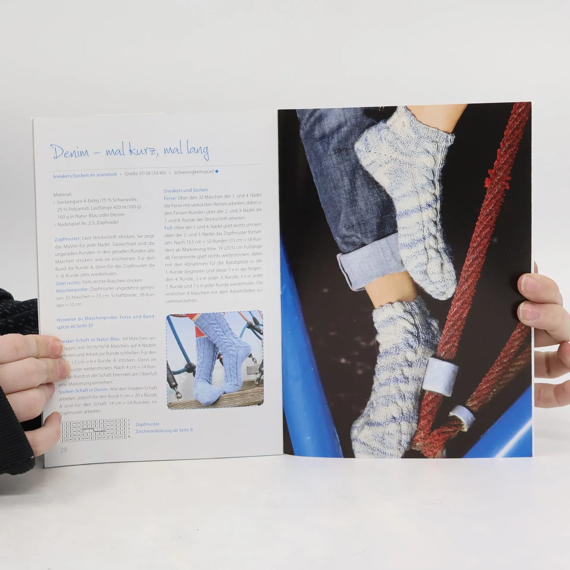 Zopf trifft Socke Wie wird eine schnöde Socke zum Designerstück? Ganz einfach: indem man sie mit einem individuellen Muster versieht! Gerade Zopfmuster gibt es in so vielen Varianten, Spielarten und Kombinationsmöglichkeiten, dass sie sich bestens dazu eignen, einen Strumpf oder Socken in ein wahres Schmuckstück für den Fuß zu verwandeln. Blättern Sie und entdecken Sie tolle Modelle für Sie und Ihn. Egal ob Sie gemütliche Socken für Zuhause, sportliche für die Freizeit, oder fesche für Ihr Trachtenoutfit benötigen: hier finden Sie bestimmt den Zopf und die Socke Ihrer Wünsche und Vorstellungen. Ein kompakter Workshop hilft Ihnen bei den wichtigen Fragen zum Thema Zopfmuster weiter. Obendrein erhalten Sie Techniktipps zum Socken stricken. Nun greifen Sie zu den Nadeln und machen Sie sich schnell an die Socken! Viel Vergnügen!