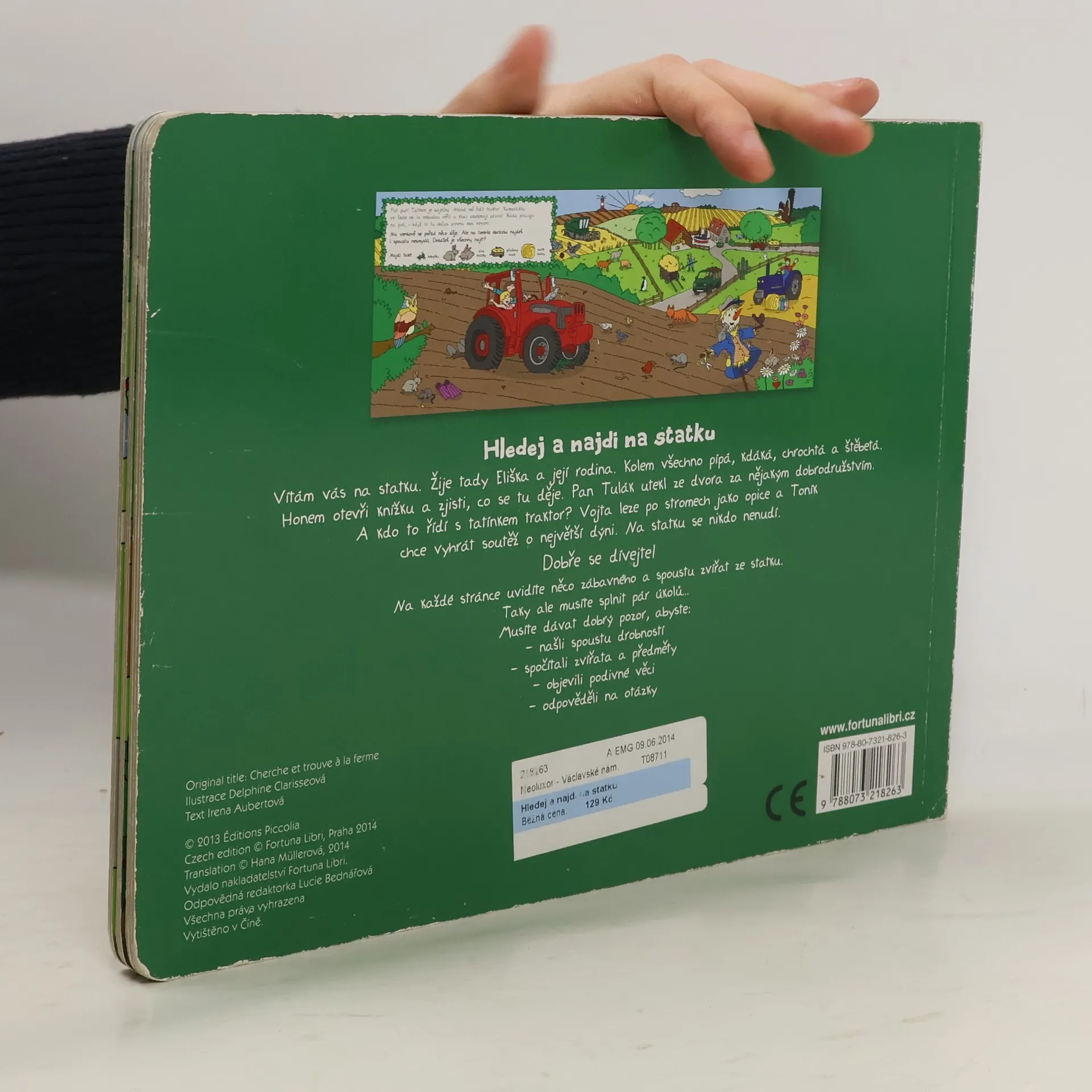 Vítám vás na statku. Žije tady Eliška a její rodina. Kolem všechno pípá, kdáká, chrochtá a štěbetá. Honem otevři knížku a zjisti, co se tu děje. Pan Tulák utekl ze dvora za nějakým dobrodružstvím. A kdo to řídí s tatínkem traktor? Vojta leze po stromech jako opice a Toník chce vyhrát soutěž o největší dýni. Na statku se nikdo nenudí. Dobře se dívejte! Na každé stránce uvidíte něco zábavného a spoustu zvířat ze statku. Taky ale musíte splnit pár úkolů.