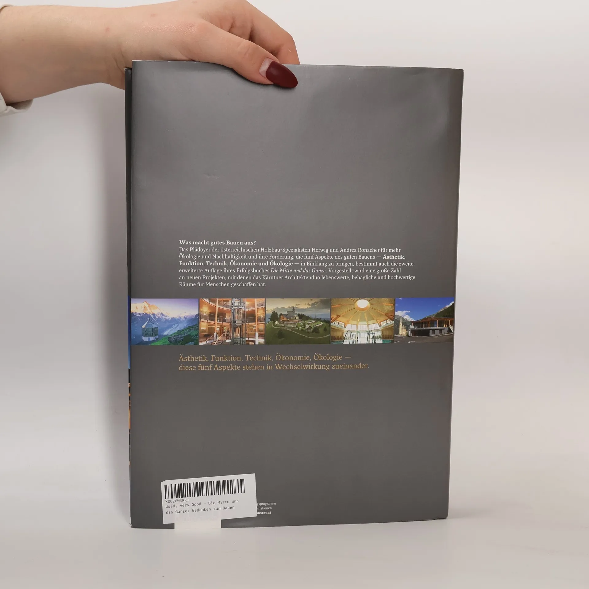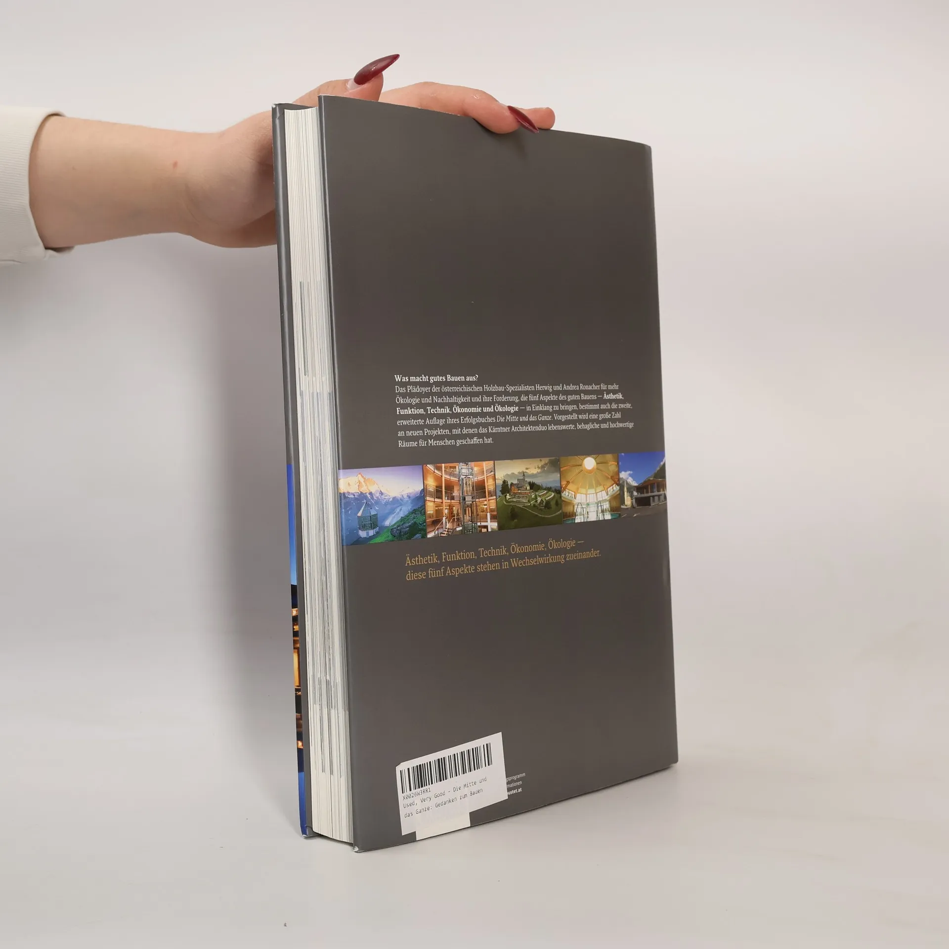 Erweiterte und aktualisierte Neuauflage! Das Plädoyer der österreichischen Holzbau-Spezialisten Herwig und Andrea Ronacher für mehr Ökologie und Nachhaltigkeit und ihre Forderung, die fünf Aspekte für gutes Bauen – Ästhetik, Funktion, Technik, Ökonomie und Ökologie – in Einklang zu bringen, bestimmt auch die zweite, erweiterte Auflage ihres Erfolgsbuches Die Mitte und das Ganze. Vorgestellt wird eine große Zahl an neuen interessanten Projekten, mit denen das Kärntner Architektenduo lebenswerte, behagliche und hochwertige Räume für Menschen geschafft hat. Eindrucksvoll am neuen Buch ist vor allem die Kontinuität ihrer Arbeit. So wurden innerhalb der letzten 30 Jahre Hotelprojekte in vielen Baustufen zu Ensembles erweitert. Die bemerkenswertesten Beispiele sind das "Mountain Resort Feuerberg" oder "der daberer – das Kärntner Biohotel". Deutlich erweitert wurden auch das Kapitel "Alte Häuser – neu beseelt" mit höchst ansprechenden Revitalisierungen und das Kapitel "Das Wohnhaus und seine Mitte" mit ausgewählten neuen Einfamilienhäusern. Ein Buch über Architektur, die in erster Linie den Menschen dient! mit vielen neuen Holzbau-Beispielen interessante Revitalisierungen ländliche Ensembles Hotels zum Wohlfühlen