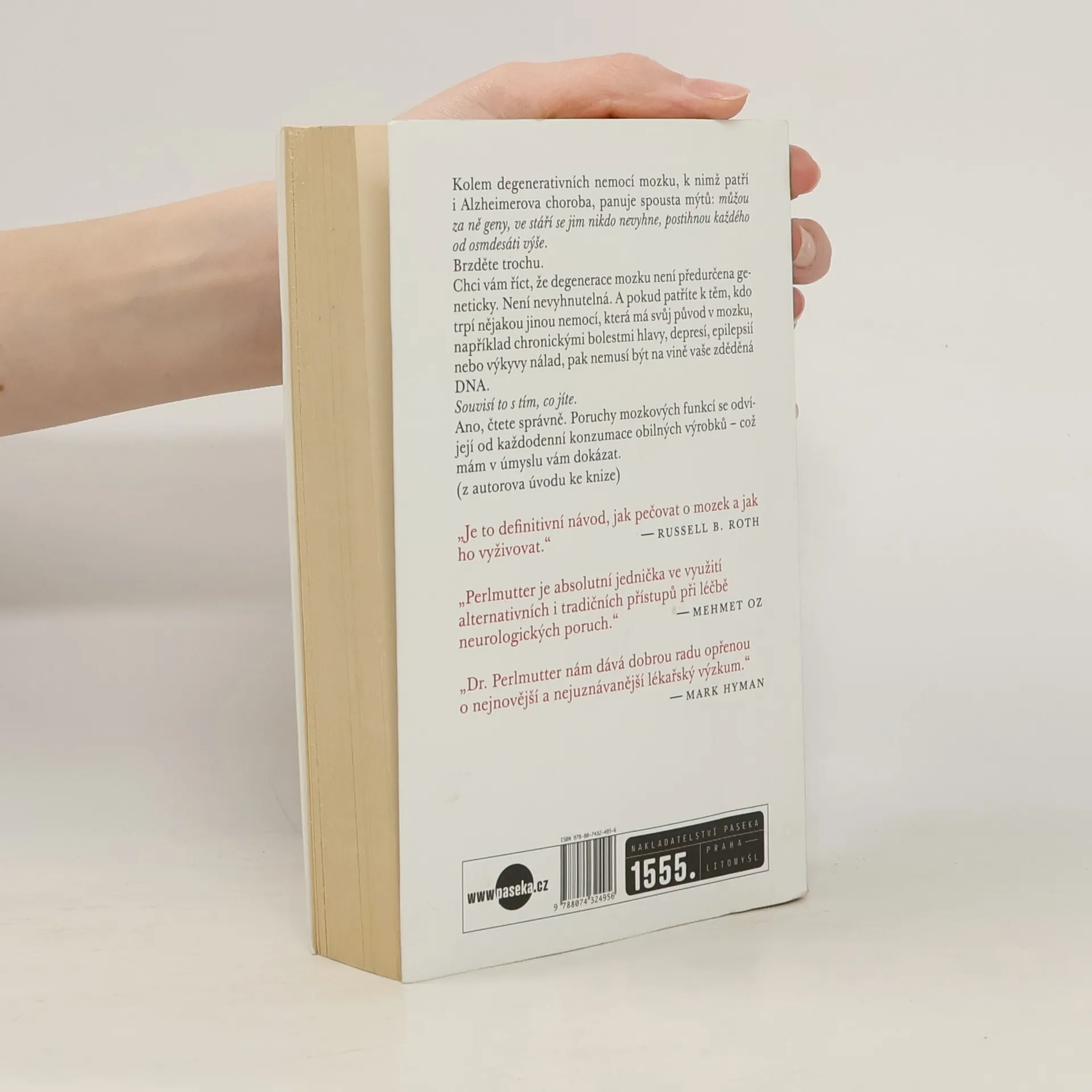 Kniha renomovaného neurologa otevírá téma, kterým se už léta zabývají vědecké studie, ale veřejnost o něm překvapivě stále nic neví: sacharidy škodí našemu mozku. A zdaleka nejde jen o rafinovaný cukr nebo přemíru sladkostí, nýbrž i o „zdravé“ celozrnné pečivo. Perlmutter dokládá, že základním zdrojem energie pro naše tělo jsou tuky, a ne sacharidy. Změnou jídelníčku se dají odvrátit nemoci, jako je hyperaktivita, úzkost, bolesti hlavy, deprese, nebo dokonce Alzheimerova choroba, a v každém věku máme možnost popohnat růst svých mozkových buněk, ovlivnit genetické dědictví a chránit své mentální zdraví. V závěru kniha poskytuje čtenáři praktické návody, jak krok za krokem přejít na nový způsob života a stravování.