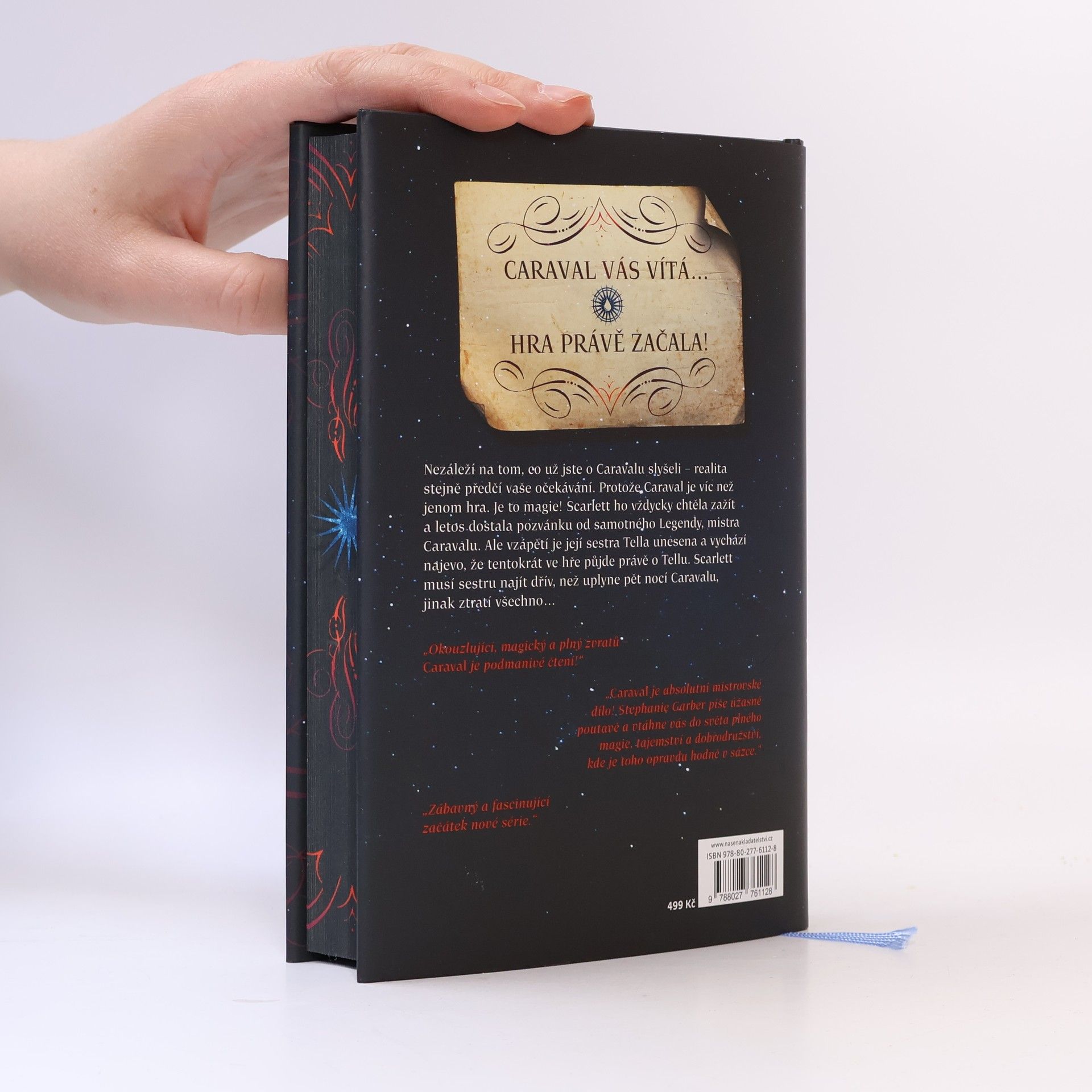 Než vstoupíte do světa Caravalu, mějte na paměti, že je to jen hra... Ať už jste o Caravalu slyšeli cokoli, určitě se to nevyrovná realitě. Je to víc než hra! Je to magie. Scarlett vždy toužila Caraval zažít a letos dostala pozvánku. Jenže vzápětí unese její sestru Tellu tajemný režisér celého představení. Není se čeho bát, Caraval je přece jen zdání. Ale co když ne? Ať už je to jakkoli, Caravalem musí Scarlett projít i se zlomeným srdcem a sestru rychle najít, než se spustí nebezpečný dominový efekt následků a navždy ji ztratí.