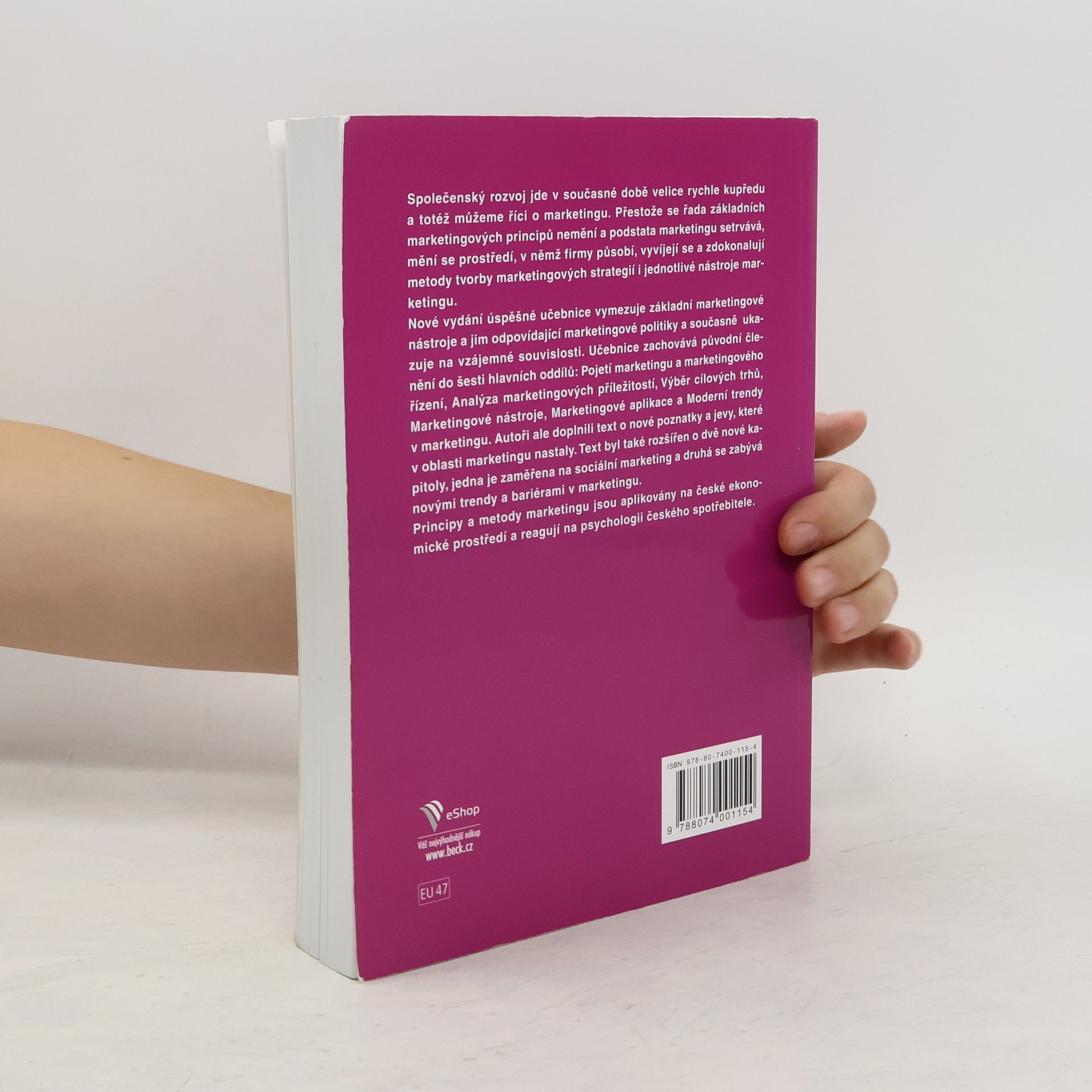 Marcela Zamazalová: Marketing - 2. přepracované a doplněné vydání. Společenský rozvoj jde v současné době velice rychle kupředu a totéž můžeme říct o marketingu. Přestože se řada základních marketingových principů nemění a podstata marketingu setrvává, mění se prostředí, v němž firmy působí, vyvíjejí se a zdokonalují metody tvorby marketingových strategií i jednotlivé nástroje marketingu. Nové vydání úspěšné učebnice vymezuje základní marketingové nástroje a jim odpovídající marketingové politiky a současně ukazuje na vzájemné souvislosti. Učebnice zachovává původní členění do šesti hlavních oddílů: Pojetí marketingu a marketingového řízení, Analýza marketingových příležitostí, Výběr cílových trhů, Marketingové nástroje, Marketingové aplikace a Moderní trendy v marketingu. Autoři ale doplnili text o nové poznatky a jevy, které v oblasti marketingu nastaly. Text byl také rozšířen o dvě nové kapitoly, jedna je zaměřena na sociální marketing a druhá se zabývá novými trendy a bariérami v marketingu. Principy a metody marketingu jsou aplikovány na české ekonomické prostředí a reagují na psychologii českého spotřebitele.