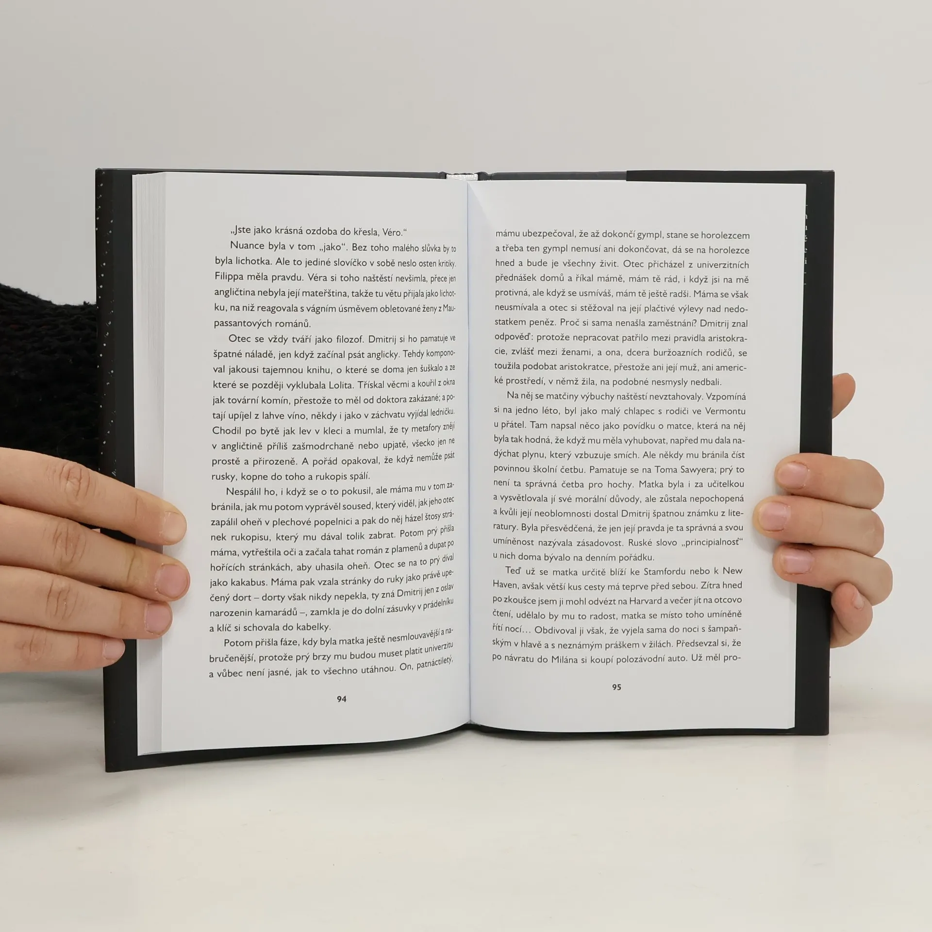 Jméno Nabokov znají všichni, hlavně díky Lolitě. Považujeme ho za klasika moderní literatury, jeho díla tvoří kánon – a také kult. Monika Zgustová přibližuje čtenářům jeho osobnost spisovatelskou, ale také lidskou. V novele Revolver v kabelce sledujeme spisovatele v Cannes roku 1937, kdy váhal mezi dvěma ženami, sledujeme ho ve švýcarském Montreux o čtyřicet let později, v roce jeho smrti. Ve dvou životních etapách pozorujeme jeho manželku Veru, která Vladimira přežila o čtrnáct let. Zgustová píše jeho portrét s lehkostí, grácií a suverenitou – a rovněž s úctou vůči Nabokovově dílu.