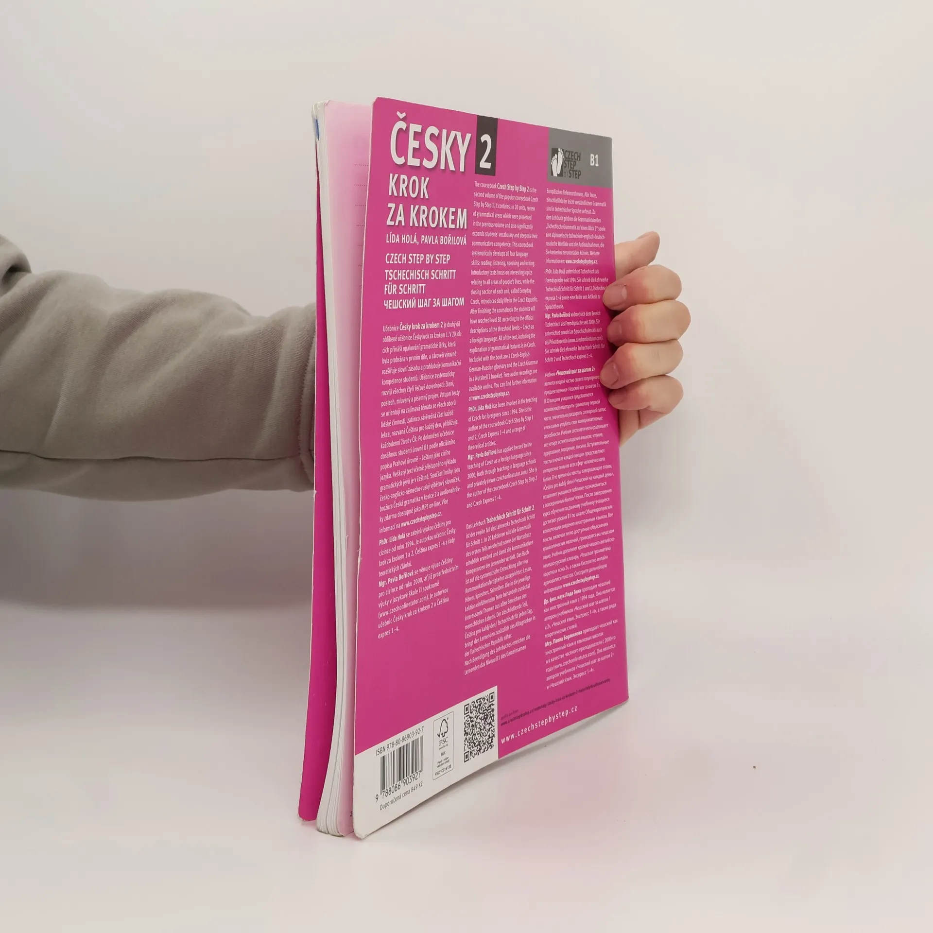 Učebnice Česky krok za krokem 2 je druhý díl oblíbené učebnice New Czech Step by Step / Tschechisch Schritt für Schritt. Přináší ve 20 lekcích opakování gramatické látky, která byla probrána v prvním díle, a zároveň výrazně rozšiřuje slovní zásobu a prohlubuje komunikační kompetence studentů. Učebnice systematicky rozvíjí všechny čtyři řečové dovednosti: čtení, poslech, mluvený a písemný projev. Vstupní texty se orientují na zajímavá témata ze všech oborů lidské činnosti, zatímco závěrečná část každé lekce, nazvaná Čeština pro každý den, přibližuje každodenní život v ČR. Po dokončení učebnice dosáhnou studenti úrovně B1 podle oficiálního popisu Prahové úrovně – češtiny jako cizího jazyka. Veškerý text včetně přístupného výkladu gramatických jevů je v češtině.