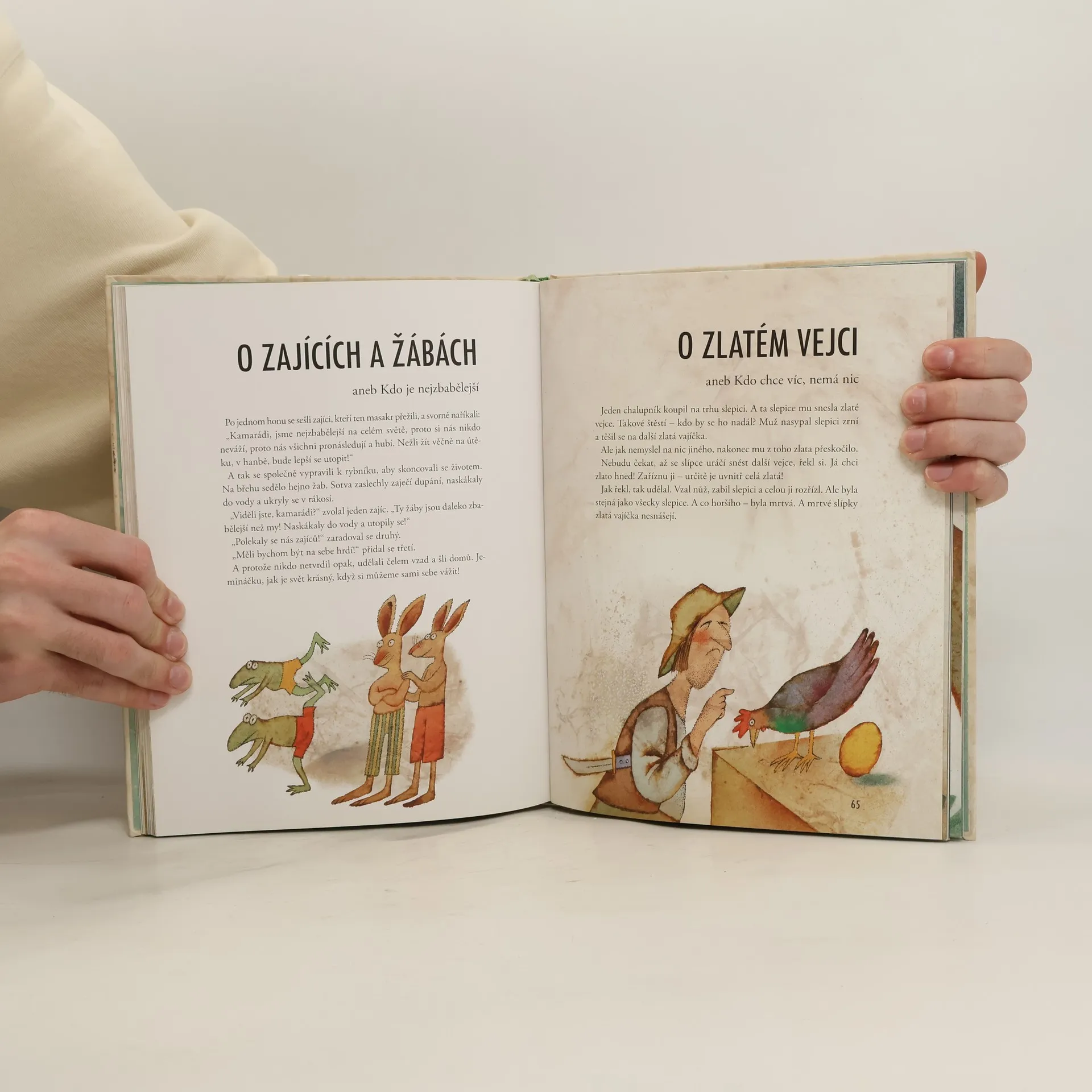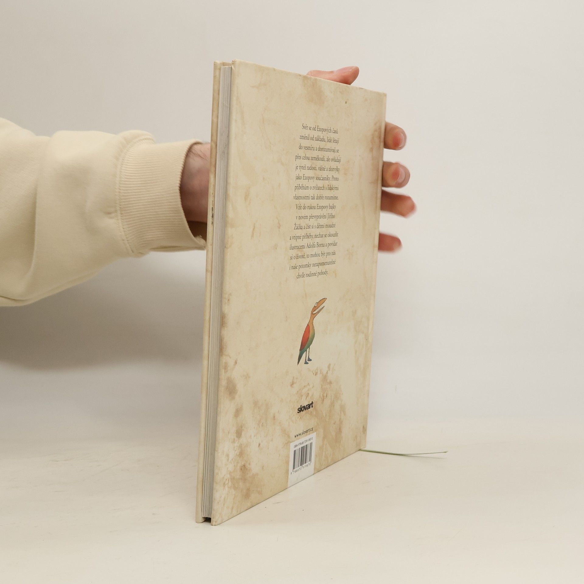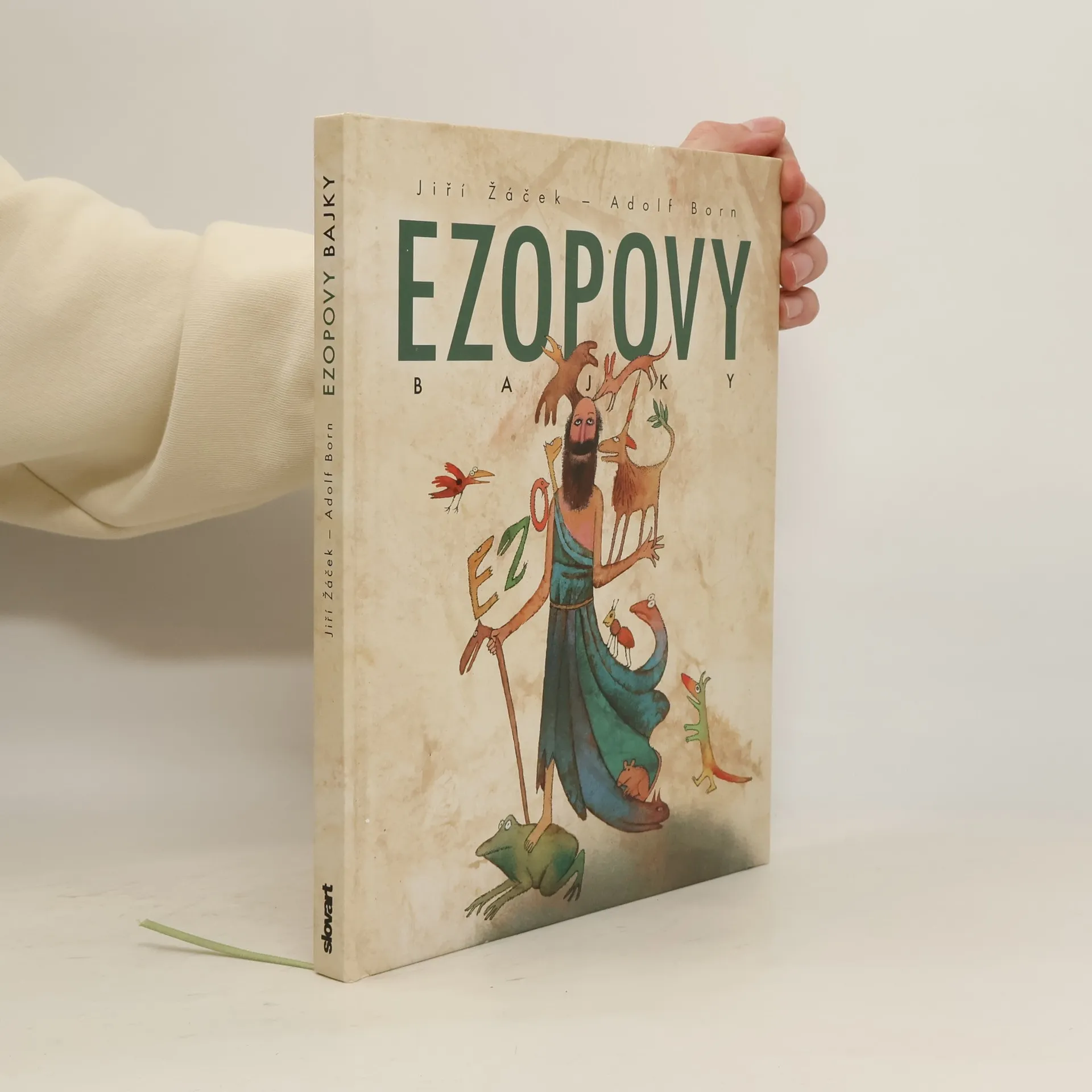 Podle dějepisce Herodota žil v Malé Asii v 6. století před Kristem otrok Aisopos čili Ezop. Byl prý hrbatý, znetvořený a koktavý, ale hlavu měl bystřejší a myšlení pronikavější než lidé urostlí a zdraví. Uměl pobavit posluchače zvířecími bajkami a vtipnými příběhy, ale zdaleka ne všichni jeho současníci byli jeho obdivovatelé. Traduje se, že byl v Delfách popraven za údajné rouhání bohům. Ezopovi byla připisována většina starověkých bajek, zapsány však byly až po třech stoletích od jeho smrti. Mnohokrát byly převyprávěny prózou i ve verších a najde se jen málo těch, co by nevěděli, kdo byl Ezop. Ale ať už se ten moudrý muž jmenoval Ezop, nebo jinak, ať už žil v 6. století před Kristem, anebo jindy, ať už byl thráckého původu, nebo jného, hlavní je, že jeho bajky dodnes nezestárly. Svět se za tu dobu změnil od základu, lidé létají do vesmíru a dorozumívají se přes celou zeměkouli, ale ovládají je tytéž radosti, vášně a zlozvyky jako Ezopovy současníky. Proto jim tak dobře rozumíme - dospělí i děti. Vzít do rukou převyprávění Ezopových bajek od Jiřího Žáčka a číst si s dětmi moudré a vtipné příběhy, prohlížet si ilustrace Adolfa Borna a povídat si o životě, to může být chvíle, která se nám zapíše do paměti.