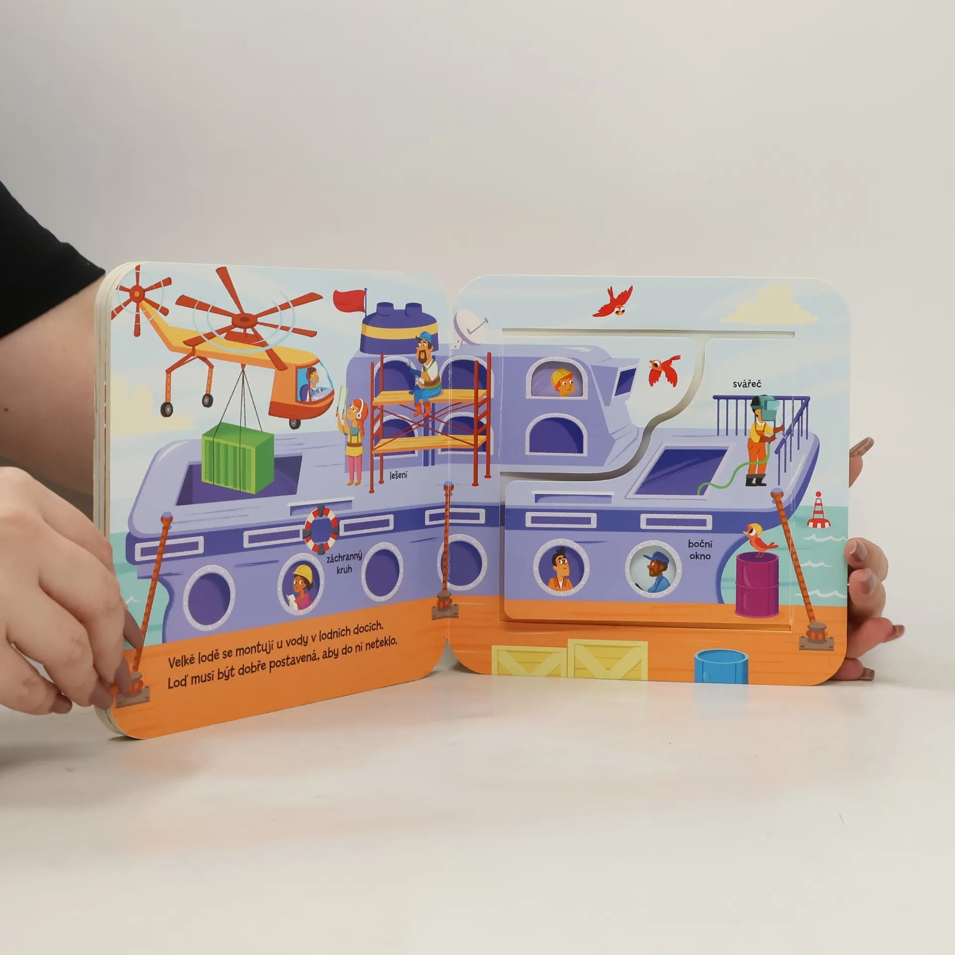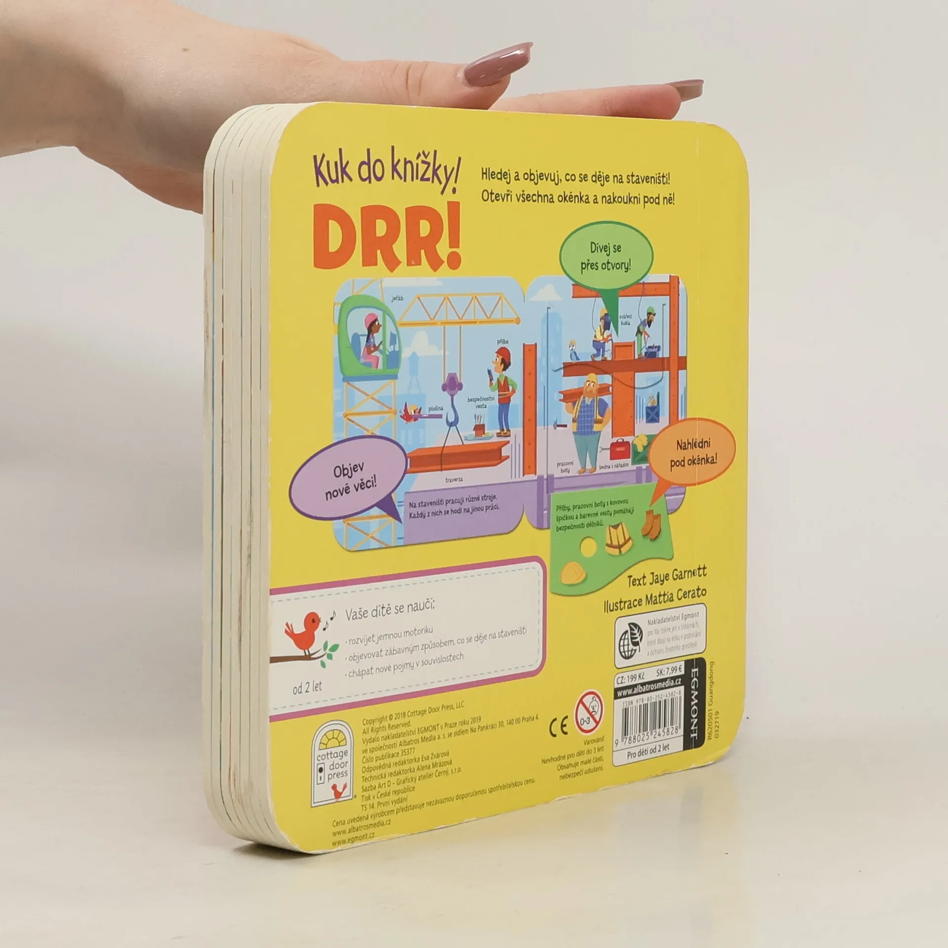 Hledejte a objevujte, co se děje na staveništi! Otevřete okénka a nakoukněte pod ně! S pomocí této knížky si dítě hravou formou osvojí nová slovíčka, zlepší schopnost koncentrace a procvičí si jemnou motoriku.