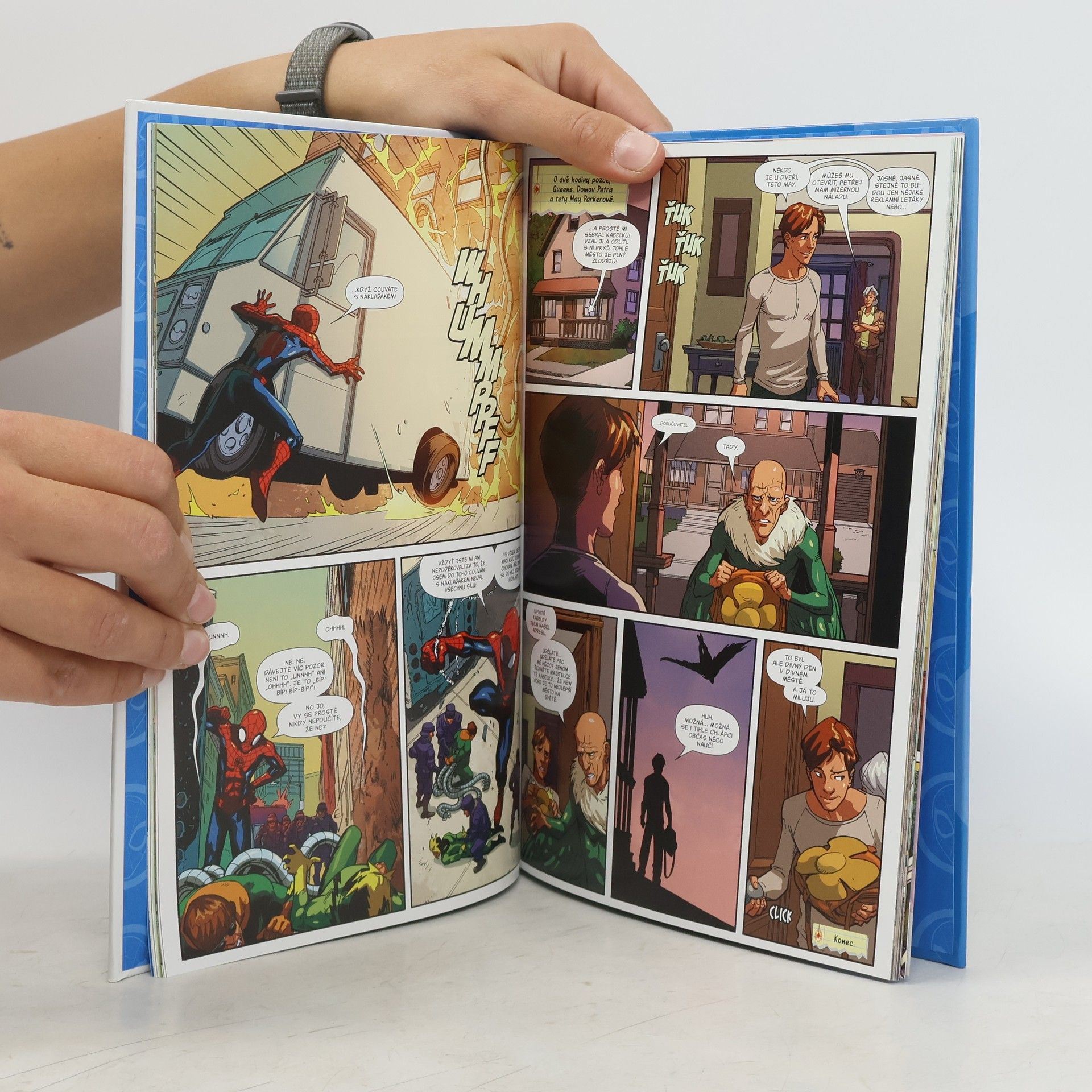 V edici Můj první komiks přichází i Spider-Man… a s ním jeho největší přátelé a protivníci. Hlavně protivníci, protože co by byl Spider-Man bez pořádných soupeřů? Dorazí Mysterio, Dr. Ock, Sandman… a vlastně celá Sinister Six! Spider-Man se bude muset pořádně otáčet! Ideální komiks pro kluky i holky, co začínají se čtením nejen komiksů!