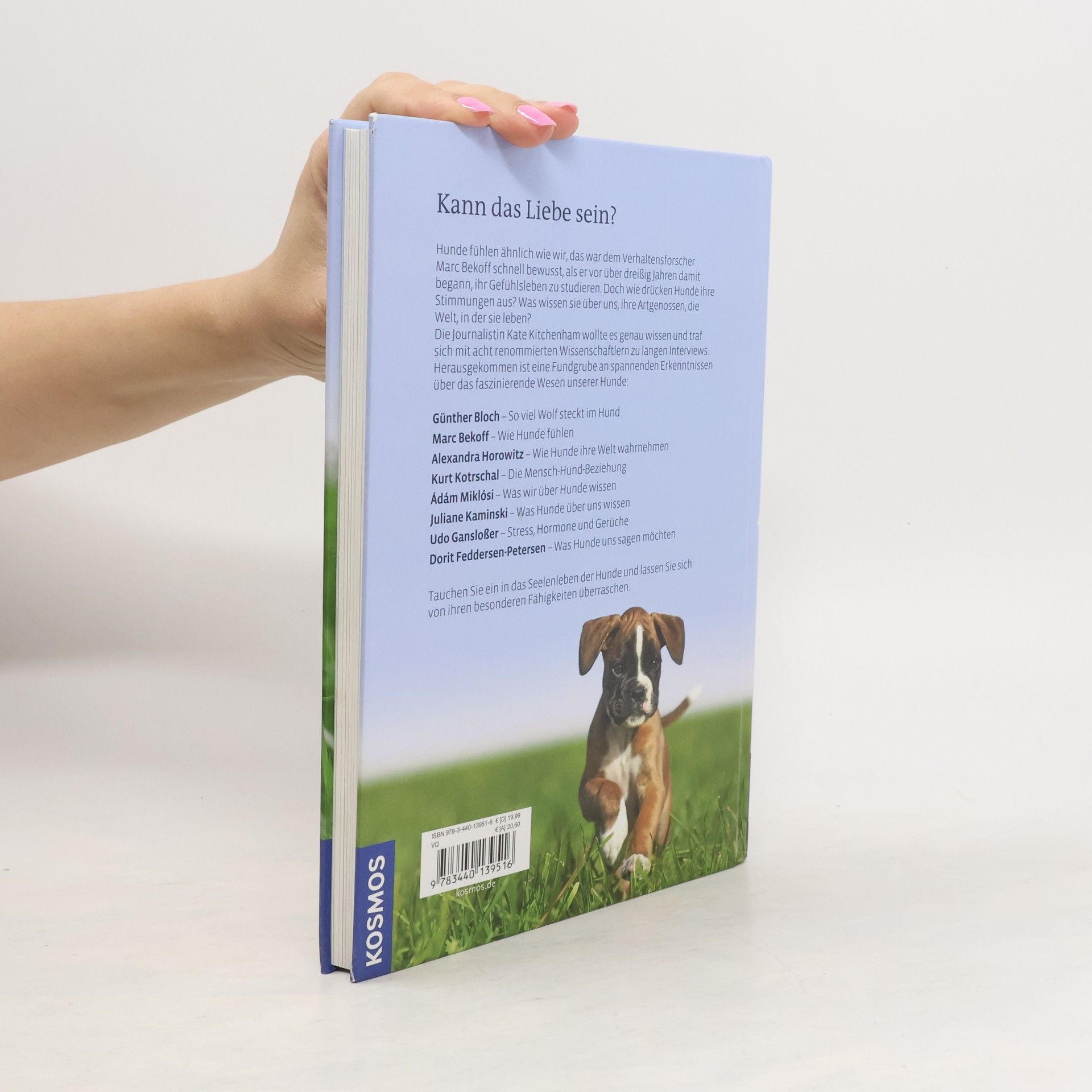 Was wissen Hunde über Menschen? Können sie unsere Stimmungen spüren und unsere Worte verstehen? Hundehalter stellen sich viele dieser Fragen und sind überzeugt: Ihr Hund versteht jedes Wort. Die Journalistin und Hundeexpertin Kate Kitchenham wollte es genau wissen und traf sich mit den Forschern Marc Bekoff, Günther Bloch, Dorit Feddersen-Petersen, Udo Gansloßer, Alexandra Horowitz, Juliane Kaminski, Kurt Kotrschal und Ádám Miklósi. Herausgekommen ist ein außergewöhnliches Buch über das Seelenleben und die Fähigkeiten von Hunden. Aktuell, wissenschaftlich fundiert und leicht verständlich – hier bleibt keine Frage offen. Aus dem Inhalt des Buches: Günther Bloch – So viel Wolf steckt im Hund Marc Bekoff – Wie Hunde fühlen Alexandra Horowitz – Wie Hunde ihre Welt wahrnehmen Kurt Kotrschal – Die Mensch-Hund-Beziehung Ádám Miklósi – Was wir über Hunde wissen Juliane Kaminski – Was Hunde über uns wissen Udo Gansloßer – Stress, Hormone und Gerüche Dorit Feddersen-Petersen – Was Hunde uns sagen möchten