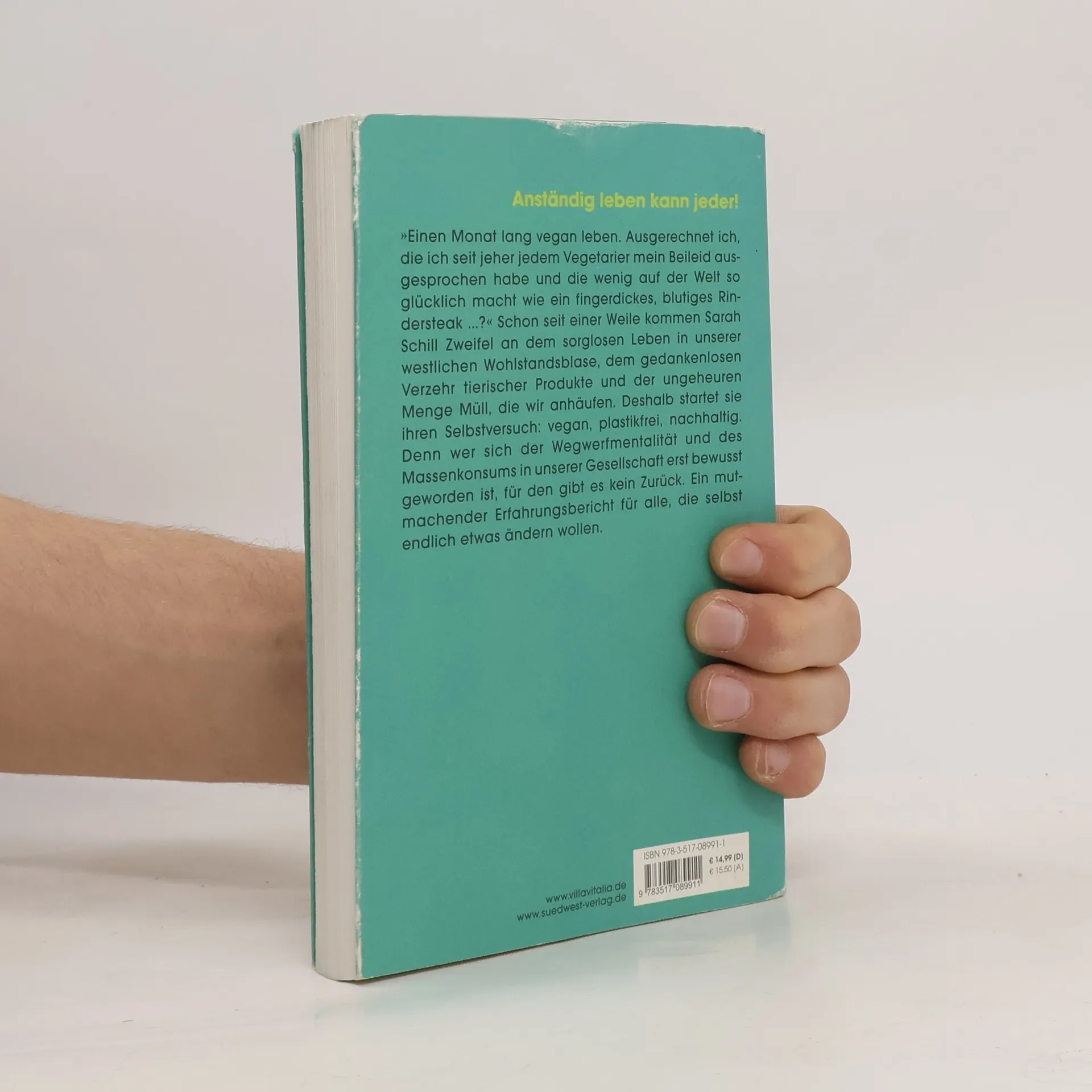 Nachhaltig kann jeder! „Einen Monat lang vegan leben. Ausgerechnet ich, die ich seit jeher jedem Vegetarier mein Beileid ausgesprochen habe und die wenig auf der Welt so glücklich macht wie ein fingerdickes, blutiges Rindersteak.? Doch schon seit einer Weile kommen mir Zweifel an dem sorglosen Leben in unserer westlichen Wohlstandsblase. Um uns herum bricht die Welt zusammen, Ressourcen werden knapper. Immer lauter werden die Stimmen, die unseren maßlosen Verbrauch anprangern, den gedankenlosen Verzehr tierischer Produkte und die ungeheure Menge Müll, die wir anhäufen.” – Hier beginnt Sarah Schills Selbstversuch: vegan, plastikfrei, nachhaltig. Was daraus geworden ist: ein neues Leben. Denn wer sich der Wegwerfmentalität und des bodenlosen Massenkonsums in unserer Gesellschaft bewusst geworden ist, für den gibt es kein Zurück. Ein Ratgeber für alle, denen ihr ökologischer Fußabdruck nicht egal ist.