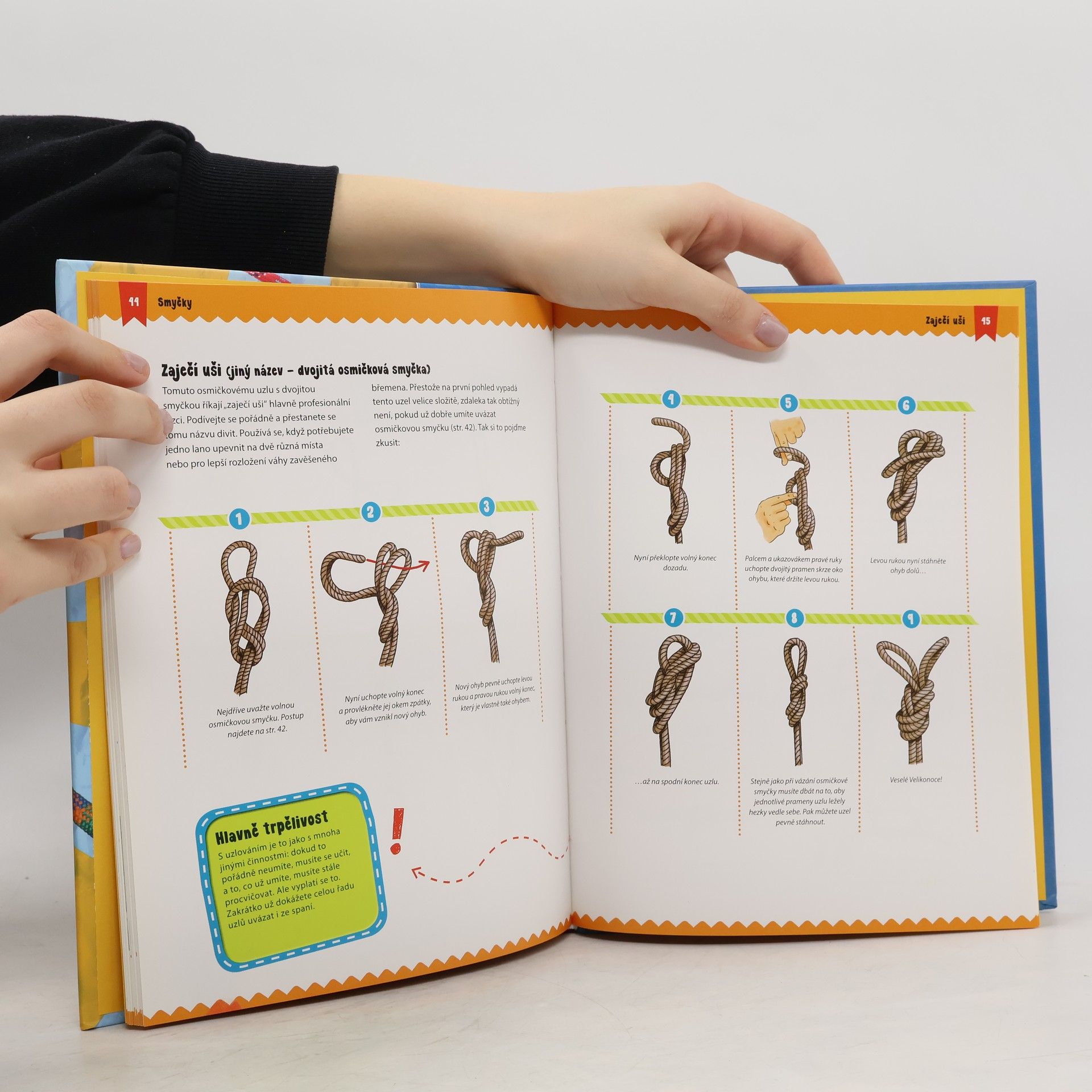 Lodní uzel, osmičkový uzel, dračí smyčka nebo ozdobné uzlíky – existuje mnoho způsobů, jak lze spojit dva konce provázku, a každý z nich se hodí pro jinou příležitost. Někdy potřebuješ přivázat loď, jindy upevnit horolezecké lano, spojit dva provazy nebo vyrobit provazový žebřík. V této knížce najdeš více než 30 uzlů pro každou příležitost. U každého z nich ti přehledně, s pomocí obrázků a fotografií, ukážeme, jak ho uvázat. Některé uzly jsou snadné, na jiné budeš potřebovat trochu cviku – ale nakonec to zvládneš a uvidíš, že uzly jsou nejen užitečné, ale je s nimi i zábava!