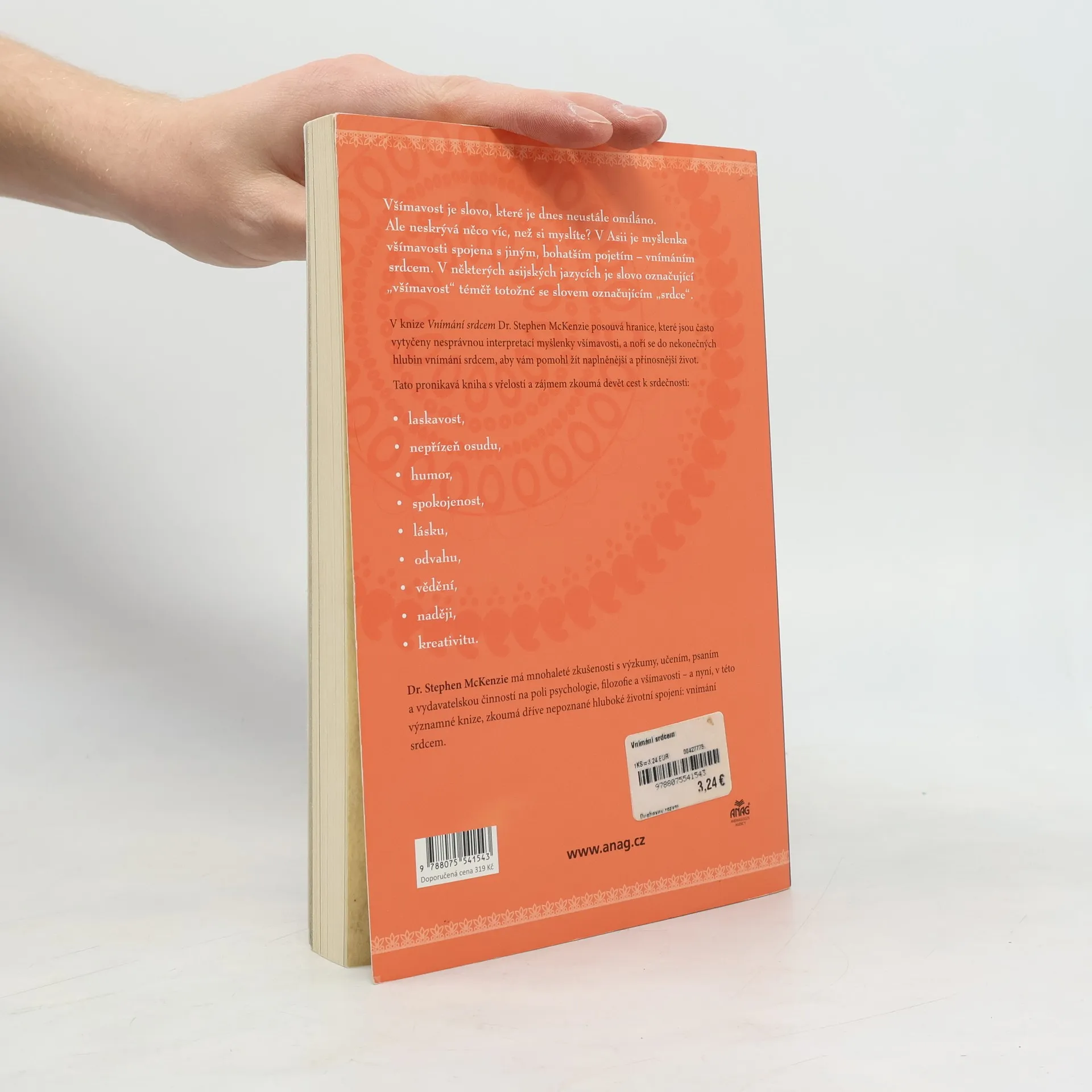 Všímavost se v poslední době stala každodenní součástí běžného života mnoha lidí a roste počet těch dalších, kteří ji do svých životů zapojují. Naplňte své srdce prostřednictvím všímavosti. Stephen McKenzie, učitel všímavosti, nás přivádí zpět k jejím kořenům – propojení srdce s všímavostí se proměňuje v naplněnost srdce. Jasně ukazuje, jak žít naplněný život. Být srdečný znamená být plně propojený – sám se sebou a s ostatními lidmi, a tudíž žít naplno, šťastně, bez stresu a v míru. Tato kniha pojednává o nepřízni osudu, humoru, poznání, laskavosti, lásce a naději mezi ostatními a je doplněna cvičeními.