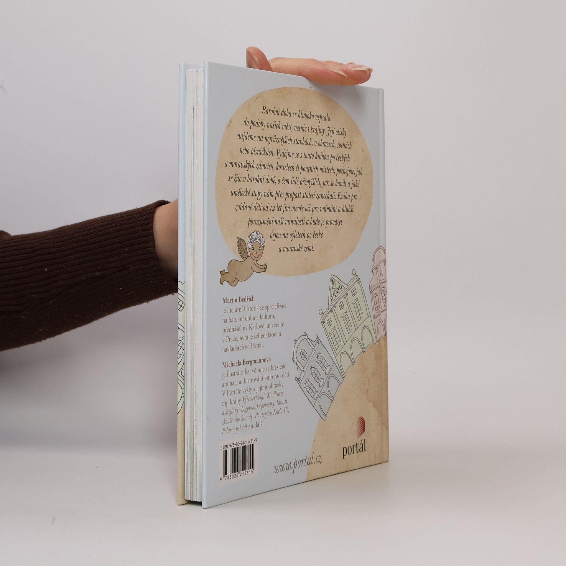Knížka uvádí mladé čtenáře do světa barokních Čech a představuje jim nejen jejich bohatou kulturu, ale i způsob, jak se tehdy žilo. Děti se v ní seznámí s principy barokního umění, architektury, sochařství, malířství a literatury, se základními historickými událostmi, ale také s tím, jak vypadala města a vesnice, jak probíhaly dobové slavnosti, co se jedlo a jak se lidé oblékali. Krásně ilustrovaná kniha bude děti provázet i na výletech, k nimž dává řadu tipů.