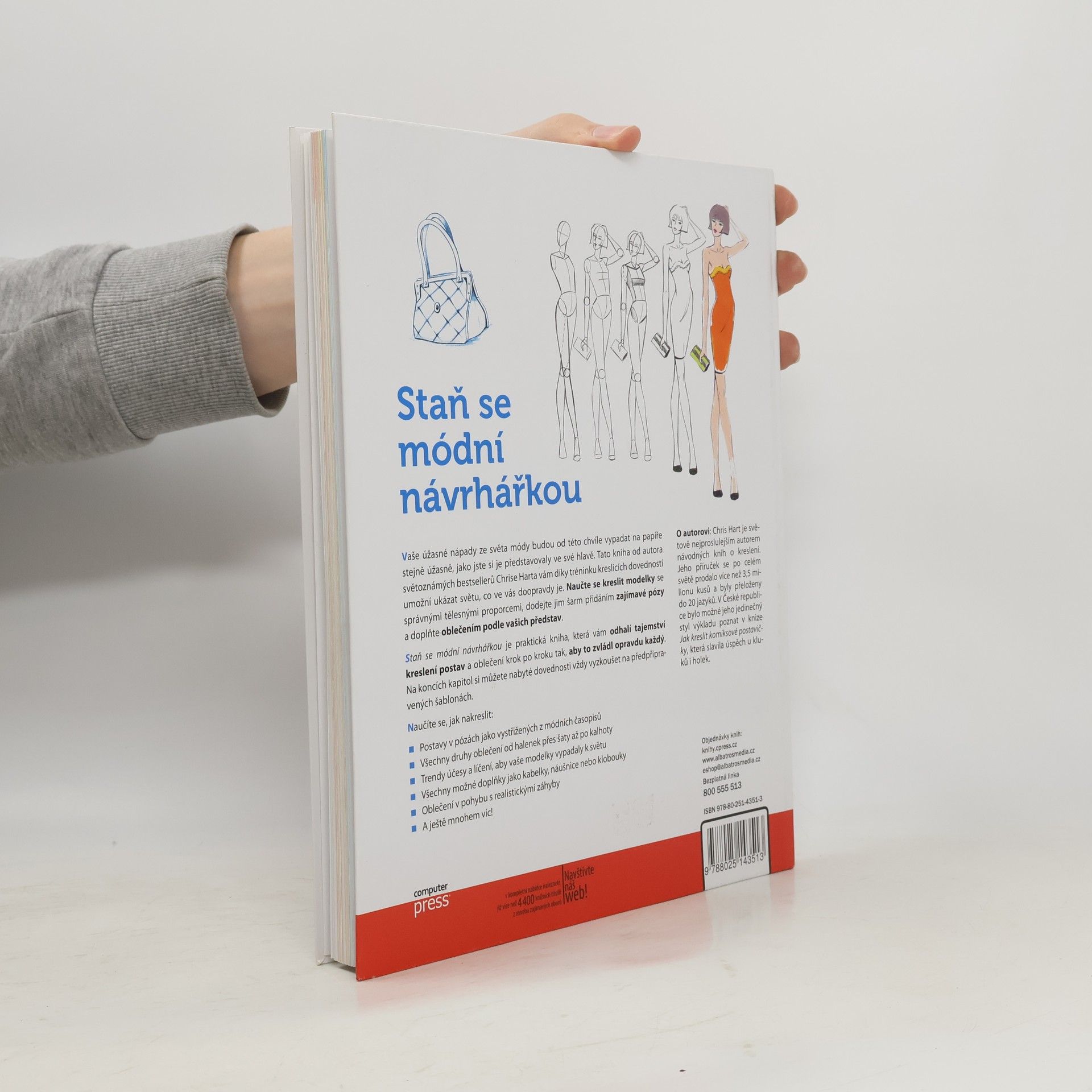 Dostaňte své úžasné módní nápady na papír! Vaše úžasné nápady ze světa módy budou od této chvíle vypadat na papíře stejně úžasně, jako jste si je představovaly ve své hlavě. Tato kniha od autora světoznámých bestsellerů Chrise Harta vám díky tréninku kreslicích dovedností umožní ukázat světu, co ve vás doopravdy je. Naučte se kreslit modelky se správnými tělesnými proporcemi, dodejte jim šarm přidáním zajímavé pózy a doplňte oblečením podle vašich představ. Staň se módní návrhářkou je praktická kniha, která vám odhalí tajemství kreslení postav a oblečení krok po kroku tak, aby to zvládl opravdu každý. Na koncích kapitol si můžete nabyté dovednosti vždy vyzkoušet na předpřipravených šablonách. Naučíte se, jak nakreslit: - Postavy v pózách jako vystřižených z módních časopisů - Všechny druhy oblečení od halenek přes šaty až po kalhoty - Trendy účesy a líčení, aby vaše modelky vypadaly k světu - Všechny možné doplňky jako kabelky, náušnice nebo klobouky - Oblečení v pohybu s realistickými záhyby A ještě mnohem víc!
