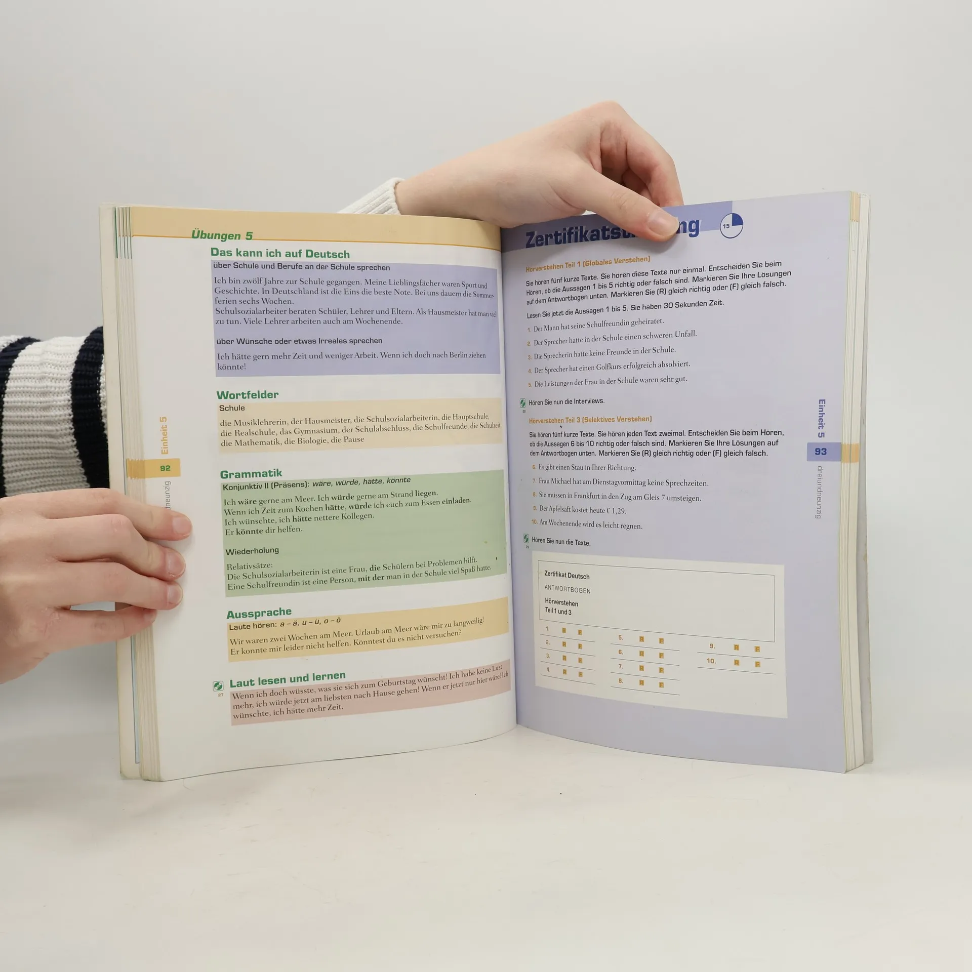 Těžištěm učebnice jsou komunikativní kompetence, zakotvené na pevných gramatických základech a rozvíjené v řadě rozmanitých aktivit. Každá úroveň se skládá z dvanácti lekcí v rozsahu 8-10 stran, které mají jednotnou strukturu. Děje v učebnici se odehrávají na pozadí německy mluvícího prostředí a studenti tak podvědomě získávají i základní zeměpisné znalosti. Učebnice nemá oddělený pracovní sešit, sada cvičení v rozsahu 5 stran je vždy součástí příslušné lekce. Závěrečná stránka v lekci je přehledem probraných komunikativních dovedností, gramatiky a výslovnosti. První díl učebnice byl v celém rozsahu upraven pro potřeby českého prostředí. V dalších dílech české komentáře ubývají, zachovány zůstávají slovníky lekcí a závěrečný abecední slovník s českými ekvivalenty.