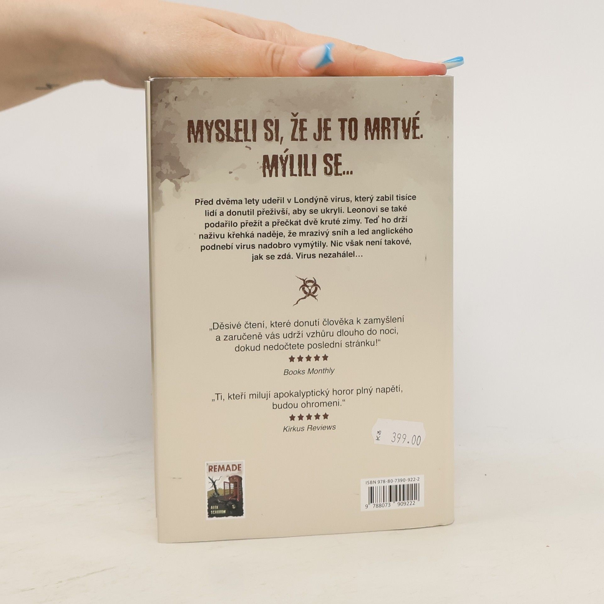 Mysleli si, že je to mrtvé. Mýlili se. Před dvěma lety udeřil v Londýně virus, který zabil tisíce lidí a přeživší zahnal do úkrytů. Leonovi se podařilo přežít a přečkat dvě kruté zimy. Teď ho drží naživu křehká naděje, že mrazivý sníh a led anglického podnebí virus nadobro vymýtily. K Leonovi se donesla zpráva o blížící se záchranné lodi. Nic však není takové, jak se zdá. Virus nezahálel…