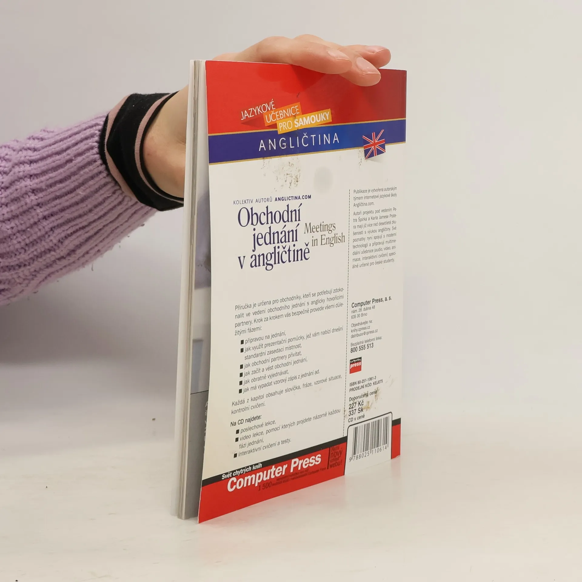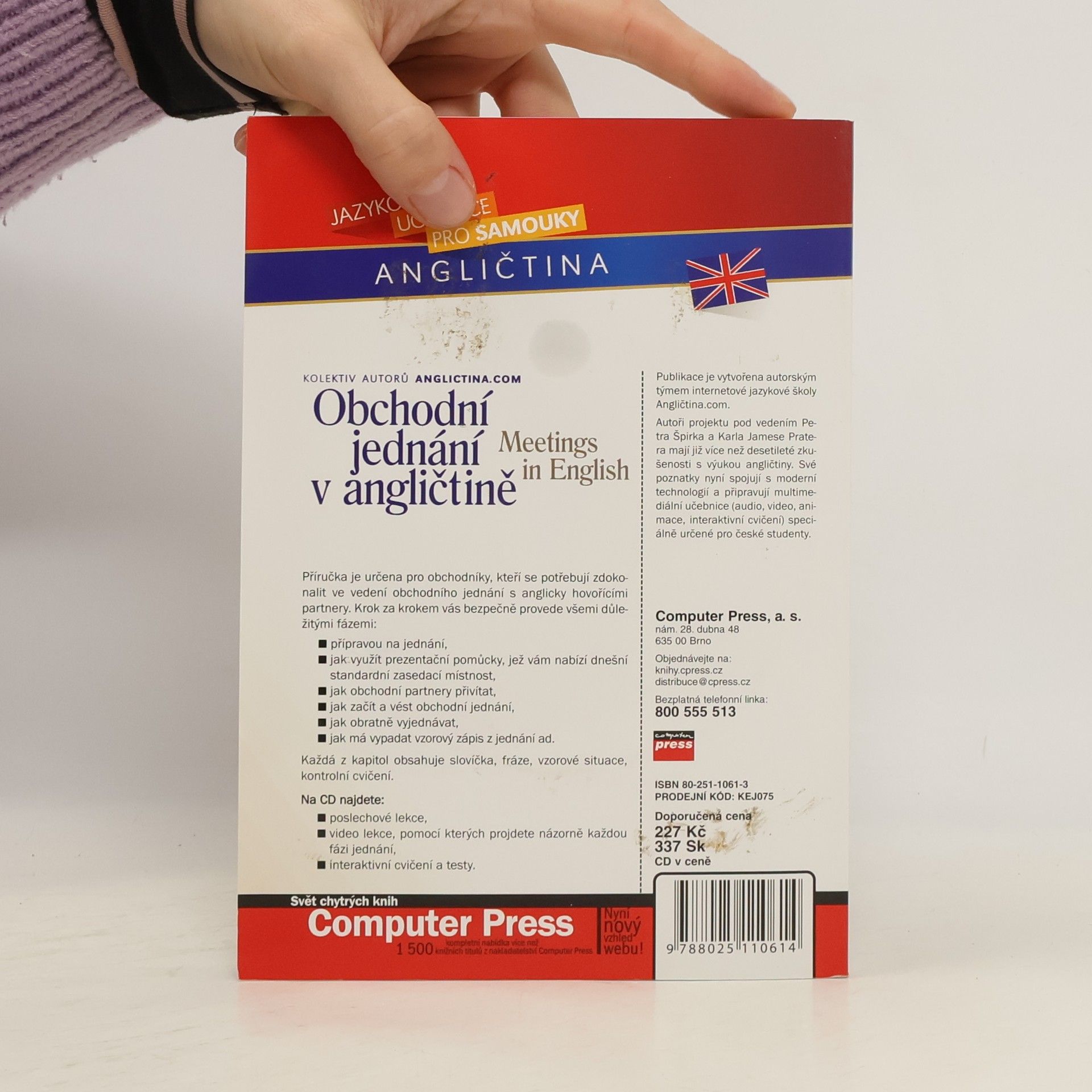 Příručka je určena pro obchodníky, kteří se potřebují zdokonalit ve vedení obchodního jednání s anglicky hovořícími partnery. Krok za krokem vás bezpečně provede všemi důležitými fázemi: - přípravou na jednání, - jak využít prezentační pomůcky, jež vám nabízí dnešní standardní zasedací místnost, - jak obchodní partnery přivítat, - jak začít a vést obchodní jednání, - jak obratně vyjednávat, - jak má vypadat vzorový zápis z jednání ad. Každá z kapitol obsahuje slovíčka, fráze, vzorové situace, kontrolní cvičení. - poslechové lekce, - video lekce, pomocí kterých projdete názorně každou fázi jednání, - interaktivní cvičení a testy.
