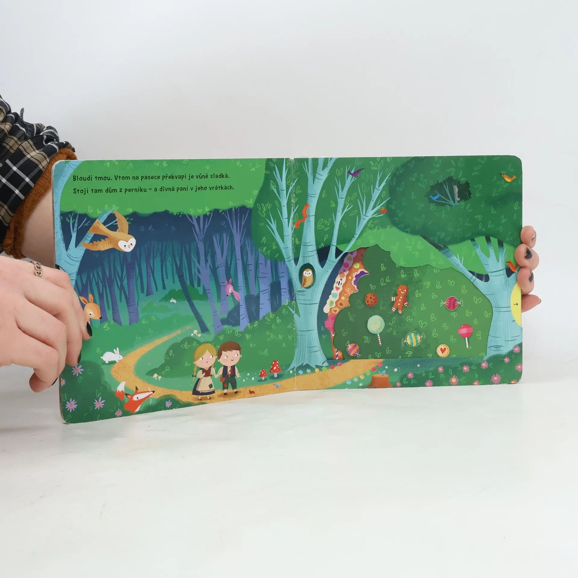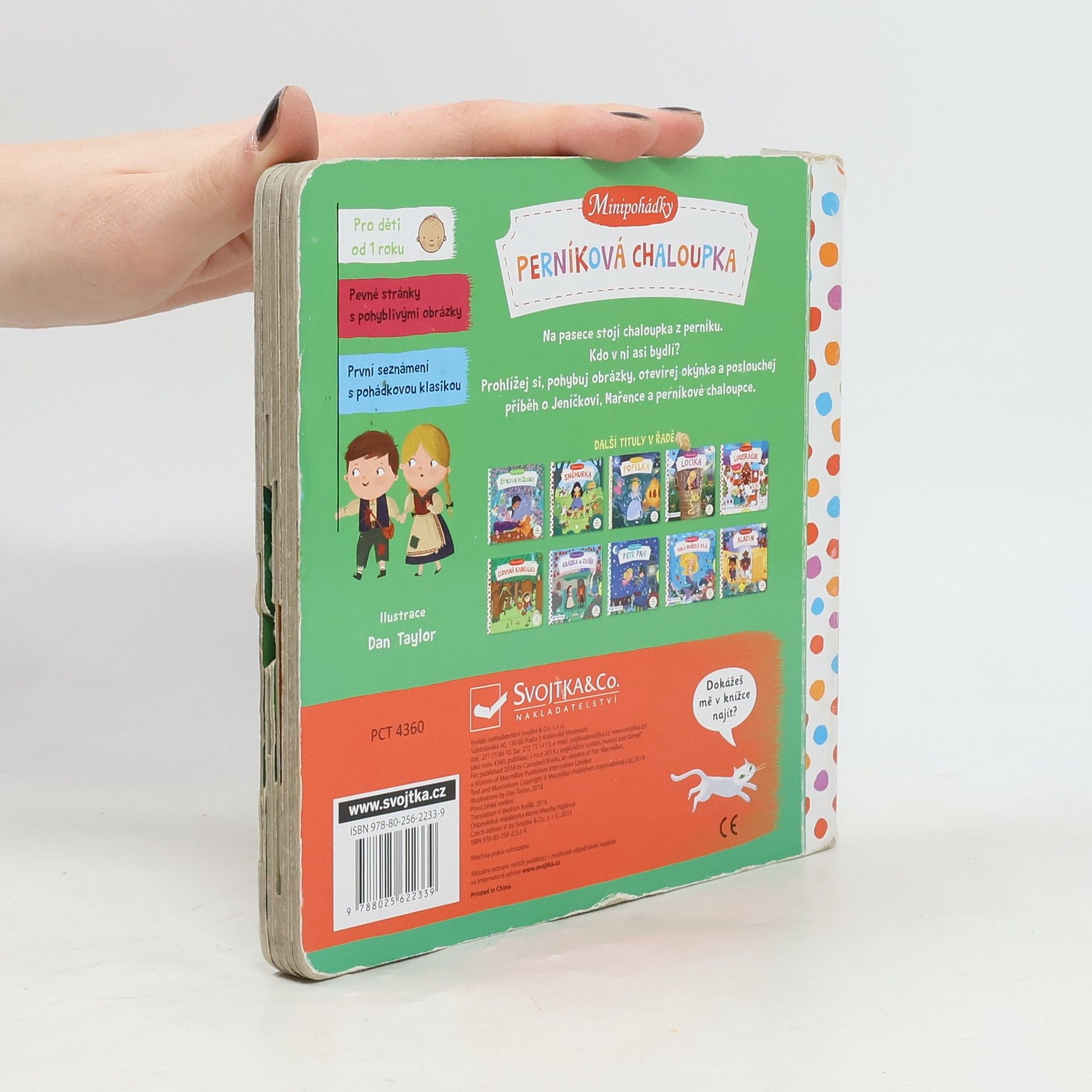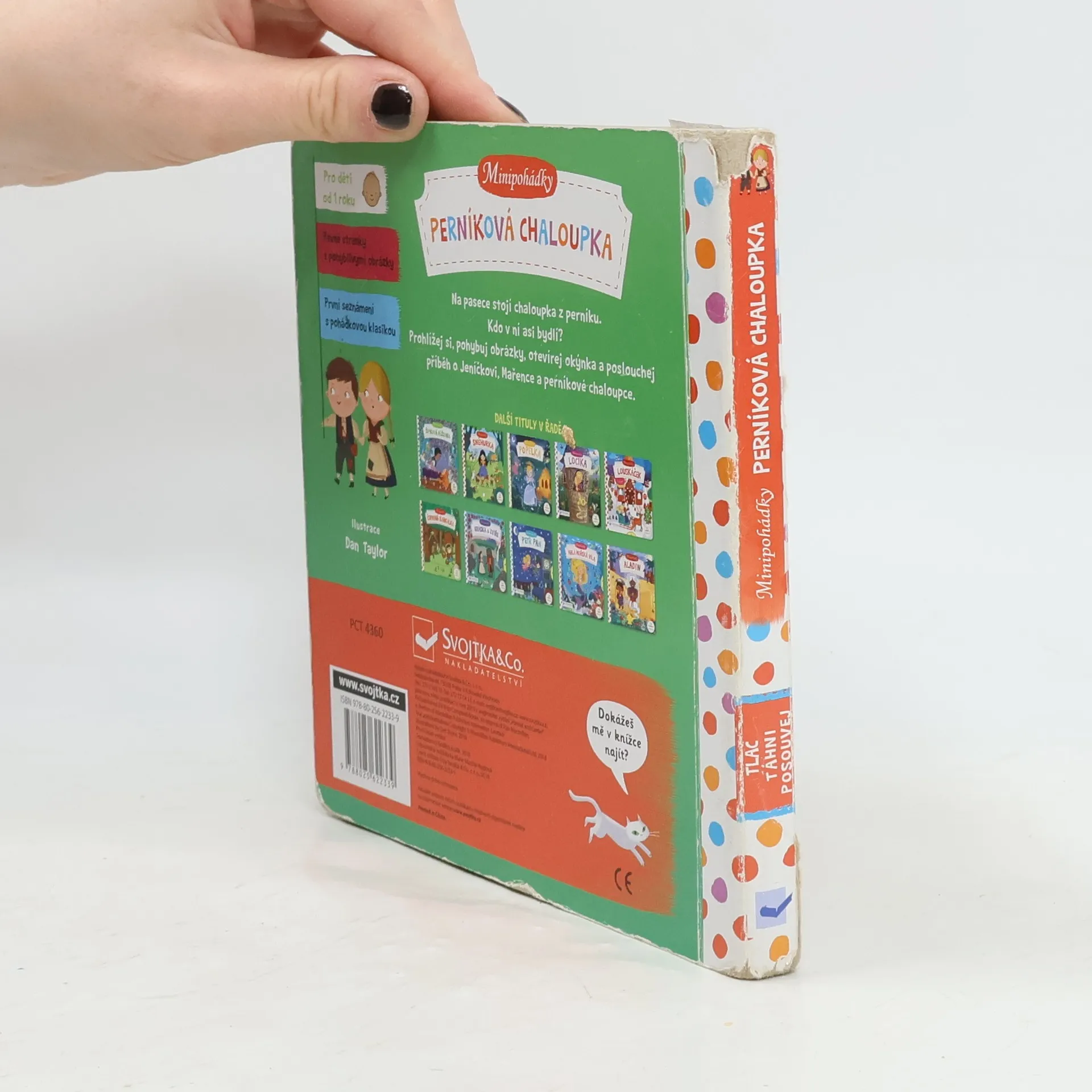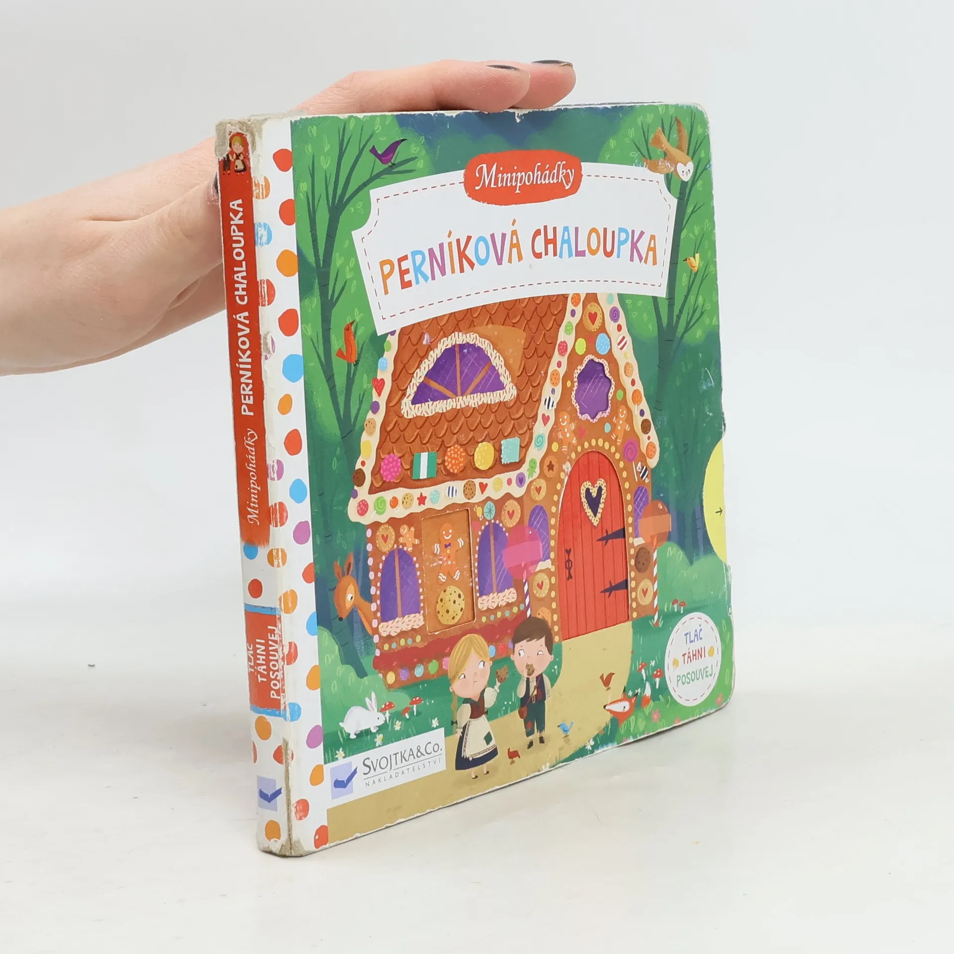 "Bloudí tmou. Vtom na pasece překvapí je vůně sladká. Stojí tam dům z perníku – a divná paní v jeho vrátkách." Klasický pohádkový příběh o Jeníčkovi, Mařence, ježibabě a její perníkové chaloupce nyní v novém, moderním a veršovaném kabátě! Toto malé dětské leporelo s pevnými stránkami a pohyblivými prvky je určeno dětem od jednoho roku a najdete v něm krátkou pohádku Perníková chaloupka převedenou do vtipných veršů a interaktivních ilustrací. Při poslouchání příběhu si děti mohou procvičovat svou jemnou motoriku, a zároveň si tak pohádkový příběh a jeho postavy oživit. Tak vzhůru do čtení! Cítíte tu sladkou vůni? Perníková chaloupka má otevřená vrátka a už na vás čeká!