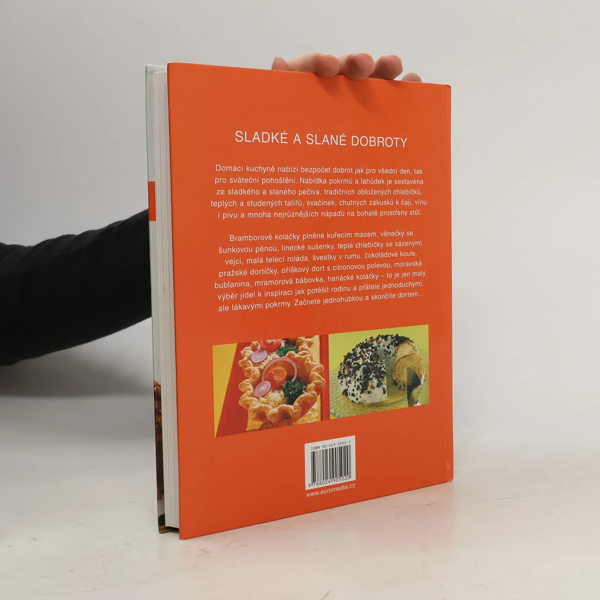 Domácí kuchyně nabízí bezpočet dobrot jak pro všední den, tak pro sváteční pohoštění. Nabídka pokrmů a lahůdek je sestavena ze sladkého a slaného pečiva, tradičních obložených chlebíčků, teplých a studených talířů, svačinek, chutných zákusků k čaji, vínu i pivu a mnoha nejrůznějších nápadů na bohatě prostřený stůl. Bramborové koláčky plněné kuřecím masem, věnečky se šunkovou pěnou, linecké sušenky, teplé chlebíčky se sázenými vejci, malá telecí roláda, švestky v rumu, čokoládové koule, pražské dortíčky, oříškový dort s citronovou polevou, moravská bublanina, mramorová bábovka, hanácké koláčky - to je jen malý výběr jídel k inspiraci jak potěšit rodinu a přátele jednoduchými, ale lákavými pokrmy. Začnete jednohubkou, a skončíte dortem...