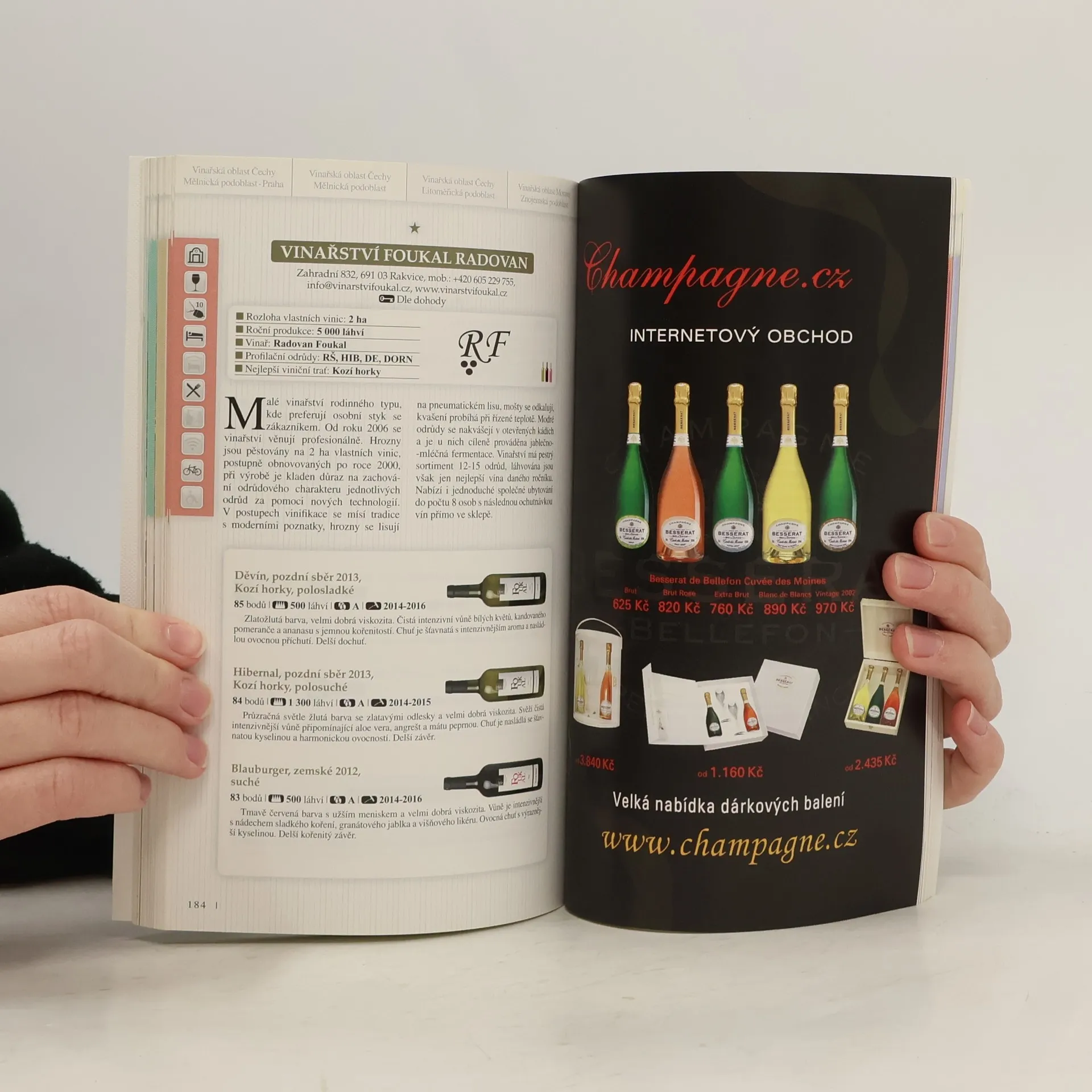 Vydavatelství časopisu WINE & Degustation přichází s ojedinělou publikací, která od letošního roku bude vycházet vždy před letní turistickou sezonou v českém a anglickém jazyce. Tento průvodce je cenným zdrojem informací pro všechny milovníky vína z domova i ze zahraničí, kteří mají o vína z České republiky zájem. Pro profesionály je naprosto nezbytnou pomůckou pro výběr vín k jejich práci. Každé vinařství je přehledně představeno na jedné tiskové straně s podrobnými údaji o historii i současnosti včetně nezávislého hodnocení jejich nejlepších vín. Nejdůležitější devizou je v branži velmi respektovaný autorský tým, pečlivě sestavený z nejlepších dlouhodobých spolupracovníků časopisu WINE & Degustation, který je zárukou korektního a nezávislého hodnocení vín a vinařství, a tedy neoddiskutovatelné kvality celé publikace.