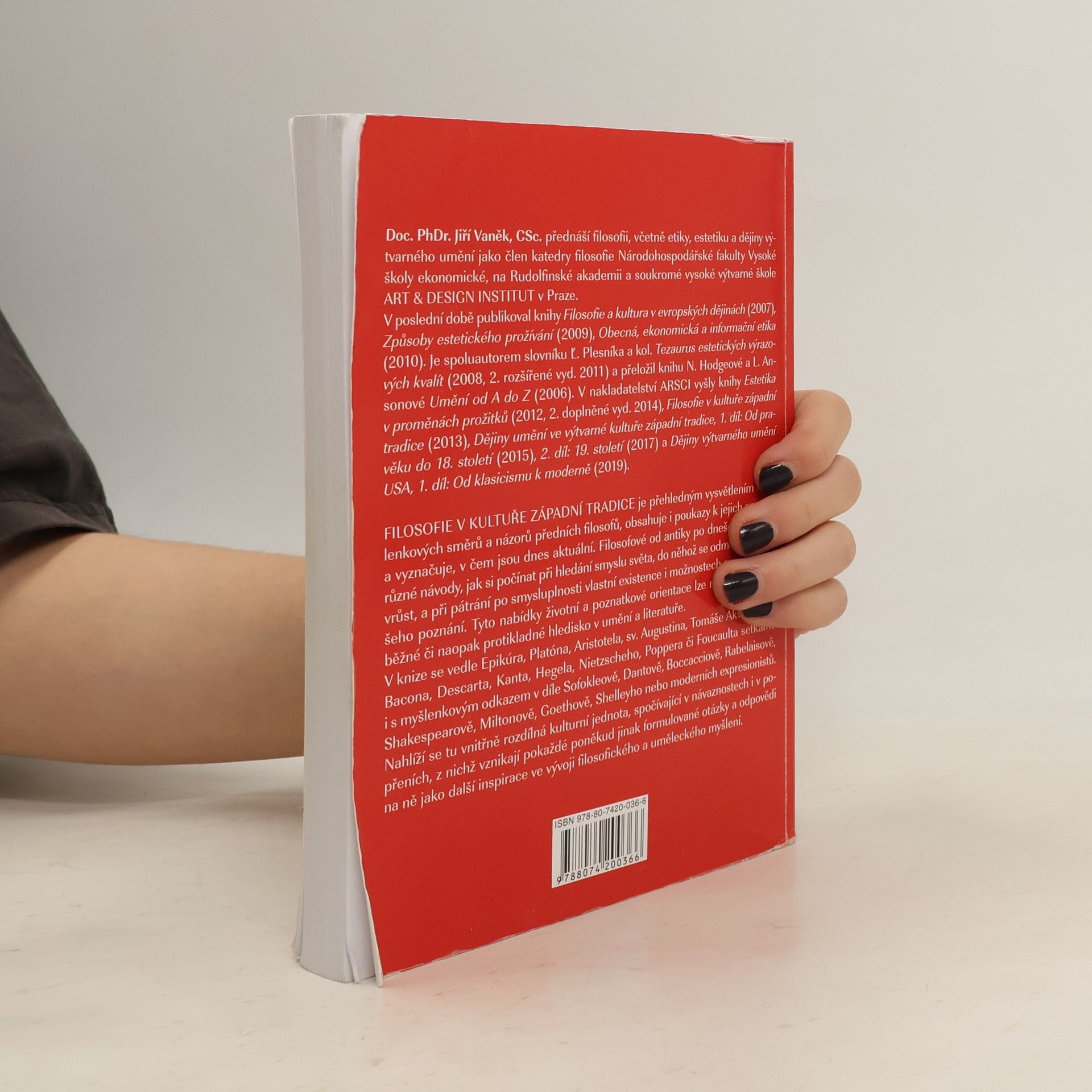 Filosofie v kultuře západní tradice je přehledným vysvětlením myšlenkových směrů a názorů předních filosofů, obsahuje i poukazy k jejich sporům a vyznačuje, v čem jsou dnes aktuální. Filosofové od antiky po dnešek nám dali různé návody, jak si počínat při hledání smyslu světa, do něhož se odmala snažíme vrůst, a při pátrání po smysluplnosti vlastní existence i možnostech a mezích našeho poznání. Tyto nabídky životní a poznatkové orientace lze nalézt jako souběžné či naopak protikladné hledisko v umění a literatuře. V knize se vedle Epikúra, Platóna, Aristotela, sv. Augustina, Tomáše Akvinského, Bacona, Descarta, Kanta, Hegela, Nietzscheho, Poppera či Foucaulta setkáme i s myšlenkovým odkazem v díle Sofokleově, Dantově, Boccacciově, Rabelaisově, Shakespearově, Miltonově, Goethově, Shelleyho nebo moderních expresionistů. Nahlíží se tu vnitřně rozdílná kulturní jednota, spočívající v návaznostech i v popřeních, z nichž vznikají pokaždé poněkud jinak formulované otázky a odpovědi na ně jako další inspirace ve vývoji filosofického a uměleckého myšlení.