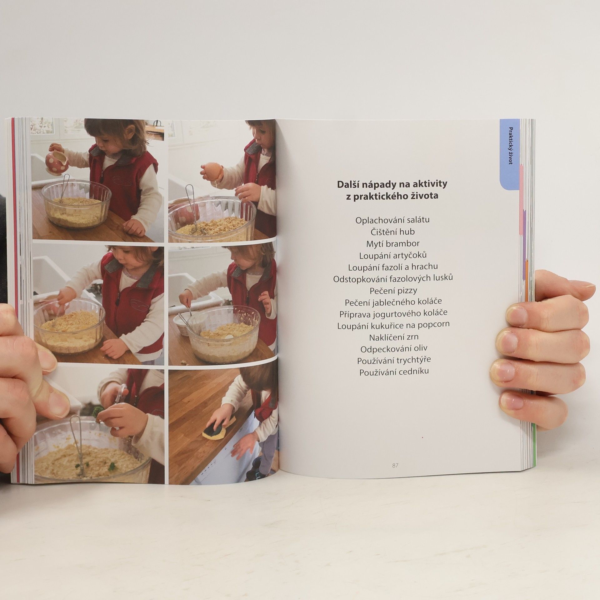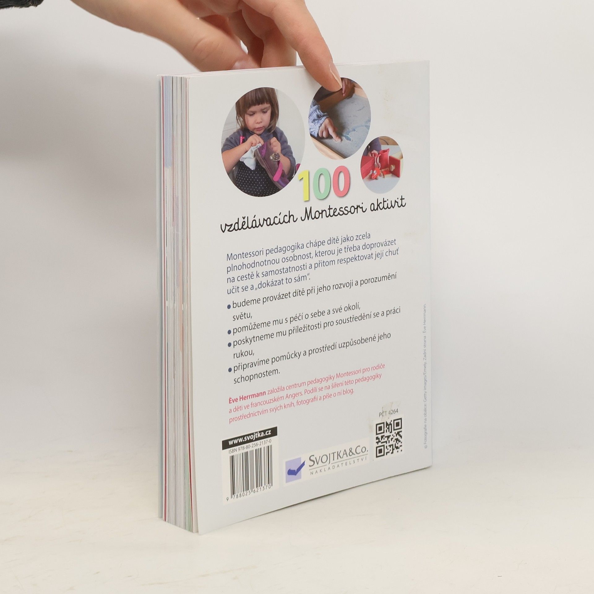 Objevujte s dětmi svět! Pomocí jednoduchých aktivit, které lze přizpůsobit konkrétním potřebám dítěte, se batole naučí vše o sobě i okolním světě. Tato kniha nabízí 100 aktivit, vycházejících z principů pedagogiky Montessori a určených dětem od 18 měsíců. Prostřednictvím jednoduchých úkolů se děti přirozenou formou naučí praktické dovednosti jako oblékání, hygienické návyky a jednoduchou pomoc v domácnosti. Vedle těchto každodenních činností si děti procvičí i smyslové vnímání, začnou rozvíjet jemnou motoriku a seznámí se s okolním světem. Tyto aktivity jim pomáhají objevovat a pozorovat svět a uspokojovat jejich nekonečnou zvídavost. Postupujte tak, jak dítě samo chce, přizpůsobujte je situaci i rytmu, který vyhovuje dítěti. Objevujte svět společně se svými dětmi!
