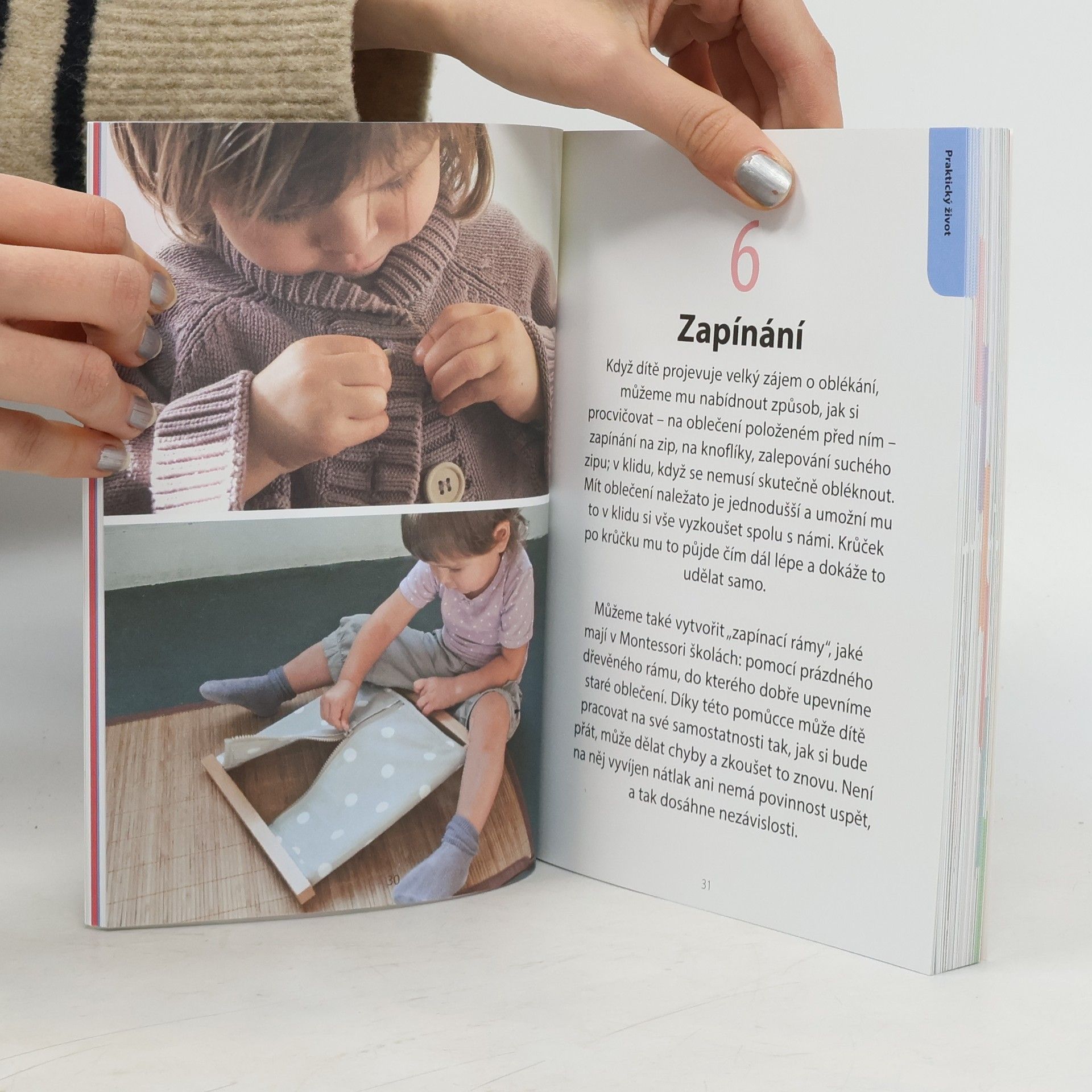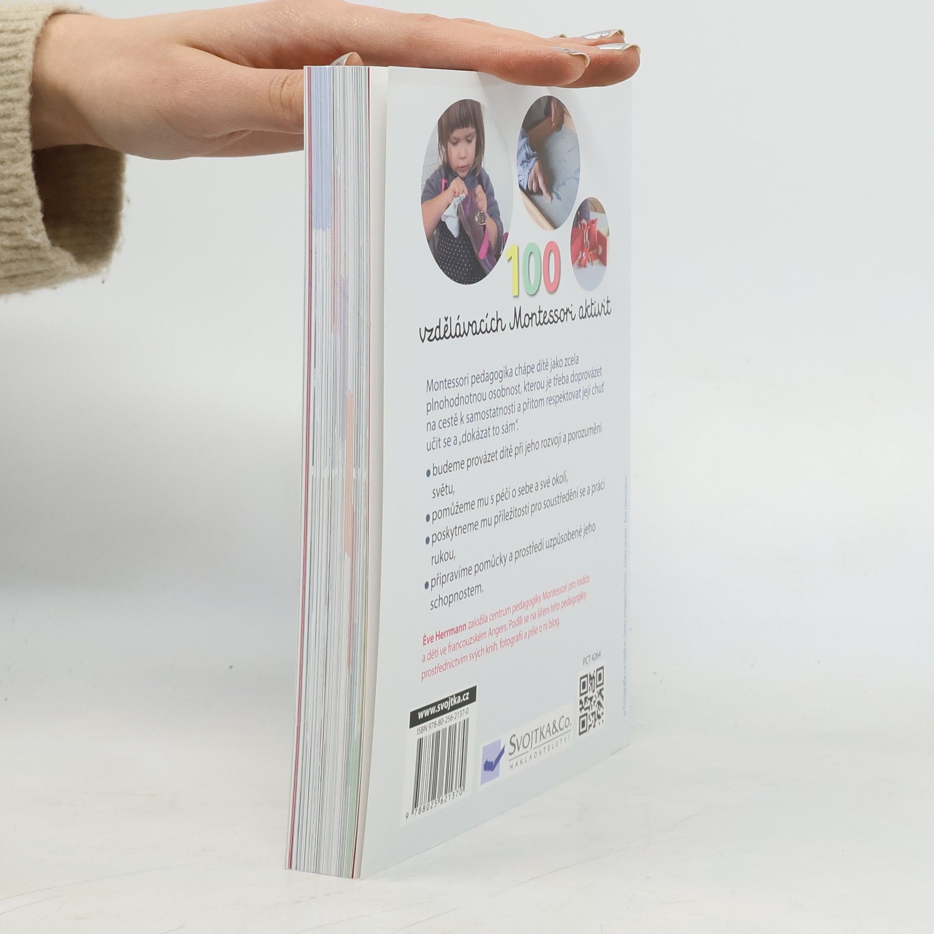Objevujte s dětmi svět! Pomocí jednoduchých aktivit, které lze přizpůsobit konkrétním potřebám dítěte, se batole naučí vše o sobě i okolním světě. Tato kniha nabízí 100 aktivit, vycházejících z principů pedagogiky Montessori a určených dětem od 18 měsíců. Prostřednictvím jednoduchých úkolů se děti přirozenou formou naučí praktické dovednosti jako oblékání, hygienické návyky a jednoduchou pomoc v domácnosti. Vedle těchto každodenních činností si děti procvičí i smyslové vnímání, začnou rozvíjet jemnou motoriku a seznámí se s okolním světem. Tyto aktivity jim pomáhají objevovat a pozorovat svět a uspokojovat jejich nekonečnou zvídavost. Postupujte tak, jak dítě samo chce, přizpůsobujte je situaci i rytmu, který vyhovuje dítěti. Objevujte svět společně se svými dětmi!