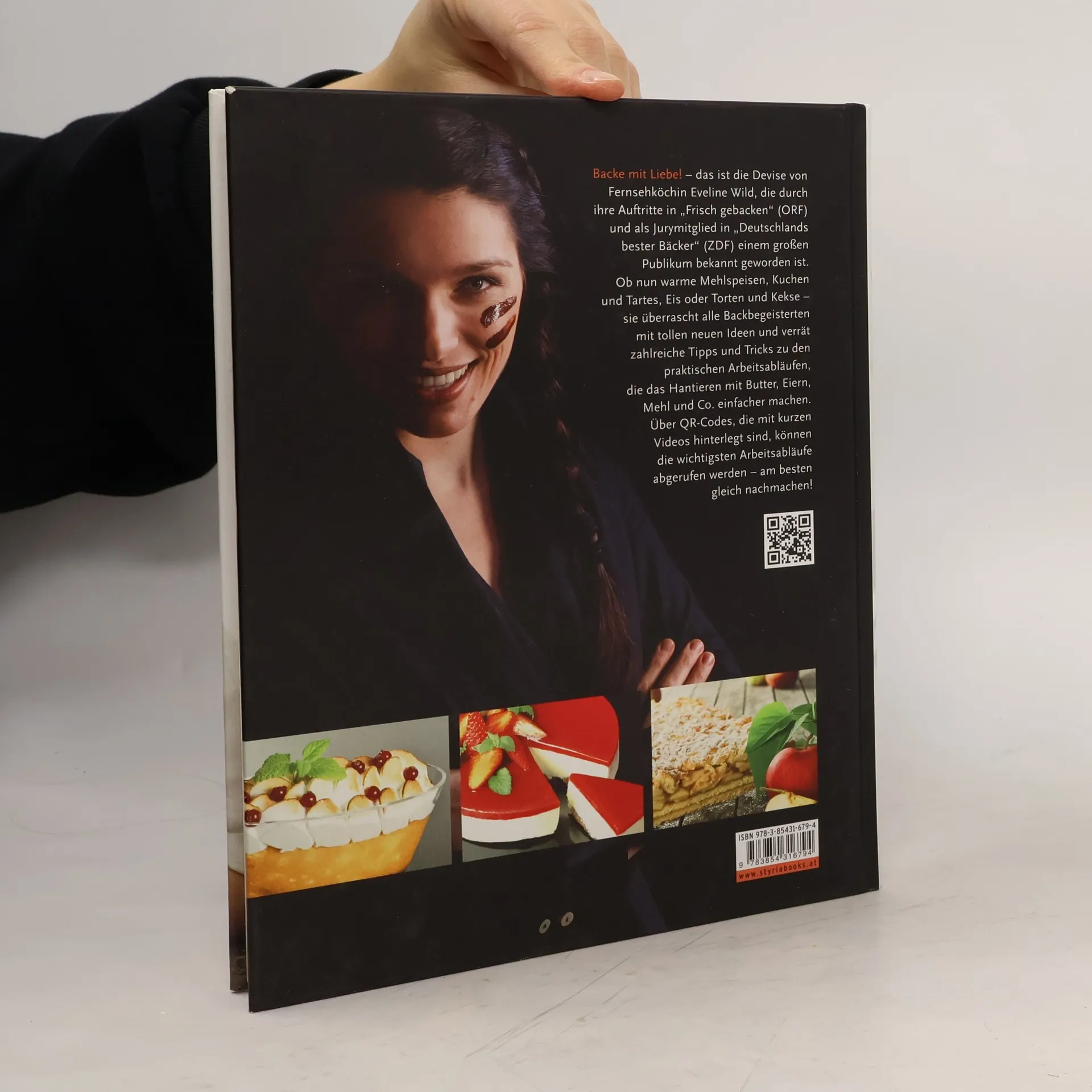 Das erste Buch von Fernsehköchin und Meister-Patissière Eveline Wild präsentiert zum einen köstliche Basisrezepte, mit denen man ohne viel Aufwand tolle Süßspeisen zaubern kann. Zum anderen kommen aber auch die Backfreaks nicht zu kurz – für sie werden die besagten Rezepte „auffrisiert“: Mit einigen Zutaten und Handgriffen mehr können sie sich einen Wow-Effekt nach dem anderen „erbacken“. Eveline Wild überrascht so alle Backbegeisterten mit neuen Ideen und gibt zahlreiche Tipps und Tricks zu den praktischen Arbeitsabläufen, die das Hantieren mit Butter, Eiern, Mehl und Co. einfacher machen. Kurze Step-by-step-Bildreihen animieren zum Nachmachen, fördern die Kreativität der Leserinnen und Leser und vermitteln das Gefühl „Das kann ich auch“. QR-Codes, die mit kurzen Video-Sequenzen hinterlegt sind, erlauben es, der Profi-Patissière genau auf die Finger zu schauen.
