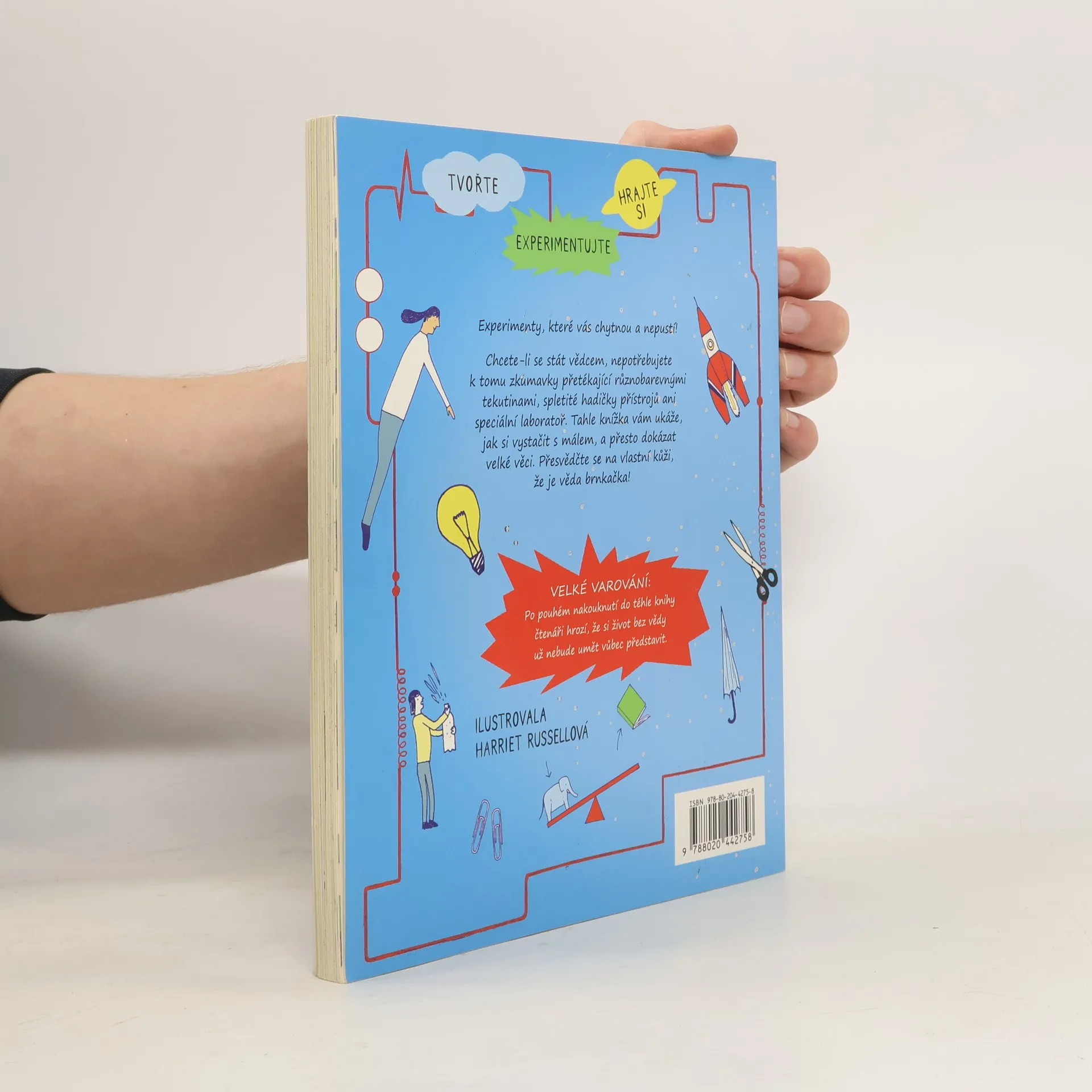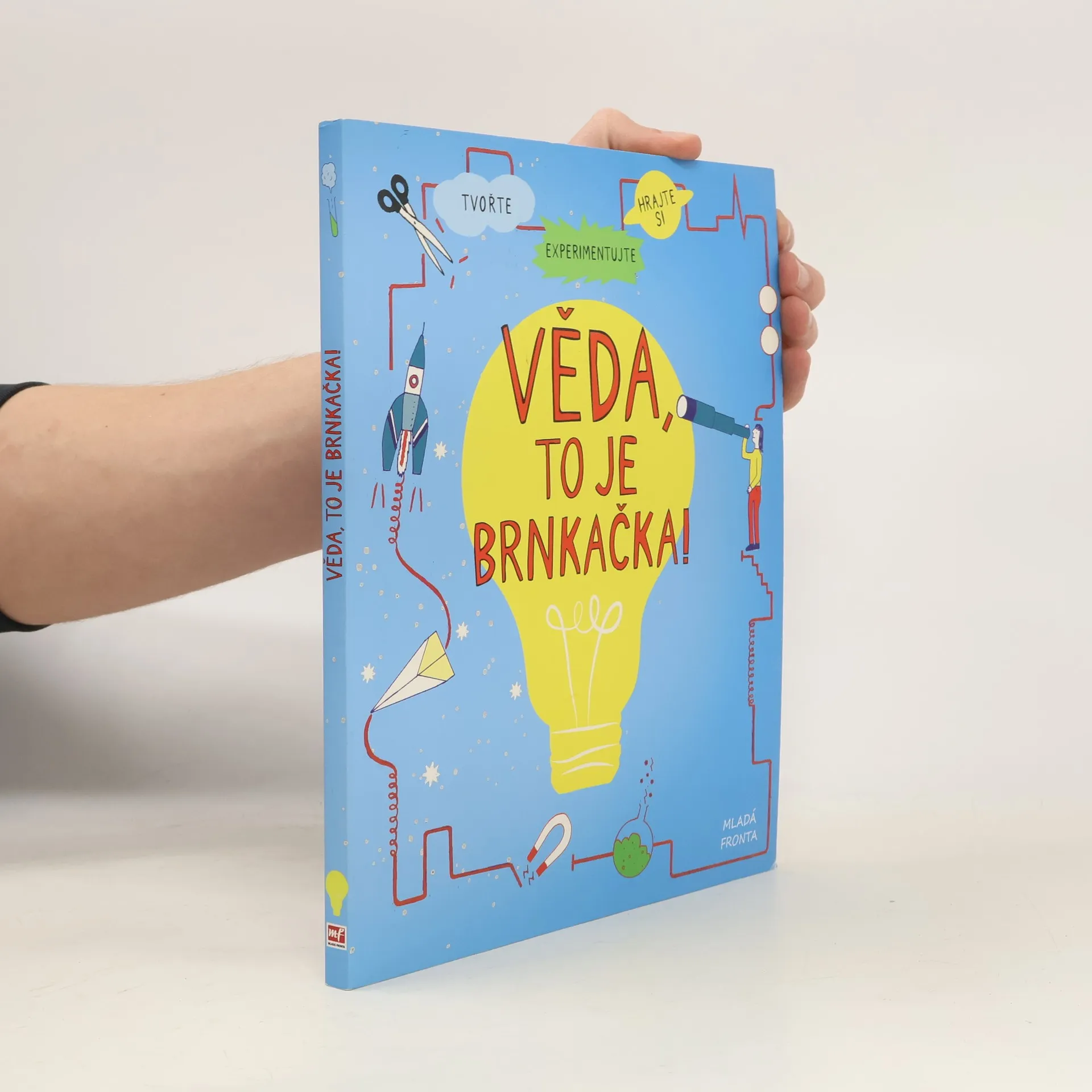 Chcete-li se stát vědcem, nepotřebujete k tomu zkumavky přetékající různobarevnými tekutinami, spletité hadičky přístrojů ani speciální laboratoř. Tahle knížka vám ukáže, jak si vystačit s málem, a přesto dokázat velké věci. Je prakticky rozdělena na několik oblastí (pohyb a síla; matematika; Země a vesmír; světlo; hmota; zvuk; elektřina a magnetismus), její zadní část pak představuje jakousi přenosnou laboratoř – tvoří ji stránky, které můžete trhat, stříhat, cákat na ně, abyste viděli, jak vypadá věda v akci. Vaším úkolem je zkrátka bedlivě sledovat okolní svět, dávat pozor a klást si otázky. Přesvědčte se na vlastní kůži, že je věda brnkačka!
