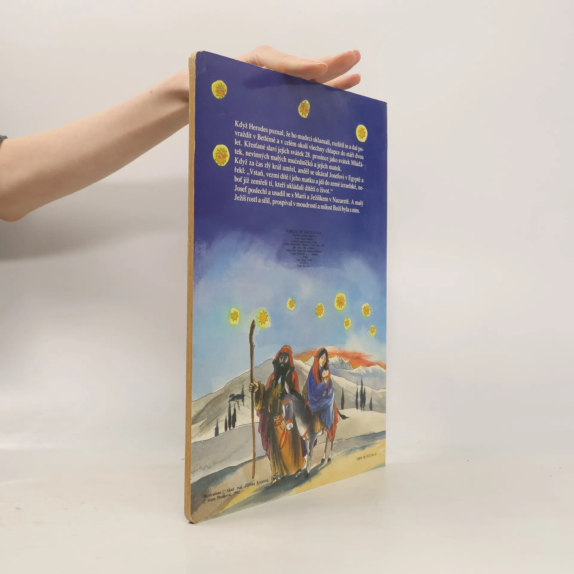 Příběh narození Krista převyprávěný krátkým textem s velkými celostránkovými obrázky je určen mladším školákům.