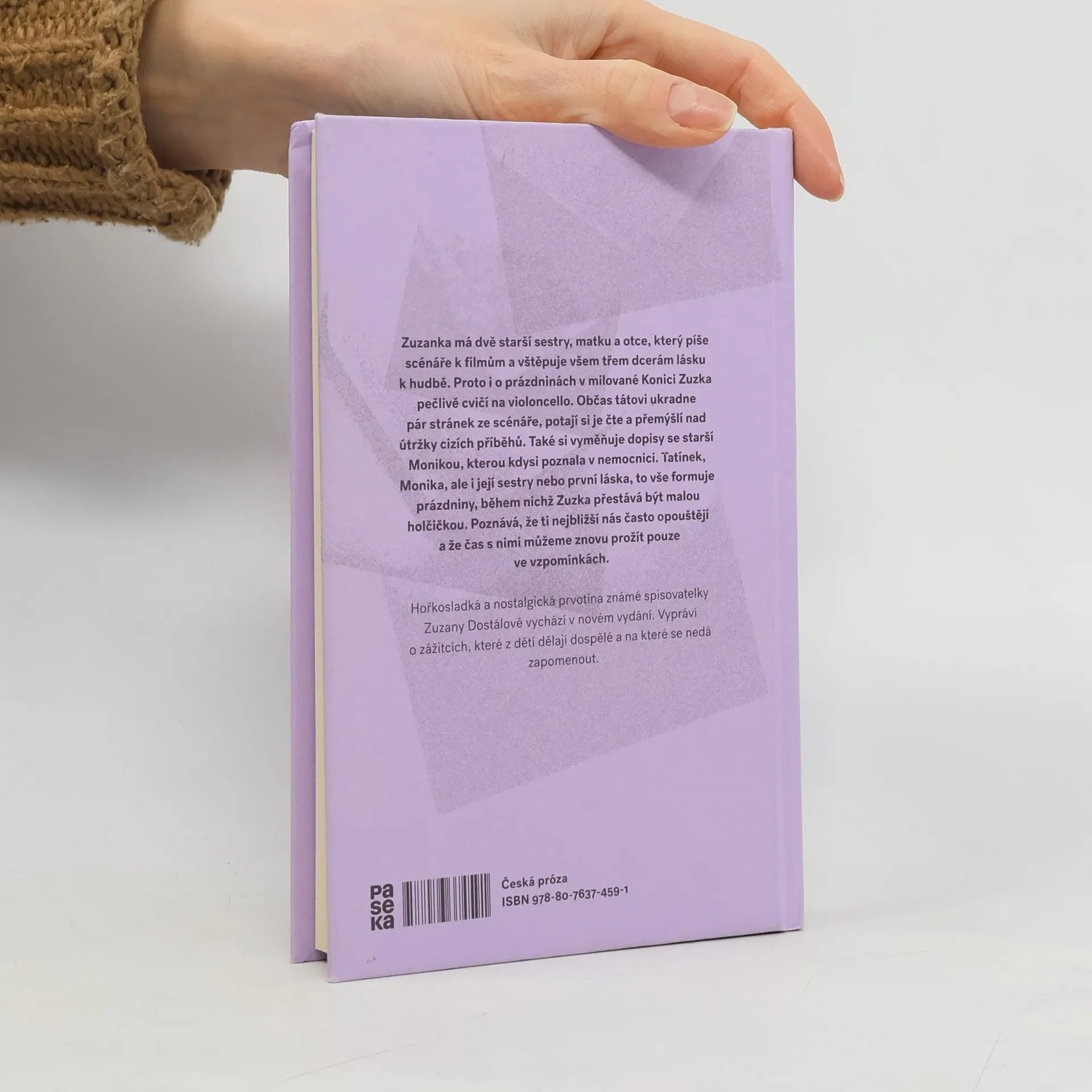 "Zuzanka má dvě starší sestry, matku a otce, který píše scénáře k filmům a vštěpuje všem třem dcerám lásku k hudbě. Proto i o prázdninách v milované Konici Zuzka pečlivě cvičí na violoncello. Občas tátovi ukradne pár stránek ze scénáře, potají si je čte a přemýšlí nad útržky cizích příběhů. Také si vyměňuje dopisy se starší Monikou, kterou kdysi poznala v nemocnici. Tatínek, Monika, ale i její sestry nebo první láska, to vše formuje prázdniny, během nichž Zuzka přestává být malou holčičkou. Poznává, že ti nejbližší nás často opouštějí a že čas s nimi můžeme znovu prožít pouze ve vzpomínkách. Hořkosladká nostalgická prvotina známé spisovatelky Zuzany Dostálové vychází v novém vydání. Vypráví o zážitcích, které z dětí dělají dospělé a na které se nedá zapomenout."