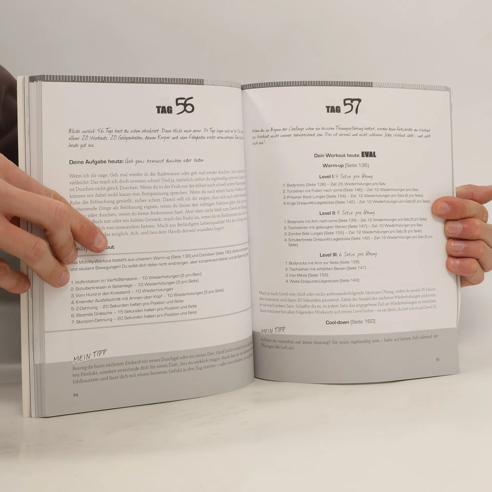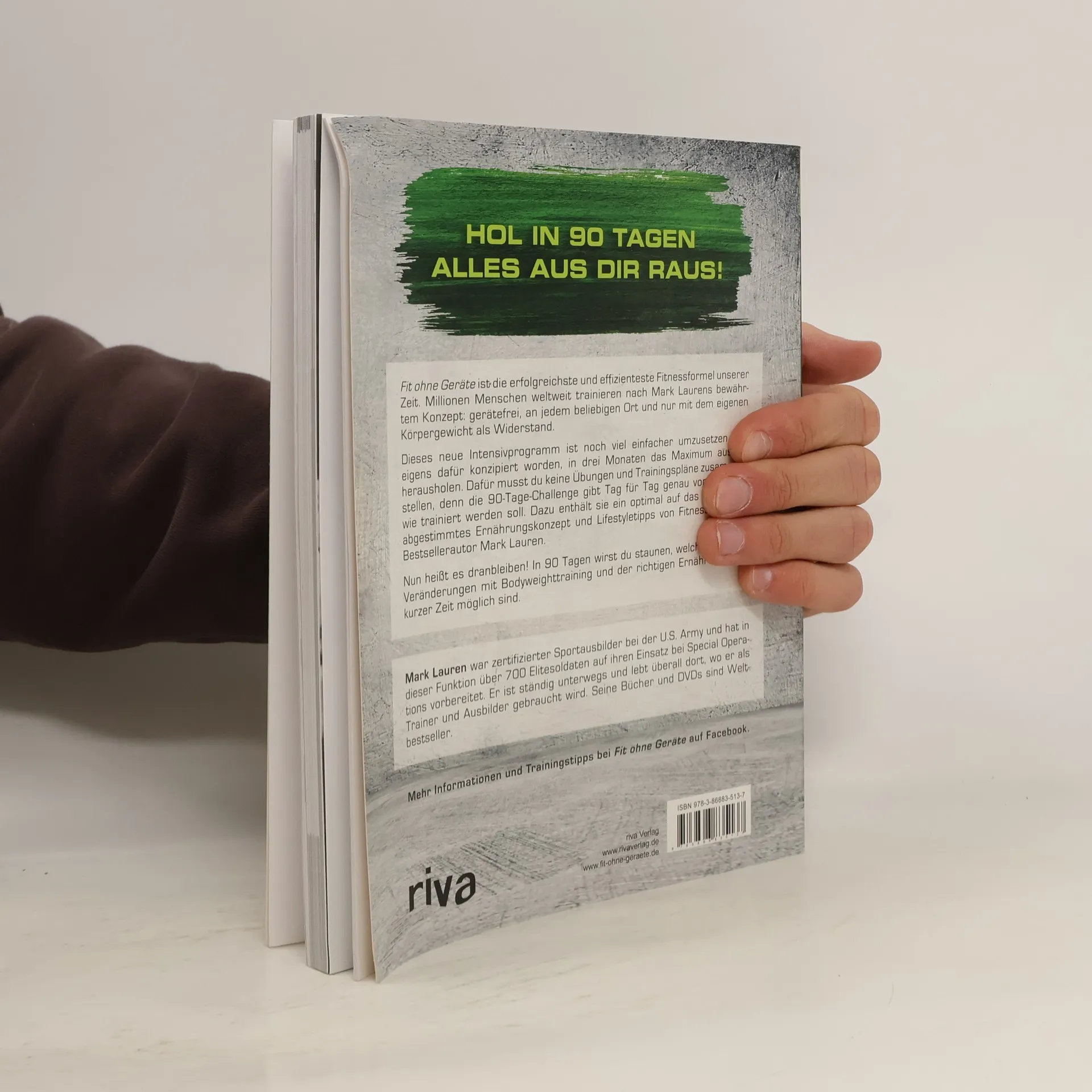 Fit ohne Geräte ist die erfolgreichste und effizienteste Fitnessformel unserer Zeit. Millionen Menschen weltweit trainieren nach Mark Laurens bewährtem Konzept: gerätefrei, an jedem beliebigen Ort und nur mit dem eigenen Körpergewicht als Widerstand. Dieses neue Intensivprogramm ist noch viel einfacher umzusetzen und eigens dafür konzipiert worden, in drei Monaten das Maximum aus dir herausholen. Dafür musst du keine Übungen und Trainingspläne zusammenstellen, denn die 90-Tage-Challenge gibt Tag für Tag genau vor, was und wie trainiert werden soll. Dazu enthält sie ein optimal auf das Programm abgestimmtes Ernährungskonzept und Lifestyletipps von Fitnessguru und Bestsellerautor Mark Lauren. Nun heißt es dranbleiben! In 90 Tagen wirst du staunen, welch großartige Veränderungen mit Bodyweighttraining und der richtigen Ernährung in so kurzer Zeit möglich sind.