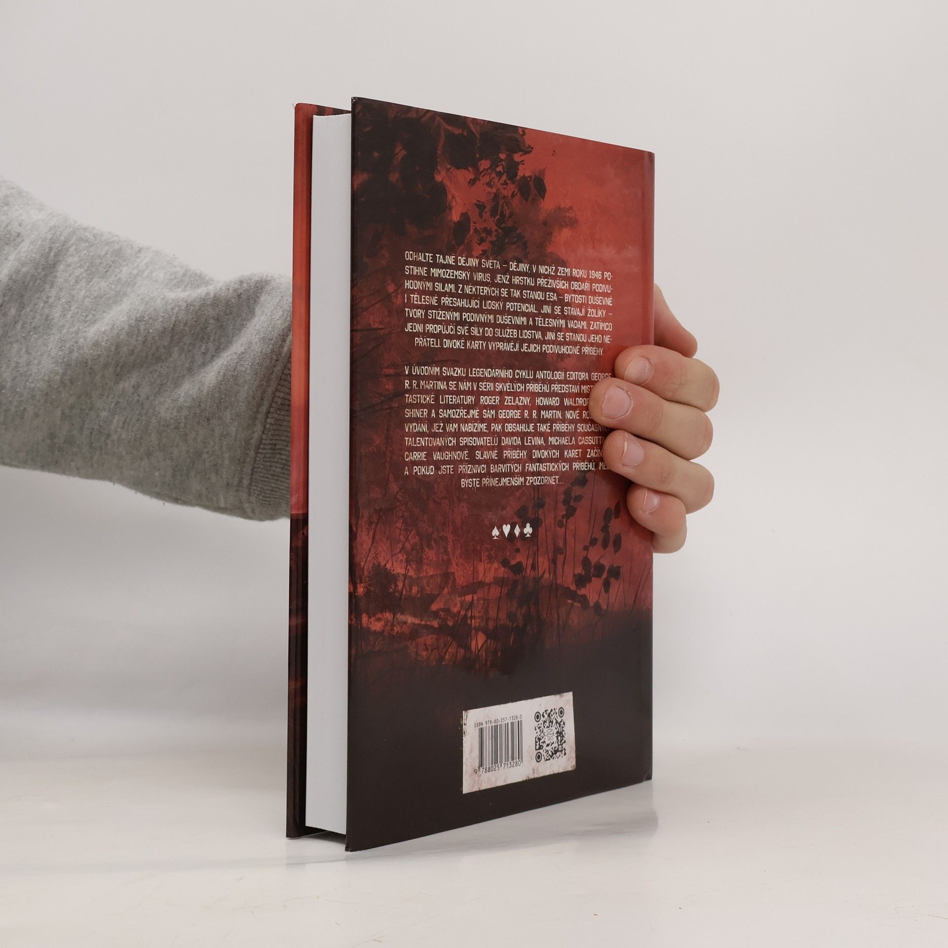 Odhalte tajné dějiny světa – dějiny, v nichž Zemi roku 1946 postihne mimozemský virus, jenž hrstku přeživších obdaří podivuhodnými silami. Z některých se tak stanou Esa – bytosti duševně i tělesně přesahující lidský potenciál. Jiní se stávají Jokery – bytostmi stiženými podivnými duševními a tělesnými vadami. Zatímco někteří propůjčí své síly do služeb lidstva, jiní se stanou jeho nepřáteli. Divoké karty vyprávějí jejich podivuhodné příběhy. V úvodním svazku legendární série antologií editora George R. R. Martina se nám v sérii skvělých příběhů představí mistři fantastické literatury Roger Zelazny, Howard Waldrop, Lewis Shiner a samozřejmě sám George R. R. Martin. Nové rozšířené vydání, jež vám nabízíme, pak obsahuje také příběhy současných talentovaných spisovatelů Davida Levina, Michaela Cassutta a Carrie Vaughnové. Slavné příběhy Divokých karet začínají, a pokud jste příznivci barvitých fantastických příběhů, rozhodně si je nenechte za žádnou cenu ujít…