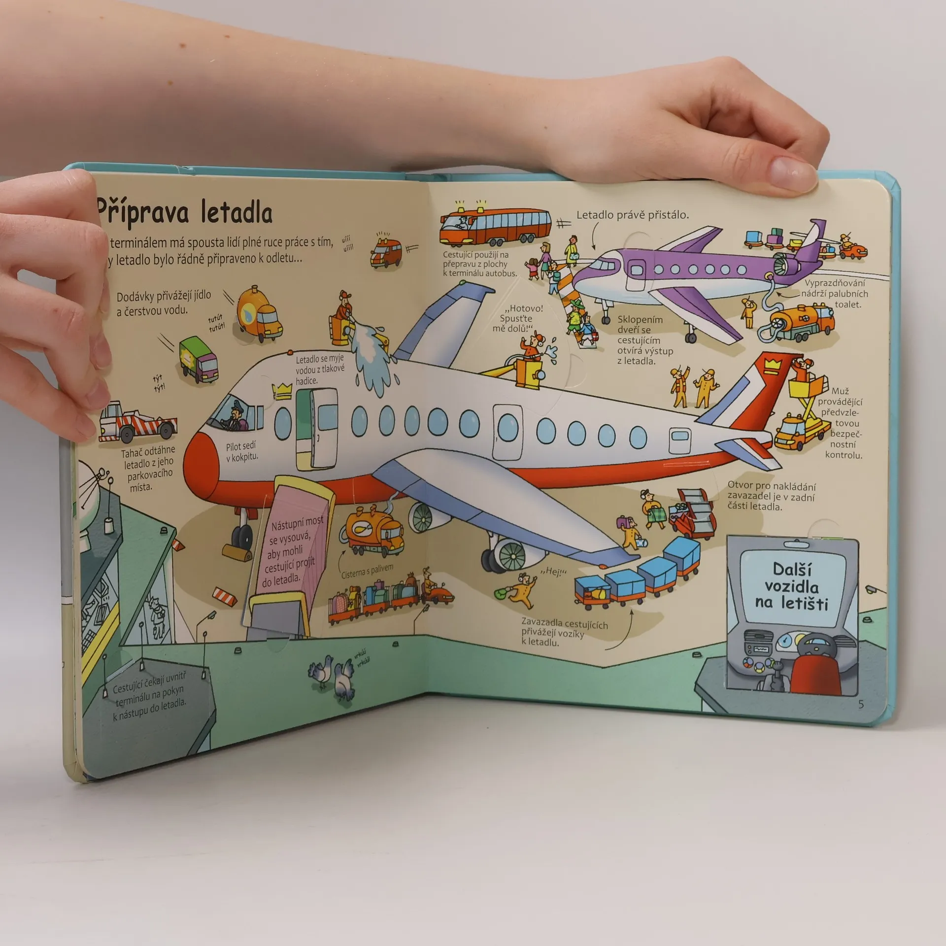 Frrrr! S touto poutavou knížkou s více než 50 odklápěcími okénky nahlédnou děti do provozních prostor letiště, podívají se do letadla a poletí až do oblak! Frrrr! Nahlédni do provozních prostor letiště a podívej se, jak letadla fičí po vzletových drahách a stoupají do oblak. Tato poutavá knížka s okénky se skvěle hodí pro maličké prstíky a zvědavé hlavičky. Obsahuje více než 50 odklápěcích okének a mnoho dalších báječných překvapení. Podívej se pod obrázky a zjisti, co tam je!