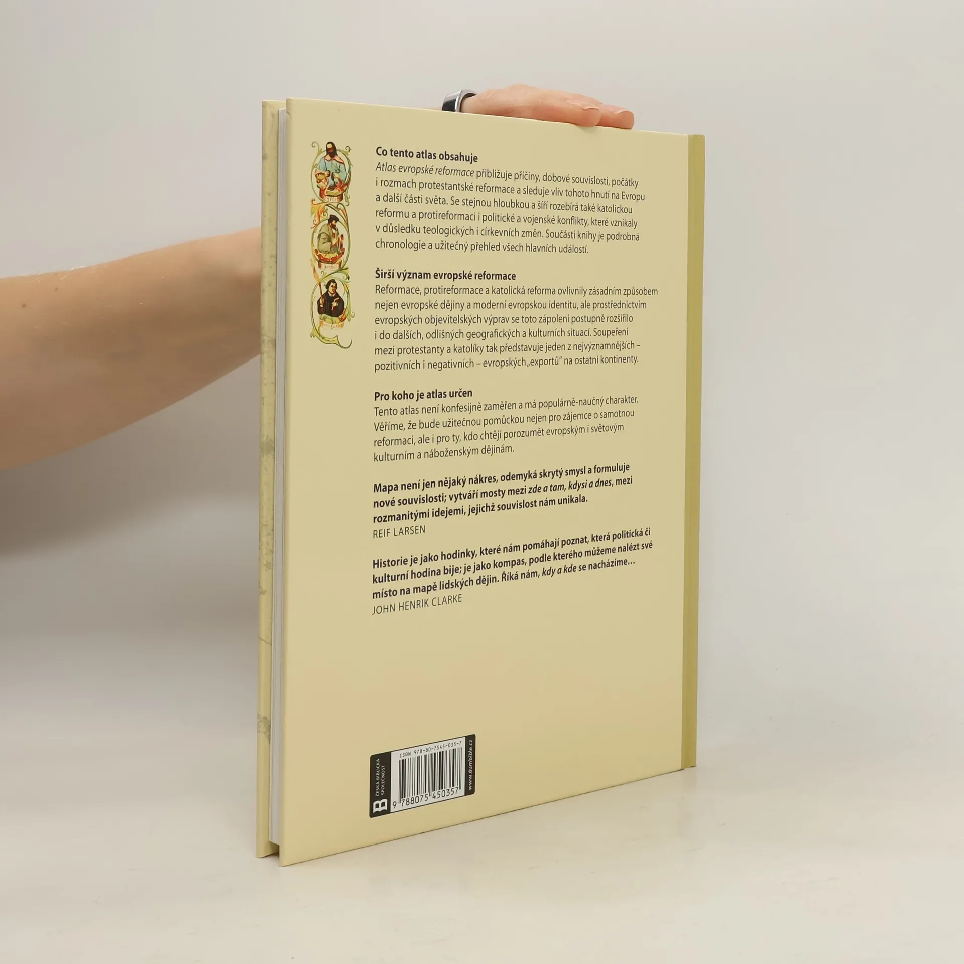 Atlas evropské reformace přibližuje příčiny, dobové souvislosti, počátky i rozmach protestantské reformace a sleduje vliv tohoto hnutí na Evropu a další části světa. Se stejnou hloubkou a šíří rozebírá také katolickou reformu a protireformaci i politické a vojenské konflikty, které vznikaly v důsledku teologických i církevních změn. Součástí knihy je podrobná chronologie a užitečný přehled všech hlavních událostí. Tento atlas není konfesijně zaměřen a má populárně-naučný charakter. Věříme, že bude užitečnou pomůckou nejen pro zájemce o samotnou reformaci, ale i pro ty, kdo chtějí porozumět evropským i světovým kulturním a náboženským dějinám.