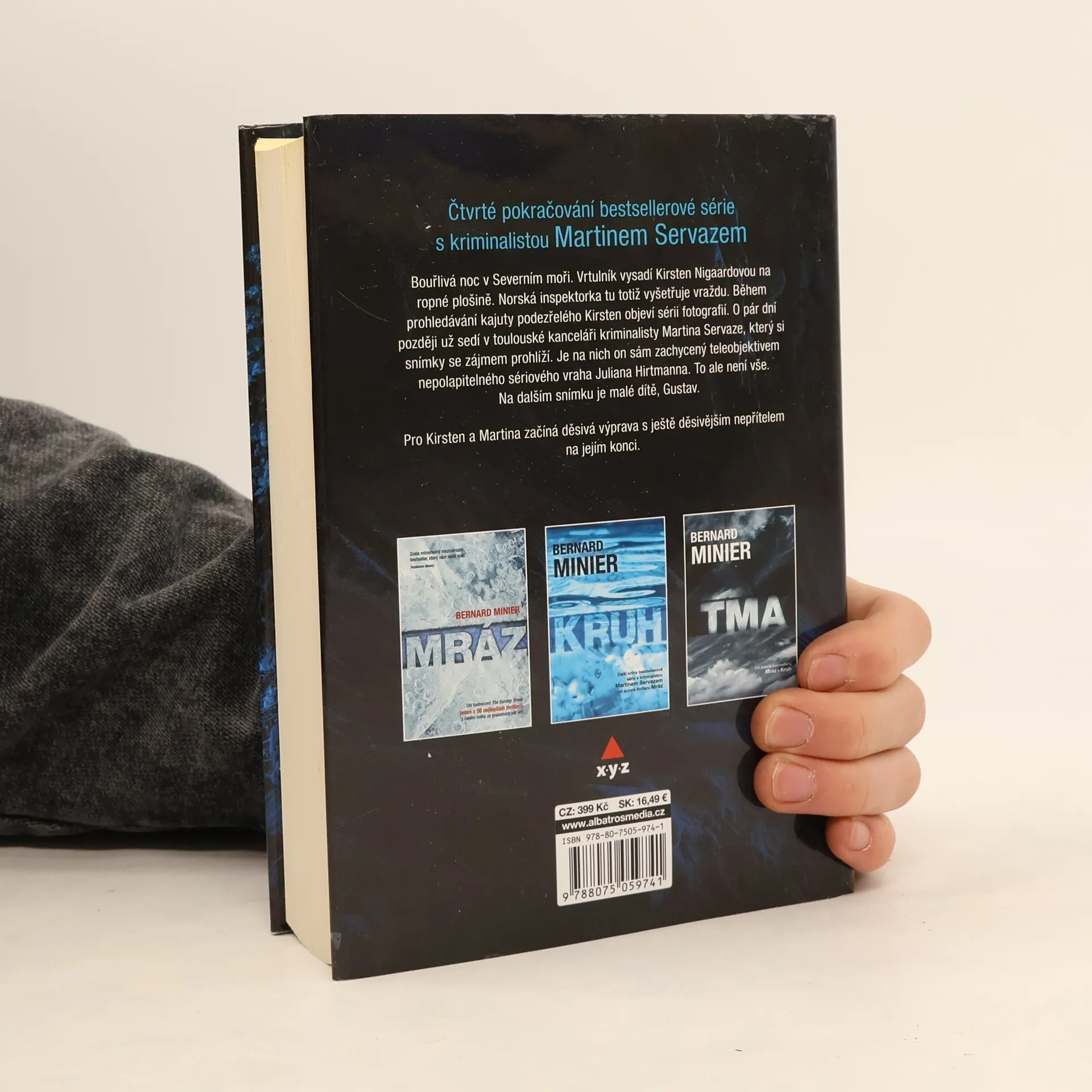 Čtvrté pokračování bestsellerové série s kriminalistou Martinem Servazem. Během vyšetřování vraždy na ropné plošině narazí norská inspektorka Kirsten Nigaardová na sérii fotografií. O pár dní později sedí v toulouské kanceláři kriminalisty Martina Servaze, který si snímky se zájmem prohlíží. Je na nich on sám zachycený objektivem nepolapitelného sériového vraha Juliana Hirtmanna. To ale není vše. Na dalším snímku je malé dítě, Gustav. Pro Kirsten a Martina začíná děsivá výprava s ještě děsivějším nepřítelem na jejím konci.