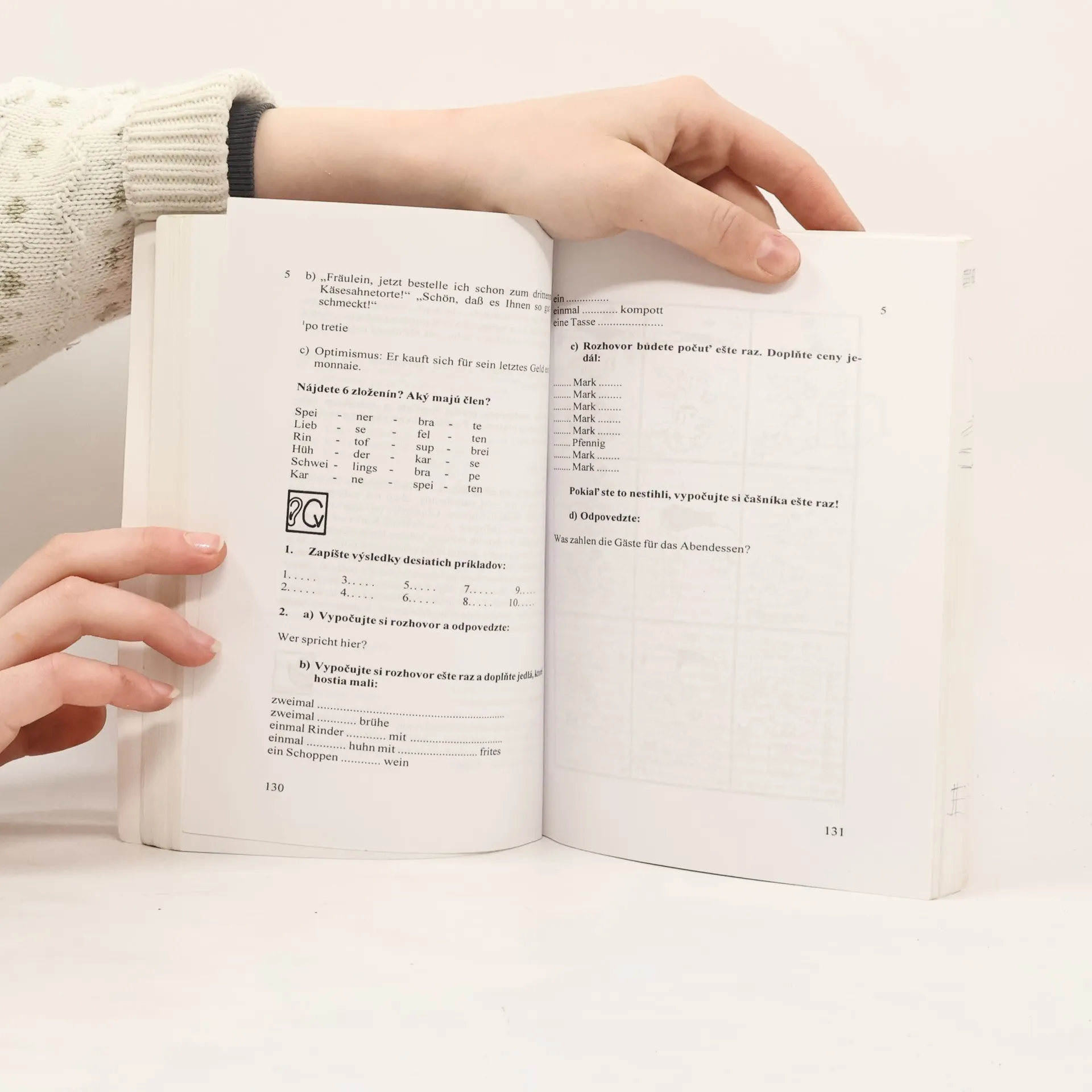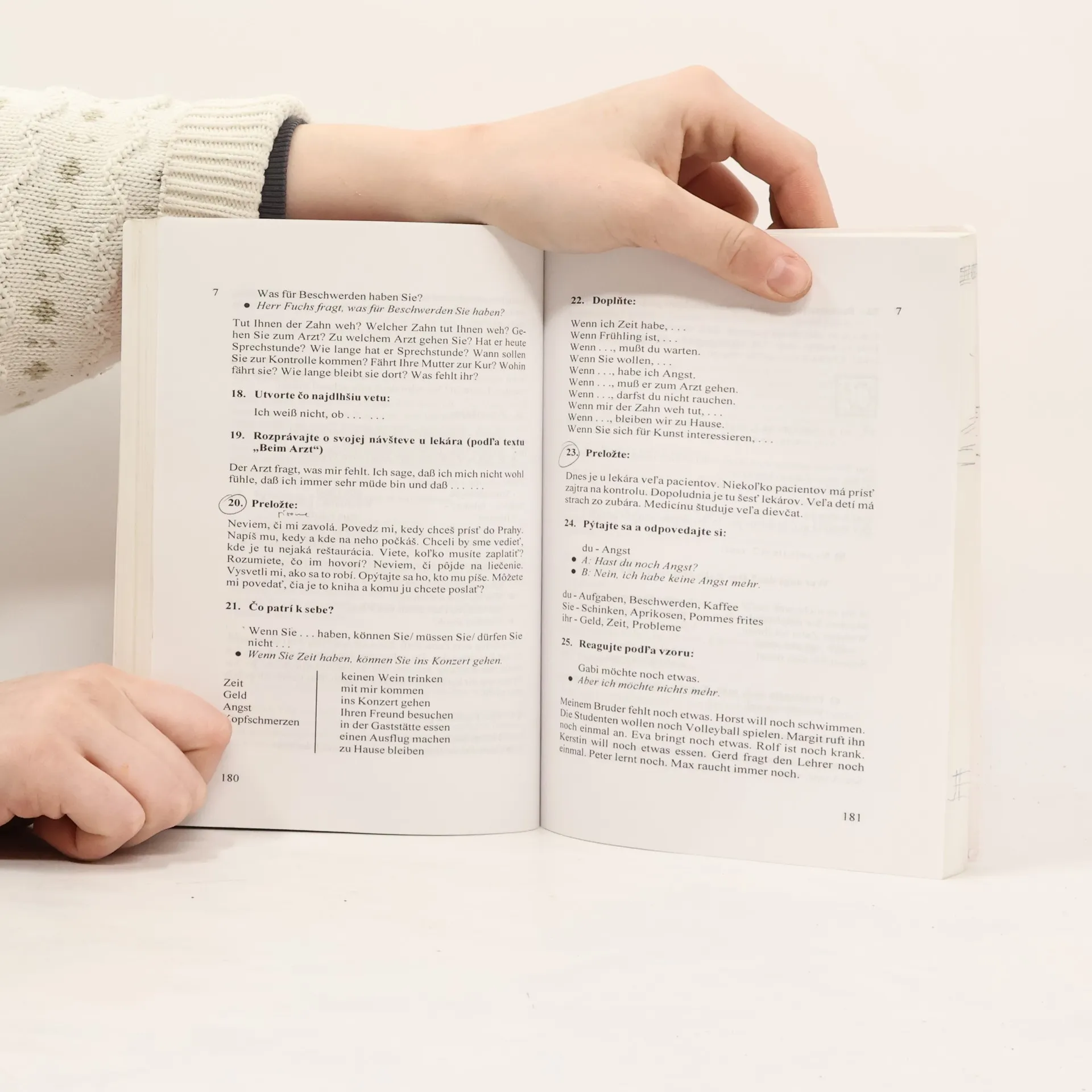 Učebnica je zameraná na komunikatívne zvládnutie hovorového jazyka. Vedie k získaniu zručností dorozumieť sa v základných životných situáciách /predstavovanie sa, na návšteve, v obchode, v reštaurácii, v hoteli, u lekára, na pošte atď./, poskytuje vhodný slovný materiál k najčastejším témam rozhovorov /rodina, bývanie, voľný čas, šport, hudba, cestovanie/. Lekcie: 1. Sind wir aber neugierig !, 2. Unsere Familie, 3. Zu Besuch, 4. Unsere Deutschstunde, 5. Guten Apetit !, Horst und Karin ziehen um, 7. Beim Artz, 8. Sport treiben oder einkaufen ?, 9. Ein Telefongespräch, 10. Eine Auslandsreise.