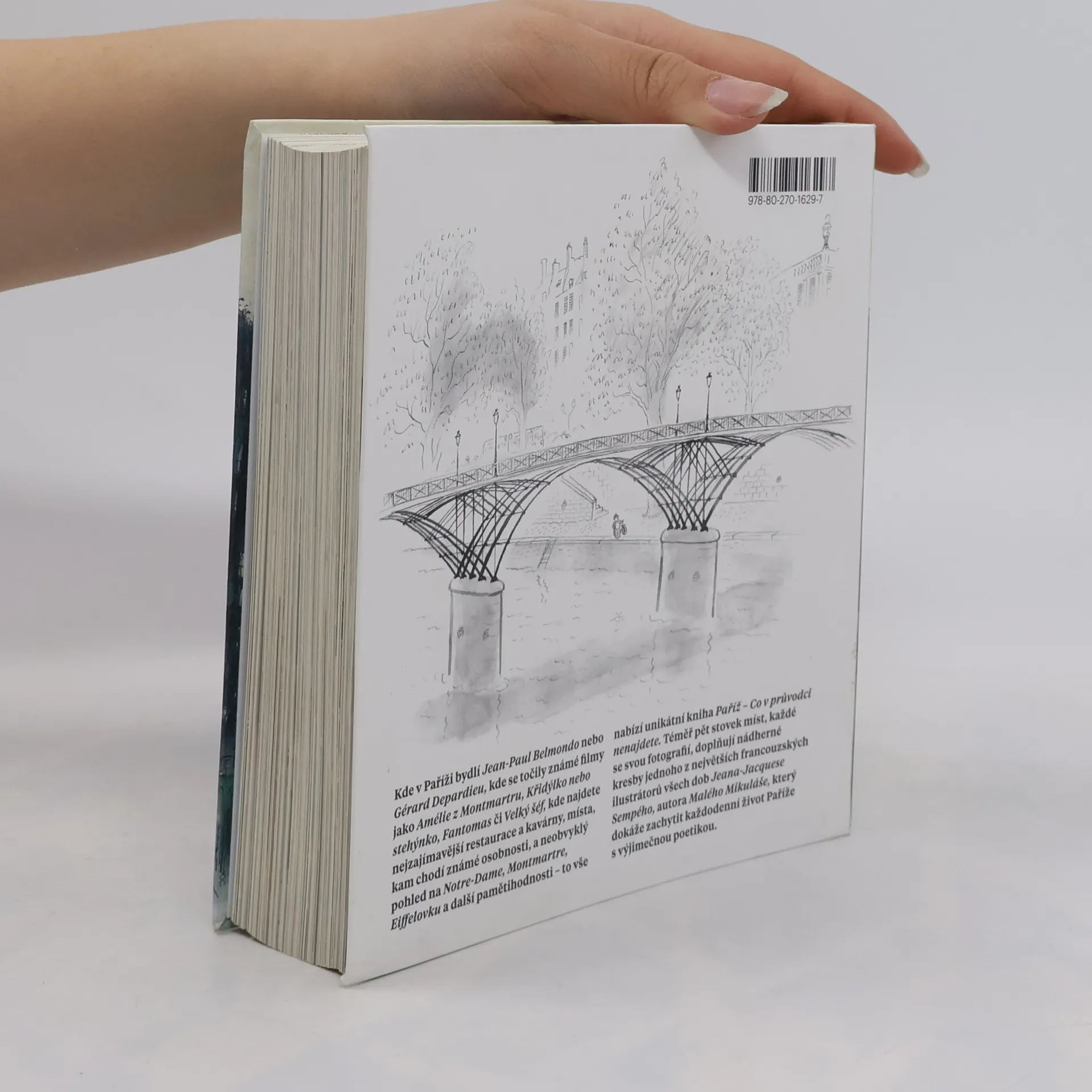 Kde v Paříži bydlí Jean-Paul Belmondo nebo Gérard Depardieu, kde se točily známé filmy jako Amélie z Montmartru, Křidýlko nebo stehýnko, Fantomas či Velký šéf, kde najdete nejzajímavější restaurace a kavárny, místa, kam chodí známé osobnosti, a neobvyklý pohled na Notre-Dame, Montmartre, Eiffelovku a další pamětihodnosti – to vše nabízí unikátní kniha Paříž – Co v průvodci nenajdete. Téměř pět stovek míst, každé se svou fotografií, doplňují nádherné kresby jednoho z největších francouzských ilustrátorů všech dob Jeana-Jacquese Sempého, autora Malého Mikuláše, který dokáže zachytit každodenní život Paříže s výjimečnou poetikou.