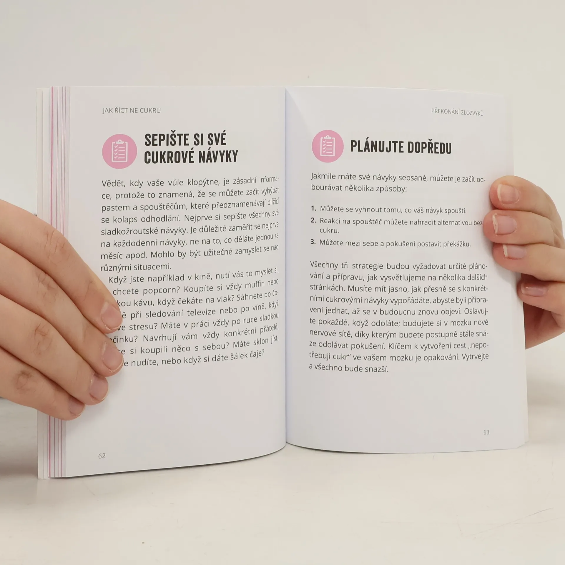 Novinka z edice Jak říct ne nabízí stravovací tipy a recepty na pokrmy bez cukru, které pomohou zlepšit vaše stravovací návyky a dostat cukr pod kontrolu přirozeně a s minimálním stresem. Uvidíte, že život bez cukru může být spokojený a sladký. Tato příručka ukazuje, jak se stravovat pestře a chutně, přičemž se vyhnete rizikům spojeným s nadměrnou konzumací sladkostí. Zkoumá mechanismy, jak překonat závislost na cukru, což může znít dramaticky, ale mnozí z nás si neuvědomují, že na cukru do určité míry závislí jsou. Kniha je plná stravovacích tipů, ověřených rad a lákavých receptů, které vám pomohou zlepšit stravovací návyky a omezit cukr v potravinách. Naučíte se, jak cukr v potravinách rozpoznat, a získáte triky na omezení chuti na sladké, přičemž si dopřejete zdravé sladkosti. Recepty s nízkým obsahem cukru na konci knihy zajistí, že vaše nové dny bez cukru budou plné lahodných jídel a svačin, které vás zasytí a dodají energii. Nemusíte to zvládnout najednou; malé změny se brzy nasčítají. Jak říká staré buddhistické rčení: „Pokud se díváte správným směrem, jediné, co musíte udělat, je jít dál.“