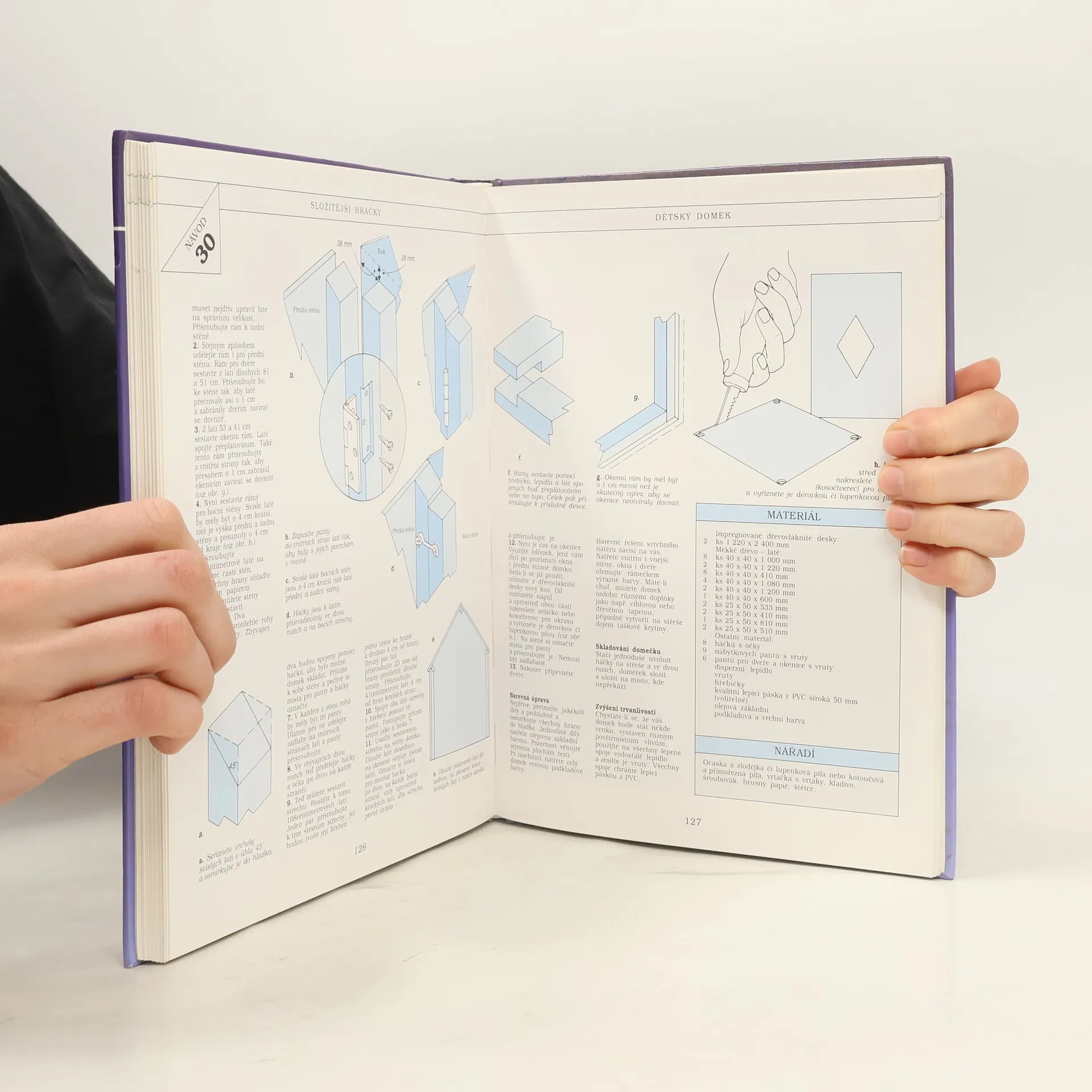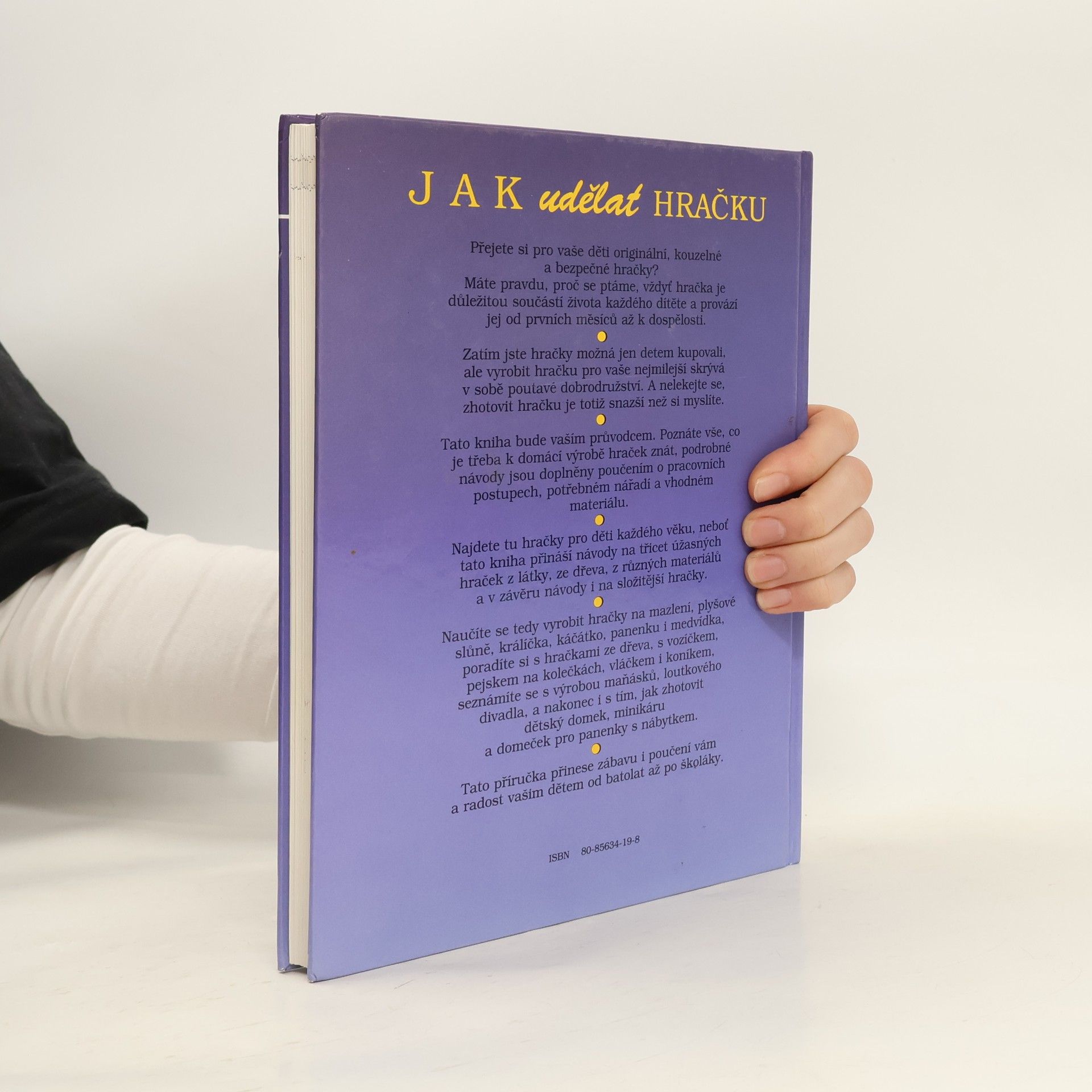 Kniha obsahuje 32 návodů na výrobu jednoduchých i složitějších hraček ze dřeva, textilu i jiných materiálů. Součástí výrobních postupů jsou podrobné nákresy a návody, spousta barevných i černobílých fotografií.