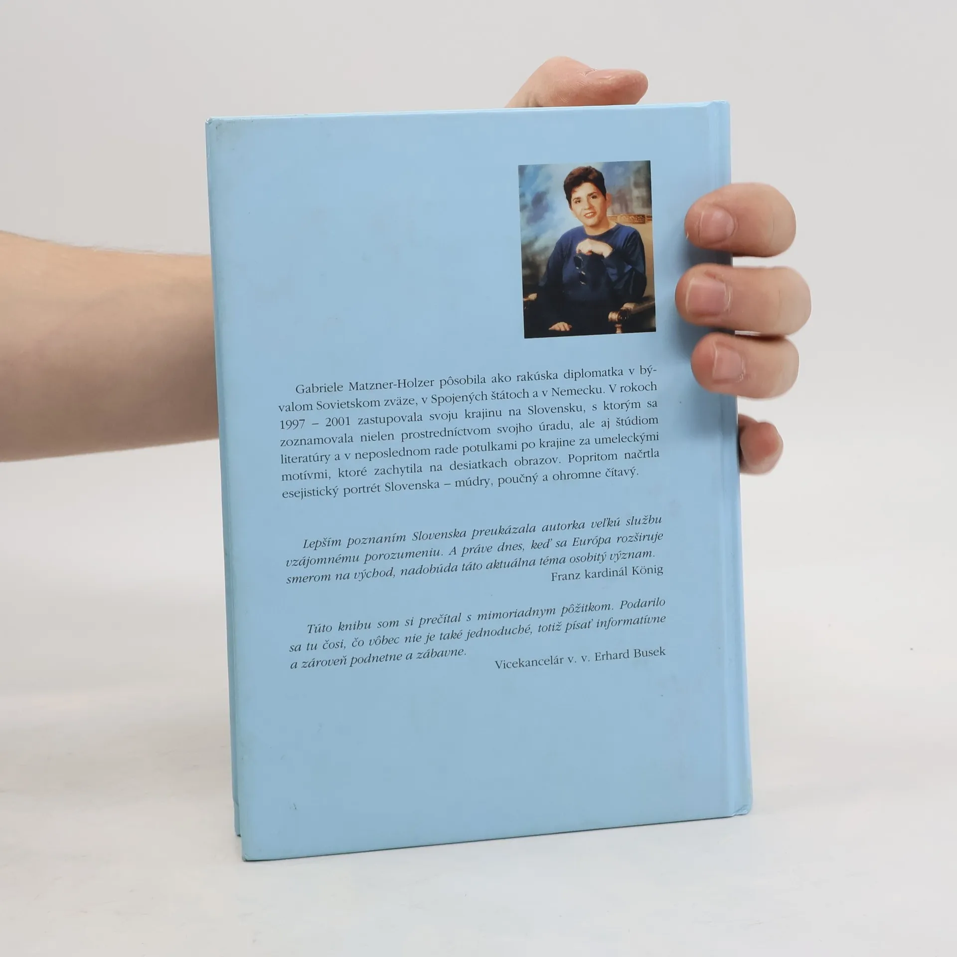 Esejistický, múdry, poučný a ohromne čítavý portrét Slovenska z pera a štetca rakúskej autorky, ktorá v rokoch 1997 - 2001 pôsobila ako veľvyslankyňa svojej krajiny na Slovensku. Na stránkach knihy sa môžeme presvedčiť, že s našu krajinu poznávala nielen prostredníctvom svojho úradu, ale aj štúdiom literatúry a v neposlednom rade potulkami po krajine za umeleckými motívmi, ktoré zachytila na desiatkach akvarelov.