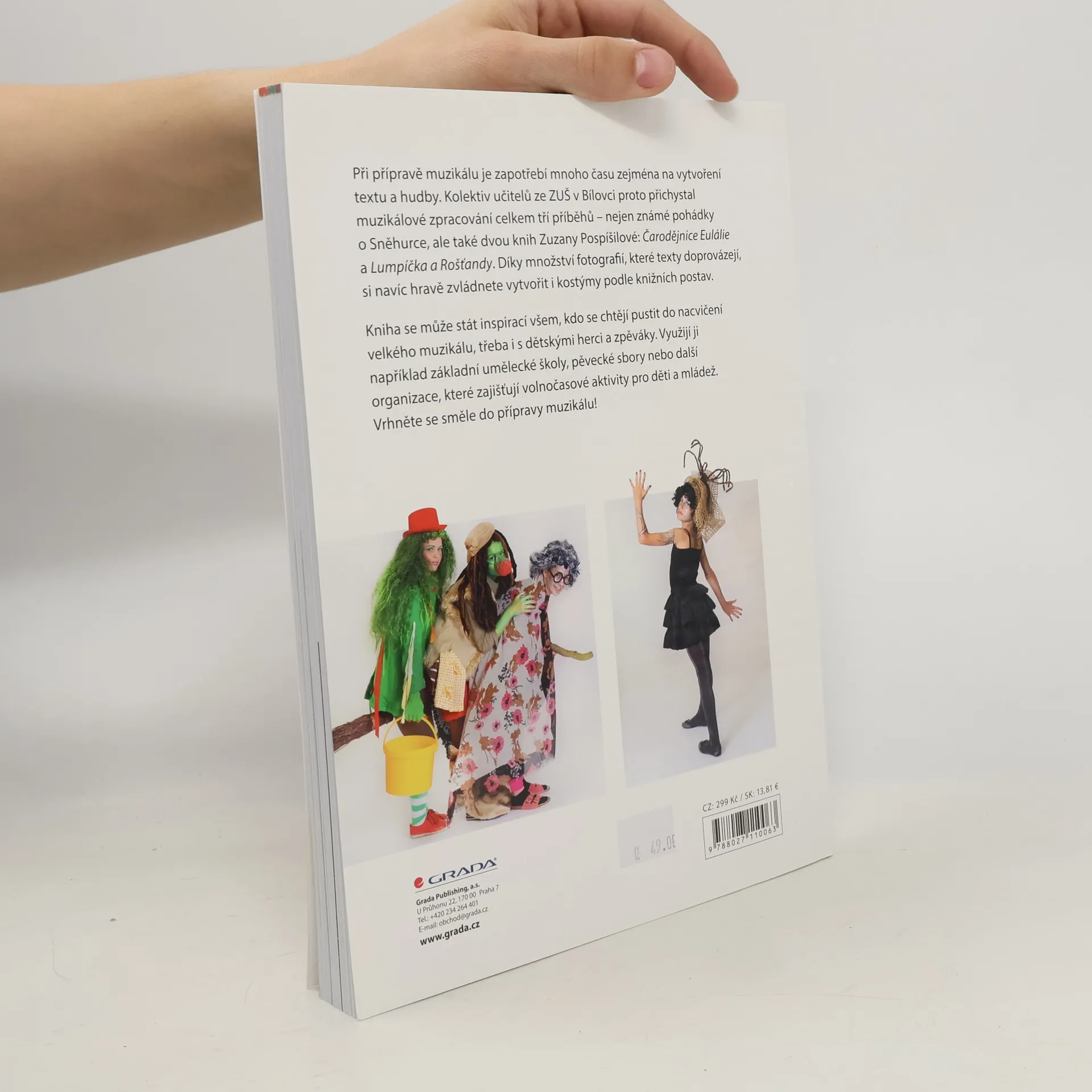 Při přípravě muzikálu je zapotřebí mnoho času zejména na vytvoření textu a hudby. Kolektiv učitelů ze ZUŠ v Bílovci proto přichystal muzikálové zpracování celkem tří příběhů – nejen známé pohádky o Sněhurce, ale také dvou knih Zuzany Pospíšilové: Čarodějnice Eulálie a Lumpíčka a Rošťandy. Díky množství fotografií, které texty doprovázejí, si navíc hravě zvládnete vytvořit i kostýmy podle knižních postav. Kniha se může stát inspirací všem, kdo se chtějí pustit do nacvičení velkého muzikálu, třeba i s dětskými herci a zpěváky. Využijí ji například základní umělecké školy, pěvecké sbory nebo další organizace, které zajišťují volnočasové aktivity pro děti a mládež. Vrhněte se směle do přípravy muzikálu!