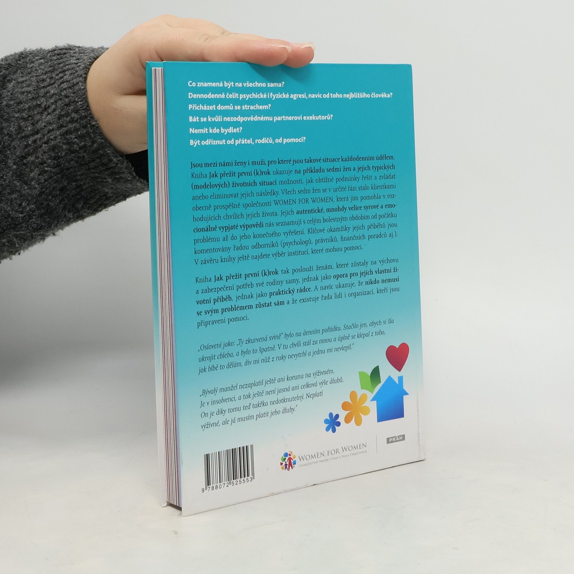 Co znamená být na všechno sama? Dennodenně čelit psychické a fyzické agresi, a to od nejbližšího člověka? Bát se nezodpovědného partnera a exekutorů? Být odříznut od přátel a rodiny? Pro některé ženy (i muže) jsou tyto situace každodenním údělem, kdy se doslova perou o holou existenci v psychické a ekonomické pasti. Kniha ukazuje příběhy sedmi žen, které se staly klientkami organizace WOMEN FOR WOMEN a které prošly bolestným obdobím od počátku problémů až po jejich vyřešení. Sledujeme jejich pád do pasti, psychické a fyzické násilí, a rostoucí snahu osvobodit se. Klíčové okamžiky jejich příběhů jsou doplněny komentáři odborníků, kteří na závěr každého příběhu poskytují souhrnné rady. Tato kniha je určena ženám, které se kvůli nevydařenému manželství propadají do psychických a ekonomických potíží. Mohou porovnat svůj příběh s ostatními, získat nadhled a lépe analyzovat své možnosti. Odborné komentáře jim pomohou lépe se orientovat ve vlastní situaci a poskytnou praktické rady, jak čelit obtížím. Kniha přináší naději, že nikdo nemusí čelit svým problémům sám a že existuje pomoc.