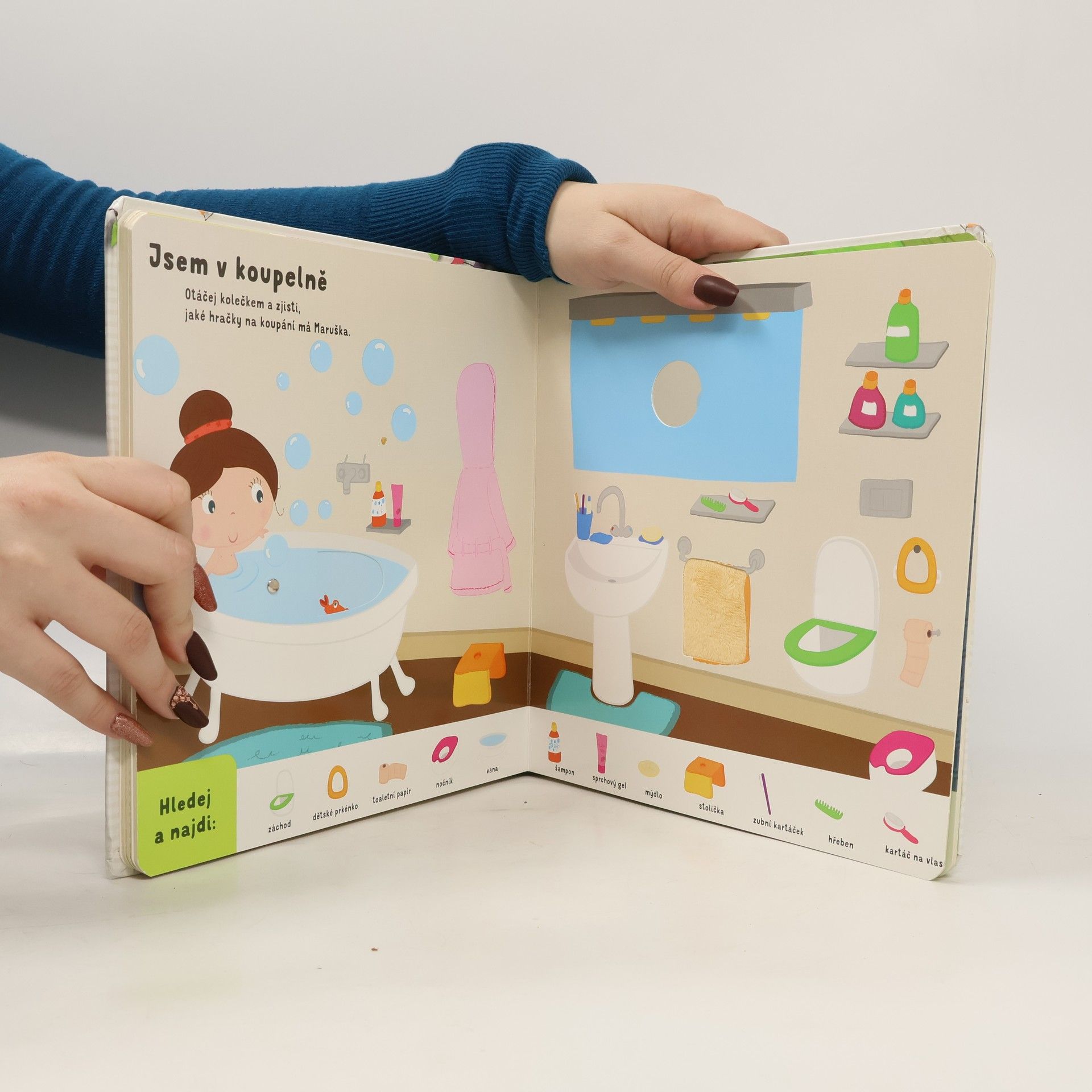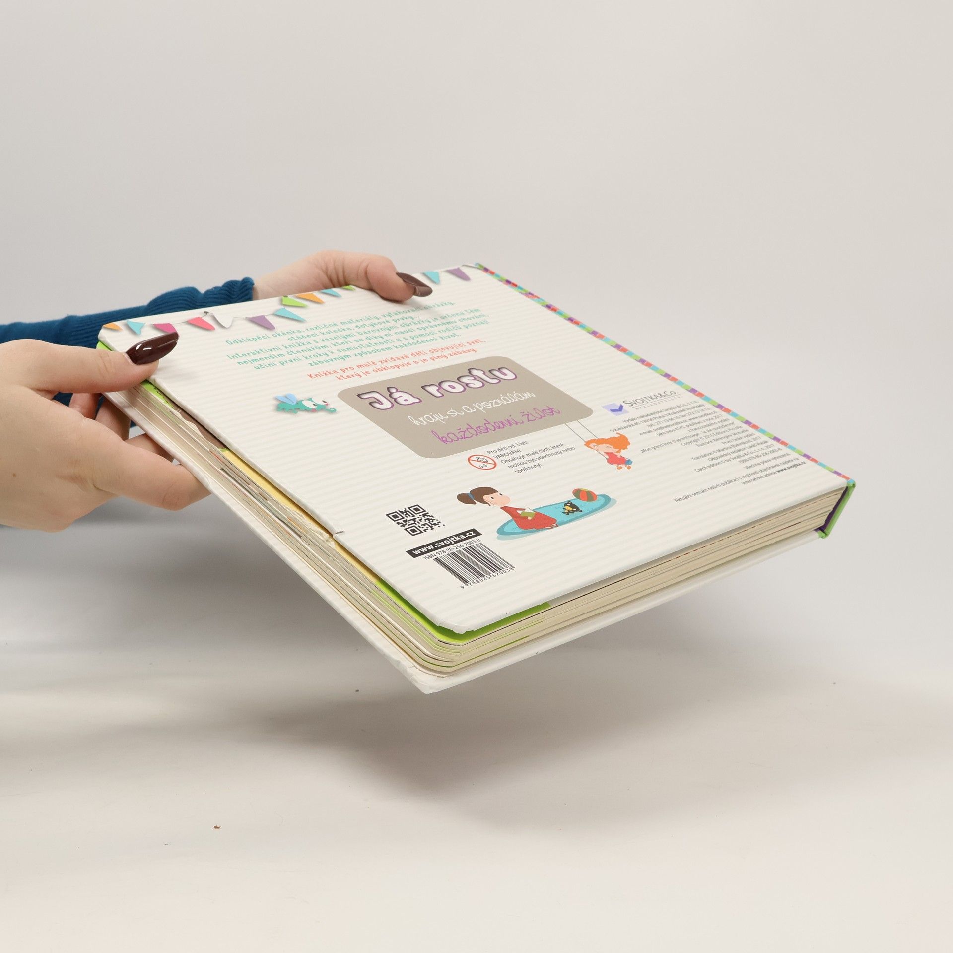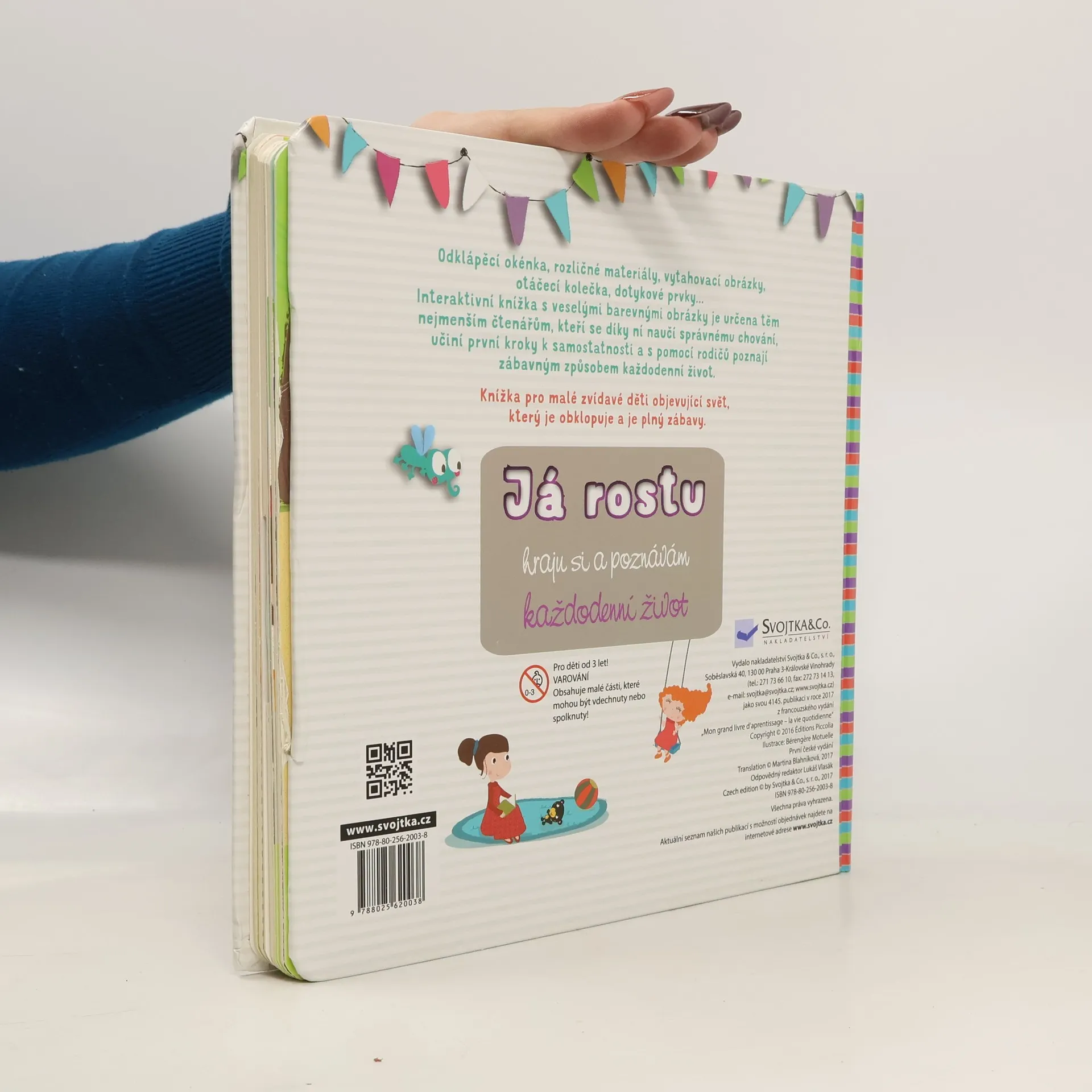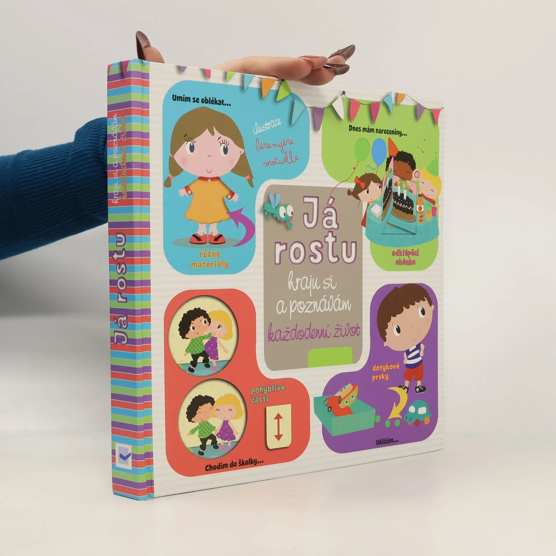 Knížka pro malé zvídavé děti objevující svět, který je obklopuje a je plný zábavy. Obsahuje plno interaktivních prvků, různé materiály a pohyblivé části. Odklápěcí okénka, rozličné materiály na omak, vytahovací obrázky, otáčecí kolečka, dotykové prvky pro rozvoj jemné motoriky… Tato interaktivní knížka s veselými barevnými obrázky je určena těm nejmenším čtenářům, kteří se díky ní naučí správnému chování, učiní první kroky k samostatnosti a s pomocí rodičů poznají zábavným způsobem každodenní život. Děti se naučí rozeznávat různé části oblečení; dozví se, jak se správně chovat ve školce; zorientují se v různých částech domu (co se nachází v kuchyni a co v koupelně); budou se umět bezpečně pohybovat venku, na ulici i v parku. Tato moderně zpracovaná knížka nabízí díky interaktivním prvkům mnohem víc než jen pouhý zážitek z čtení. Čekají vás chvíle plné zábavy a poznání.