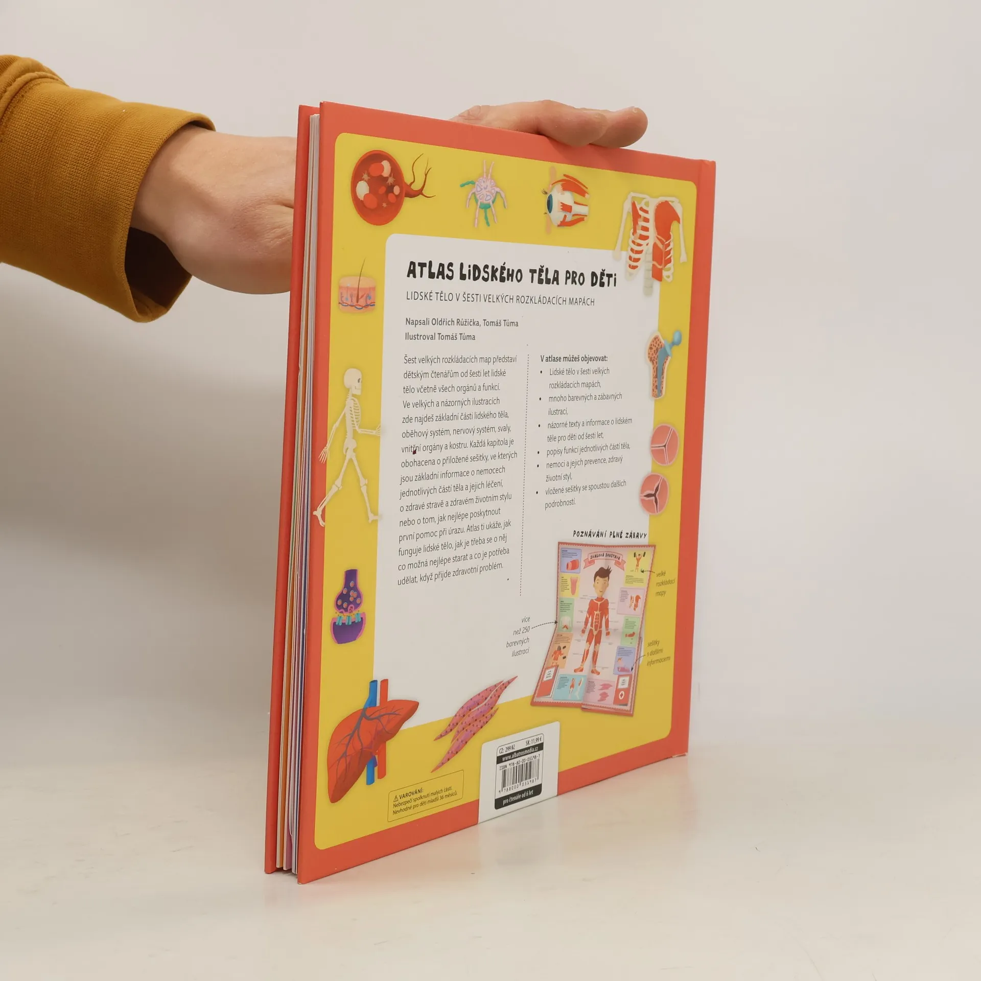 Šest velkých rozkládacích map představí dětským čtenářům od šesti let lidské tělo včetně všech orgánů a funkcí. Ve velkých a názorných ilustracích zde najdeš základní části lidského těla, oběhový systém, nervový systém, svaly, vnitřní orgány a kostru. Každá kapitola je obohacena o přiložené sešitky, ve kterých jsou základní informace o nemocech jednotlivých částí těla a jejich léčení, o zdravé stravě a zdravém životním stylu nebo o tom, jak nejlépe poskytnout první pomoc při úrazu. Atlas ti ukáže, jak funguje lidské tělo, jak je třeba se o něj co možná nejlépe starat a co je potřeba udělat, když přijde zdravotní problém.
