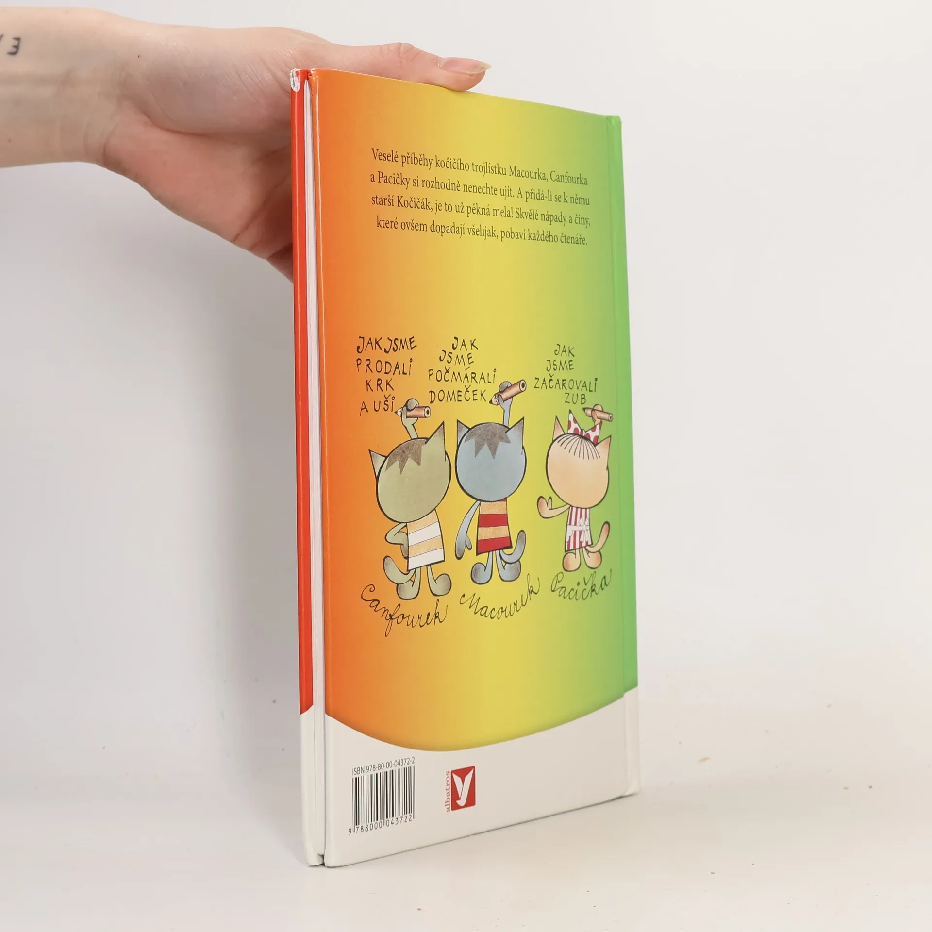 Dobrodružství kočičích kluků Macourka, Canfourka, kočičky Pacičky a jejich rošťáckého kamaráda Kočičáka už děti znají z televizních večerníčků. V knižní podobě vycházejí počtvrté a nad jejich lumpárnami se pobaví jistě i mnozí rodiče. Navíc v knížce najdete i oblíbenou písničku, která večerníček doprovází.