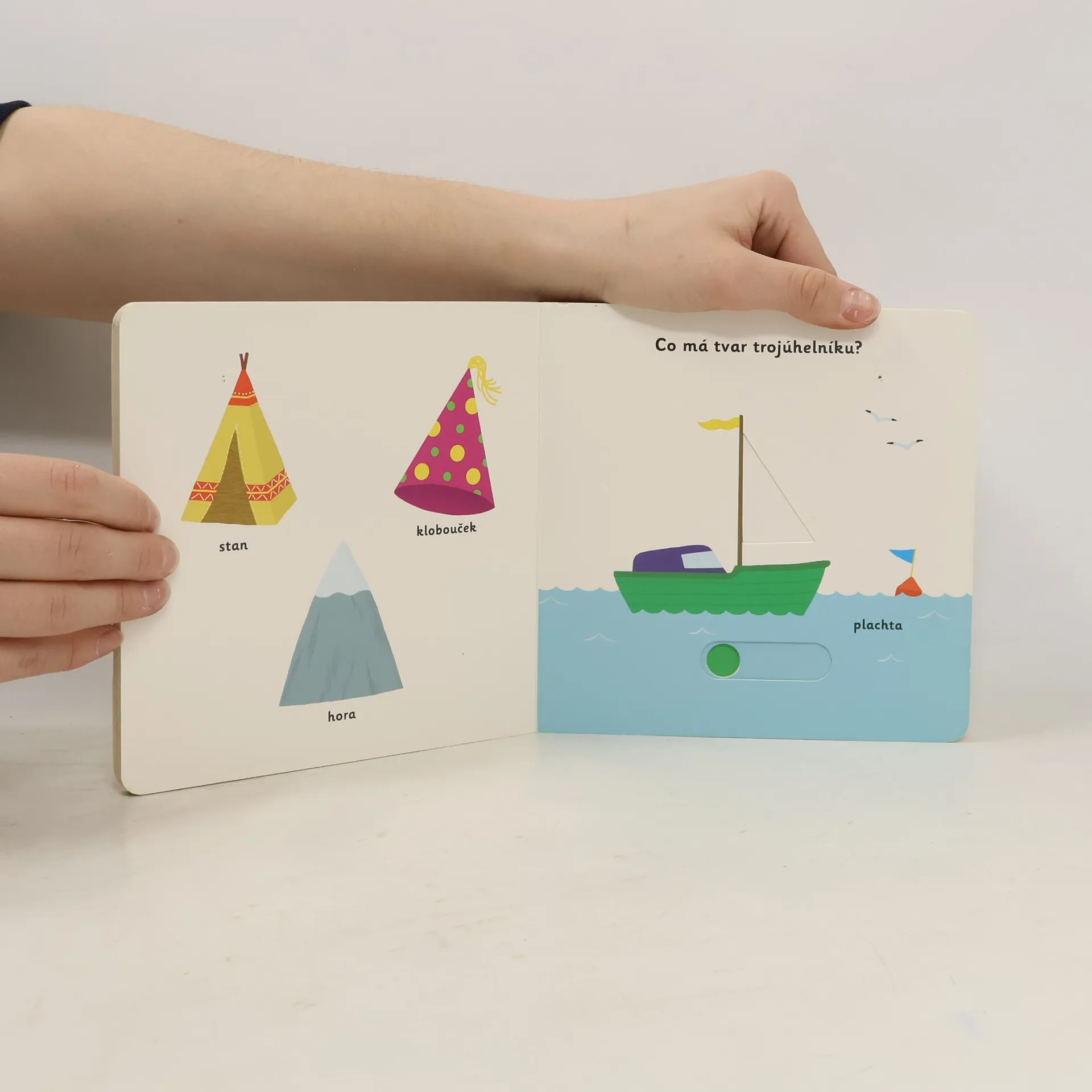 Čtverec, kruh, trojúhelník... Poznáváme tvary! Leporelo pro nejmenší děti s posuvnými prvky a pestrými ilustracemi. Víš, co to jsou tvary? Jaký tvar má třeba létající papírový drak? Nauč se poznávat tvary jednotlivých předmětů! Co je kulaté? Co má tvar čtverce? A co trojúhelníku? Všechny základní tvary objevíš v tomto leporelu s pestrými ilustracemi. Knížka je vhodná pro nejmenší děti, které si díky ní procvičí jemnou mototriku – obsahuje totiž velké množství nejrůznějších pohyblivých částí a okének, které obrázky oživují.