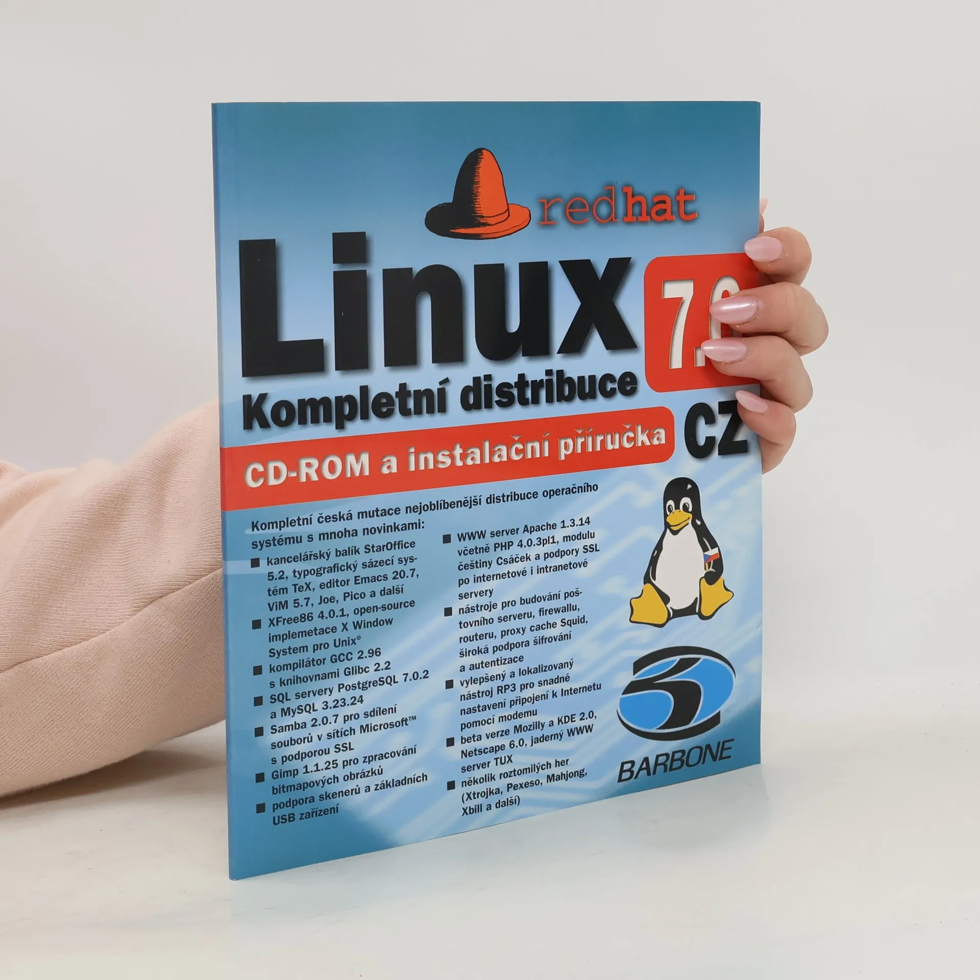 Sestavilo České sdružení uživatelů operačního systému Linux (CZLUG). Kompletní česká mutace nejoblíbenější distribuce operačního systému s mnoha novinkami (StarOffice 5.2 s podporou češtiny; XFree86 4.0.1; kompilátor GCC 2.96 a knihovny Glibc 2.2; SQL servery PostgreSQL 7.0.2 a MySQL 3.23.24; podpora skenerů a základních USB zařízení; vylepšený a lokalizovaný nástroj RP3 pro snadné připojení k internetu pomocí modemu; beta-verze Netscape 6.0 a jaderného WWW serveru TUX; mnoho dalšího softwaru pro podnikové servery i domácí uživatele). Požadavky na systém: PC kompatibilní s IBM; procesor kompatibilní s Intel 386 a vyšším; min. 32 MB operační paměti; min. 170 MB místa na pevném disku.