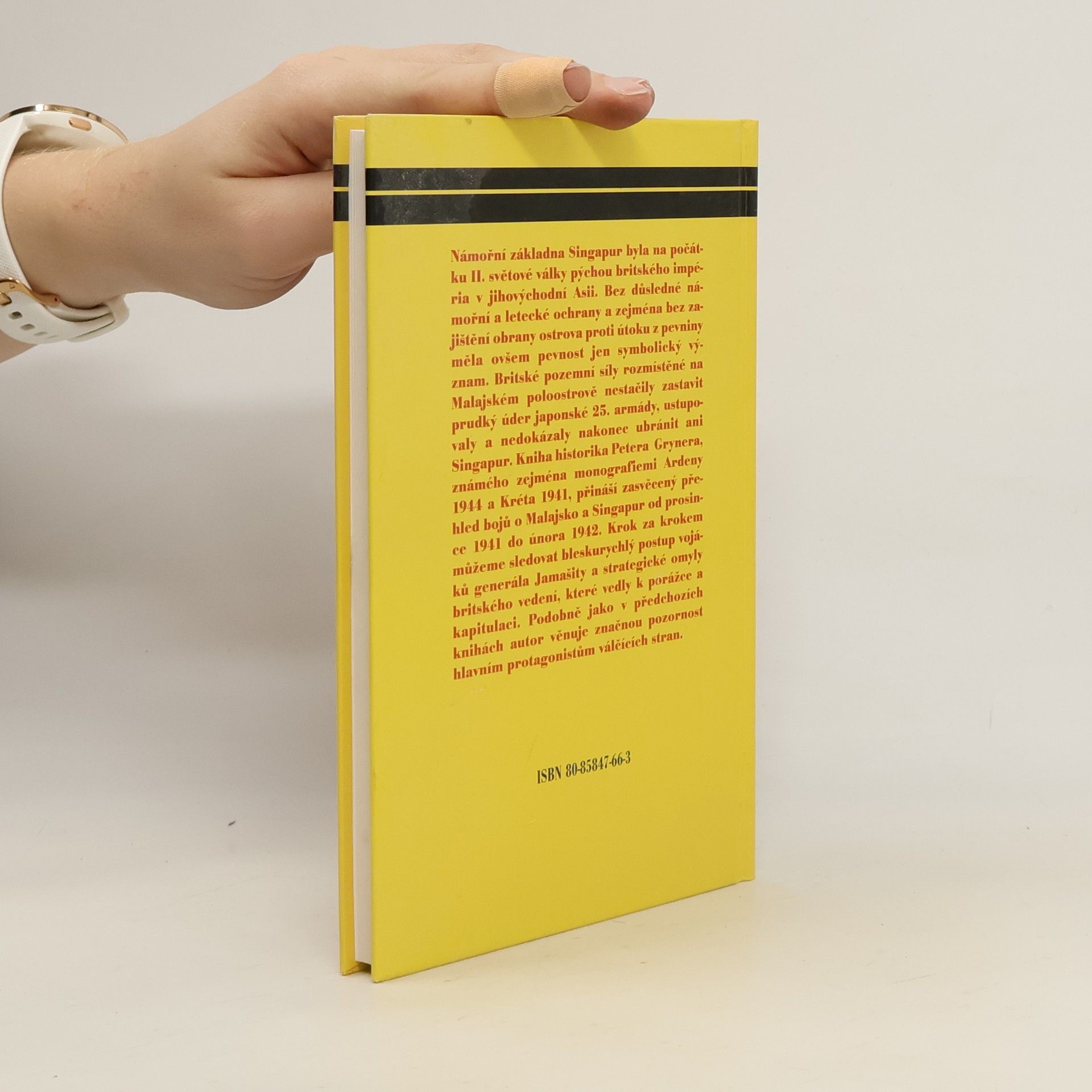 Námořní základna Singapur byla na počátku II. světové války pýchou britského impéria v jihovýchodní Asii. Bez důsledné námořní a letecké ochrany a zejména bez zajištění obrany ostrova proti útoku z pevniny měla ovšem pevnost jen symbolický význam. Britské pozemní síly rozmístěné na Malajském poloostrově nestačily zastavit prudký úder japonské 25. armády, ustupovaly a nedokázaly nakonec ubránit ani Singapur. Kniha historika Petera Grynera, známého zejména monografiemi Ardeny 1944 a Kréta 1941, přináší zasvěcený přehled bojů o Malajsko a Singapur od prosince 1941 do února 1942. Krok za krokem můžeme sledovat bleskurychlý postup vojáků generála Jamašity a strategické omyly britského vedení, které vedly k porážce a kapitulaci. Podobně jako v předchozích knihách autor věnuje značnou pozornost hlavním protagonistům válčících stran.... celý text