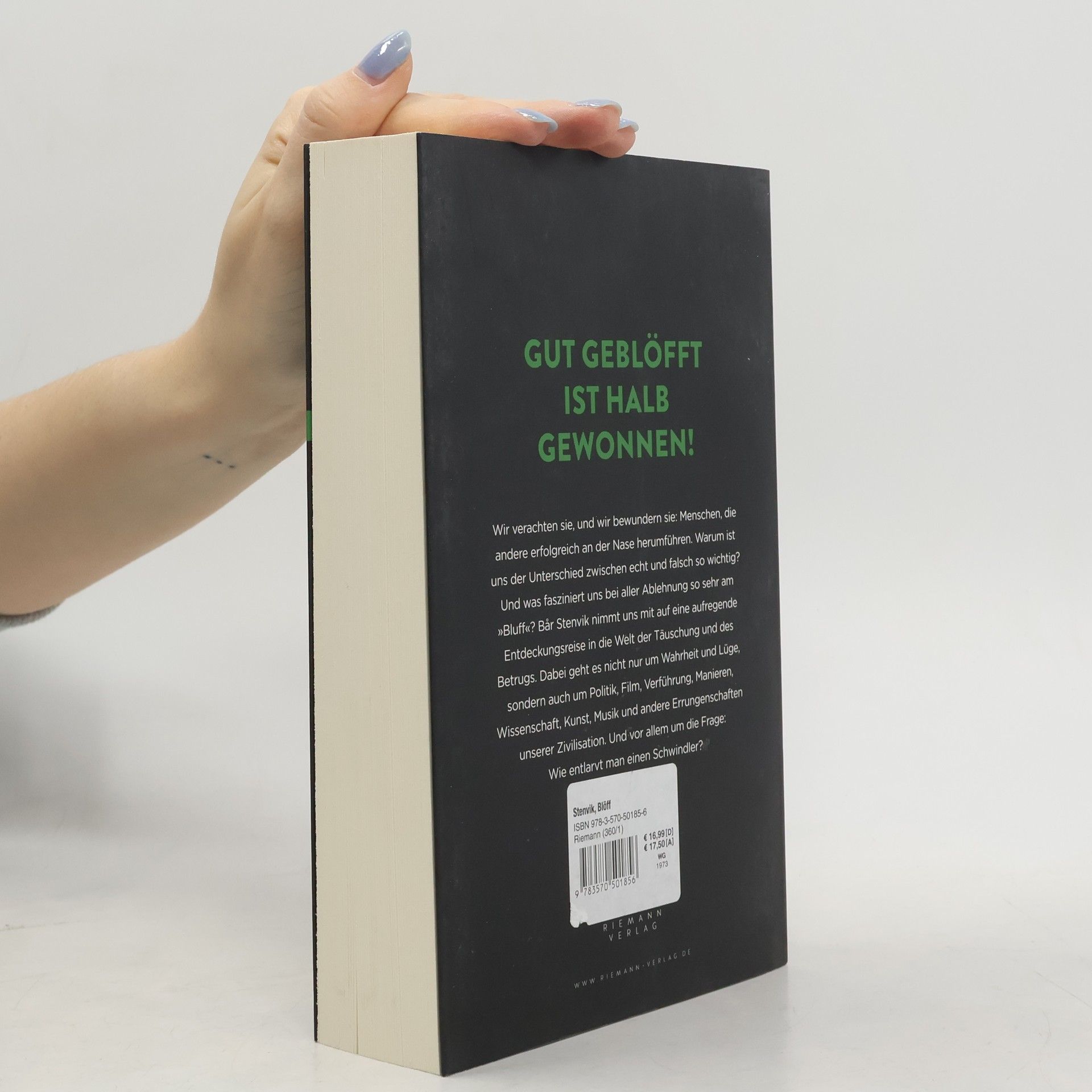 Gut geblöfft ist halb gewonnen! Die Lüge zählt im Allgemeinen nicht zu den nobelsten menschlichen Eigenschaften. Und obwohl wir viel Aufwand treiben, uns vor Betrügern zu schützen, sind unsere Fähigkeiten, sie zu erkennen, überraschend gering ausgeprägt. Bar Stenvik zeigt, wie unser Wunsch nach Wahrheit und Authentizität geradezu einen Markt für ständig neue »Bluffs« schafft: Was ist echt, was ist Täuschung? Tischen uns die Politiker Lügen auf? Kann Liebe vorgespielt werden? Ist eine gelungene Fälschung Kunst? Der Autor hat bei Hirnforschern, Biologen, Kunstfälschern und anderen Experten Antworten auf die Frage gefunden, warum wir ohne die Lüge nicht leben können: Sie ist unauflösbar eng mit unserer Kreativität und unseren sozialen Fähigkeiten verknüpft.